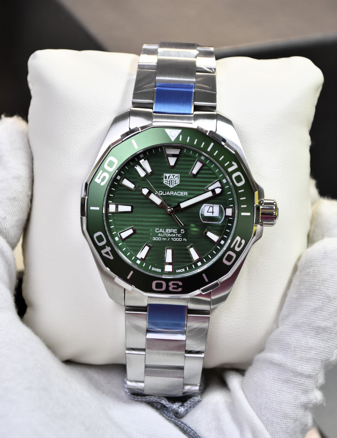 Tag Heuer Aquaracer Men’s Automatic Silver Stainless Steel Green Dial 43mm Watch