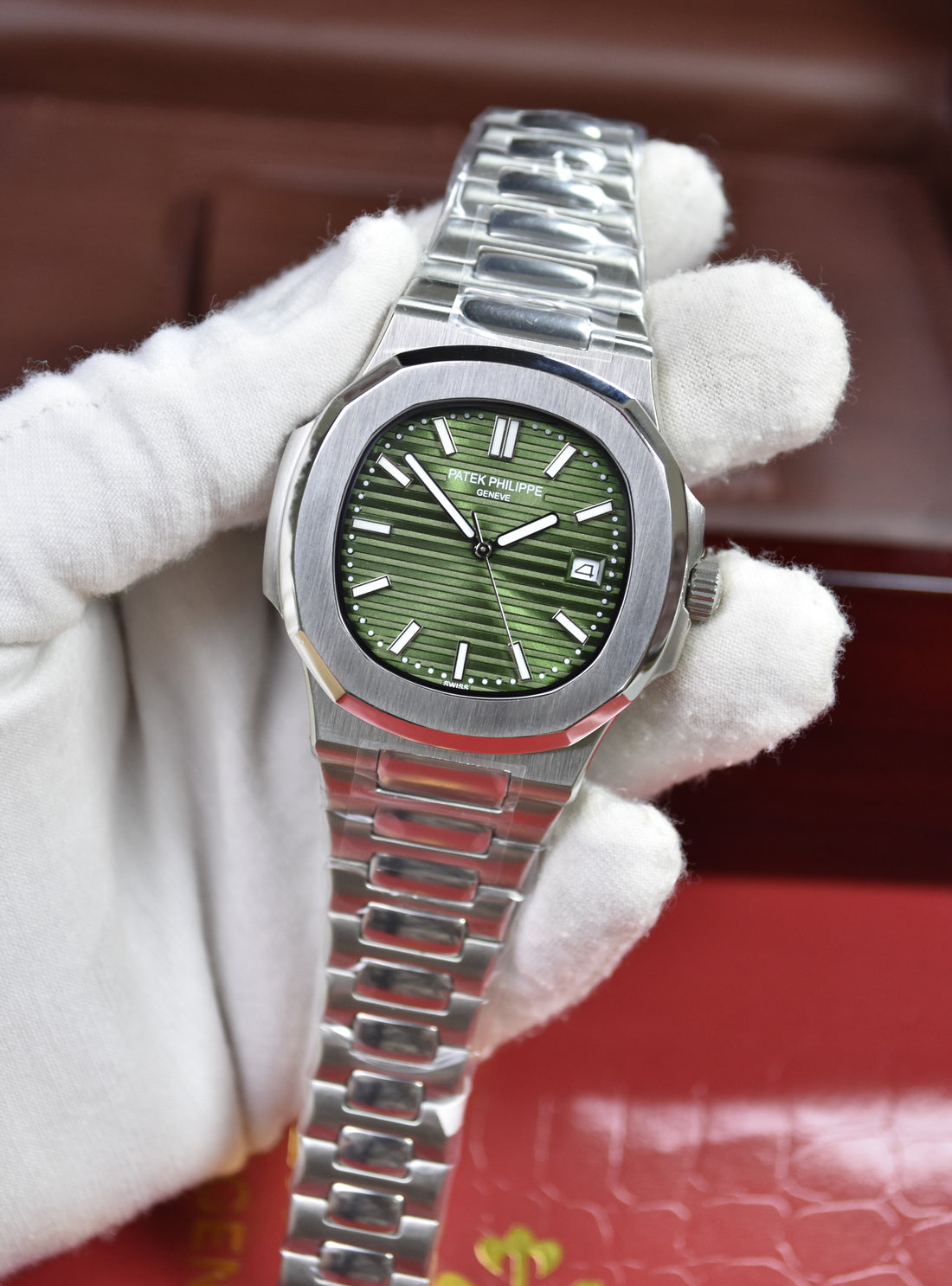 PP NAUTILUS AUTO CHAIN SILVER OLIVE GREEN (ZP)