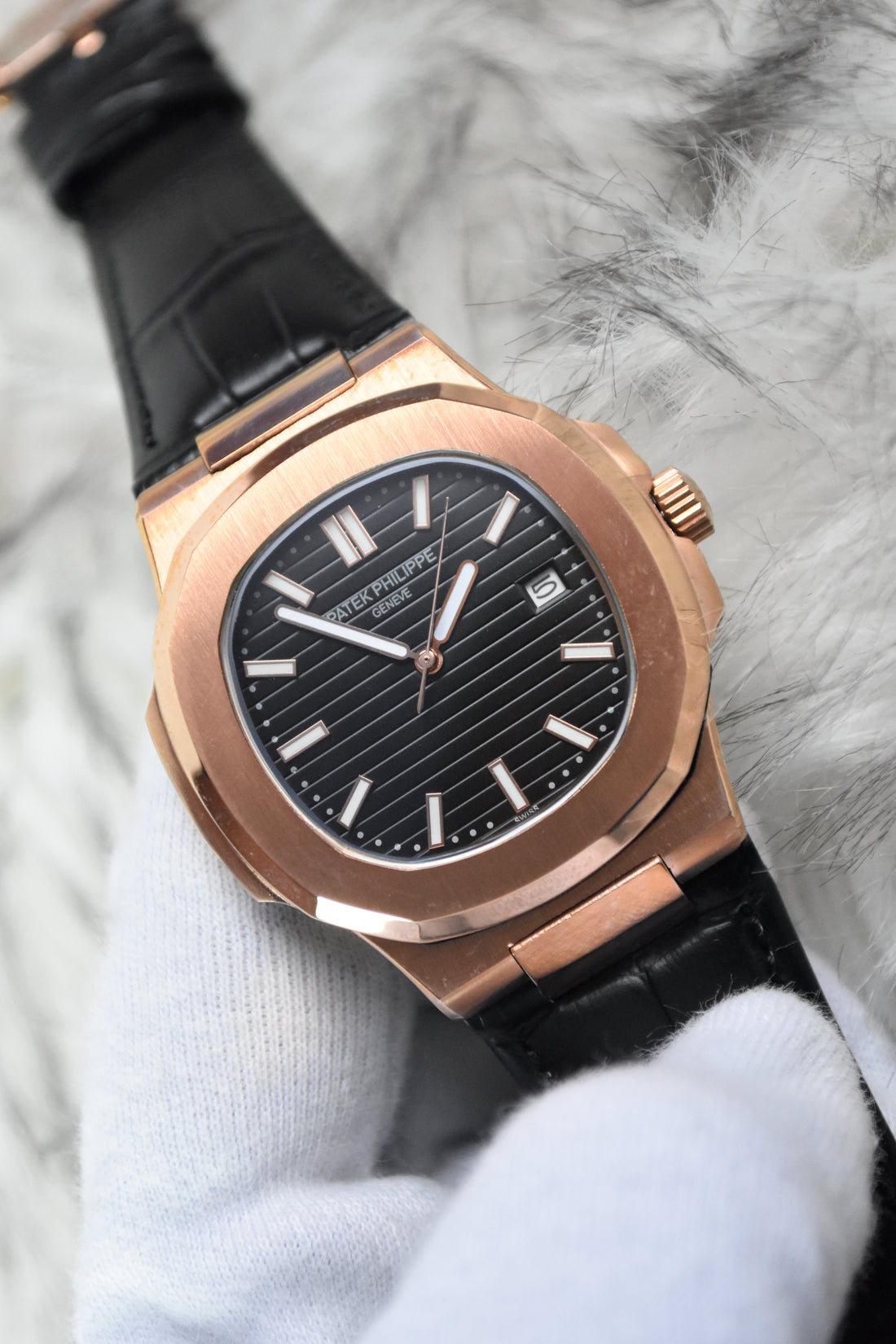 PP NAUTILUS AUTO CHAIN TWOTONE ROSE BLACK (ZP)