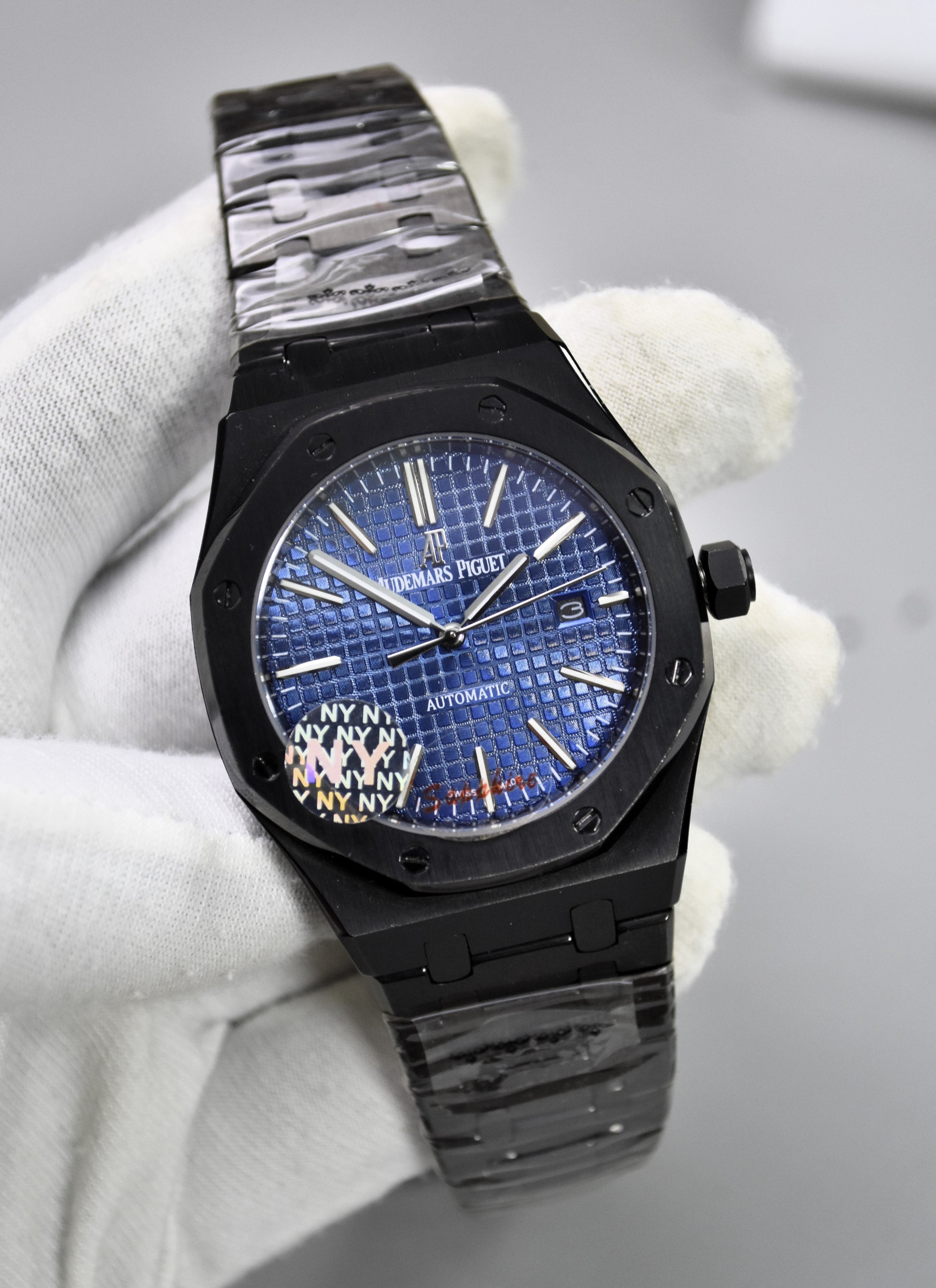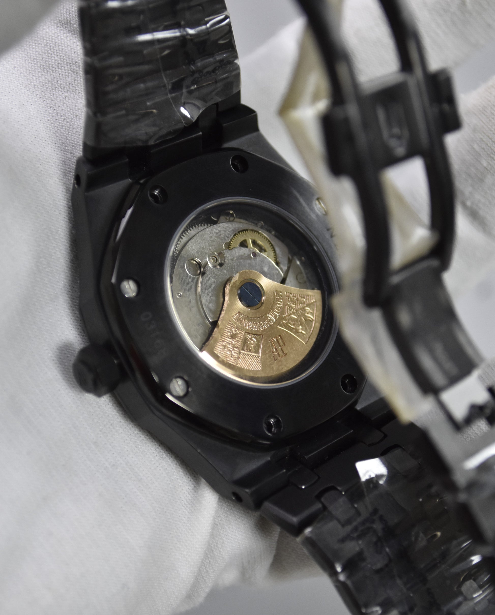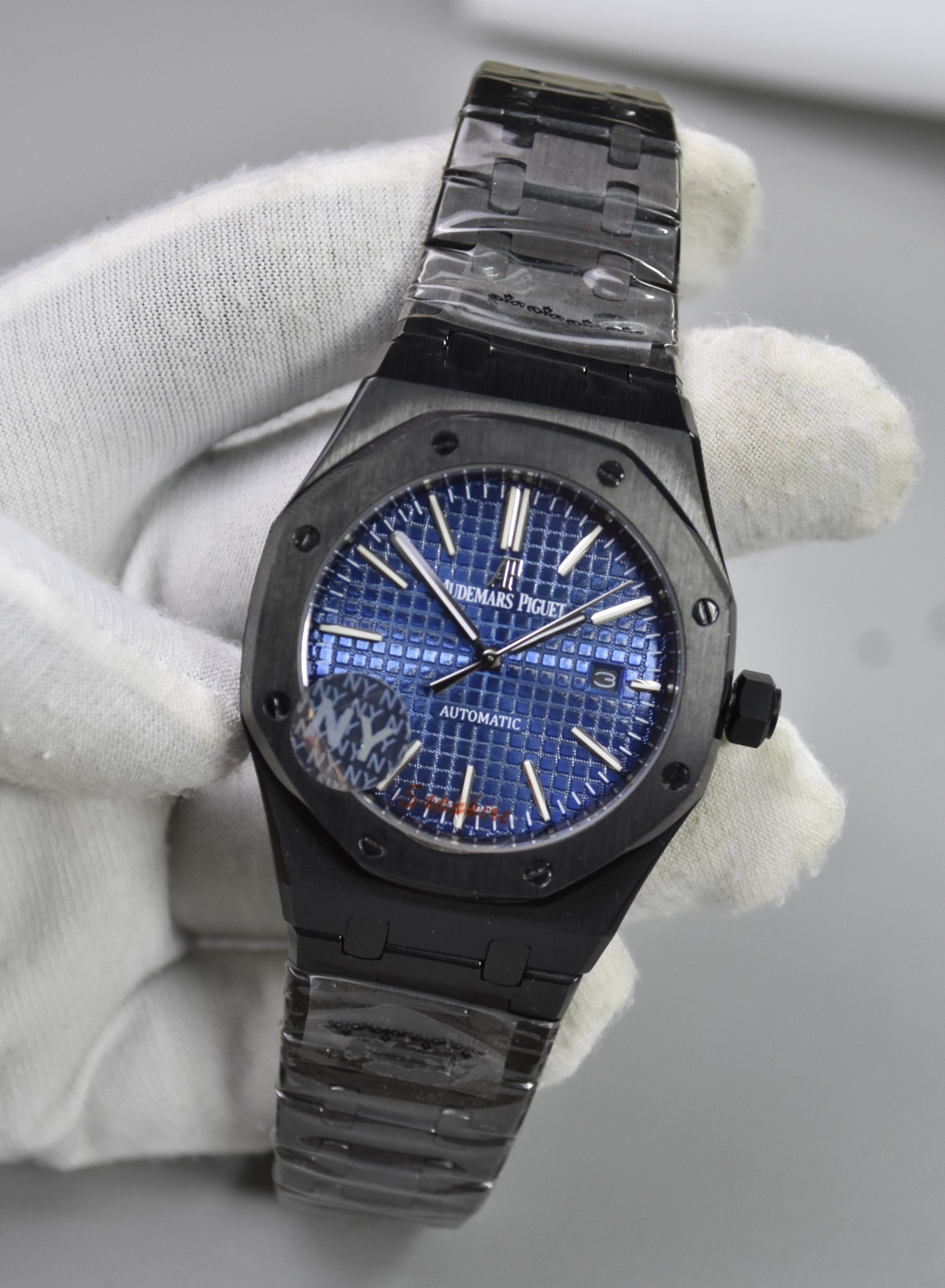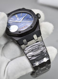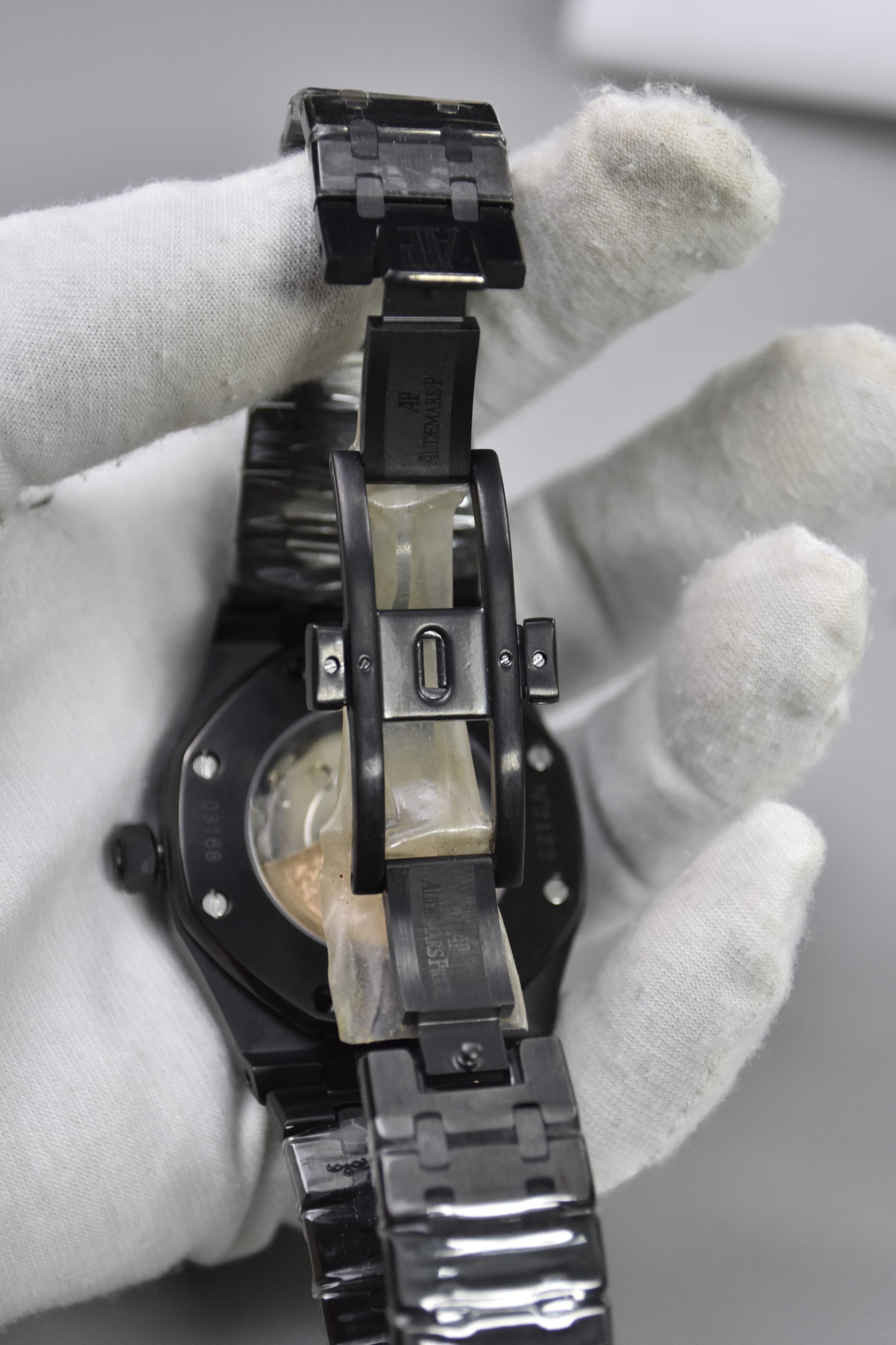 AP ROYAL OAK AUTO CHAIN ALL BLACK BLUE BOX DAIL