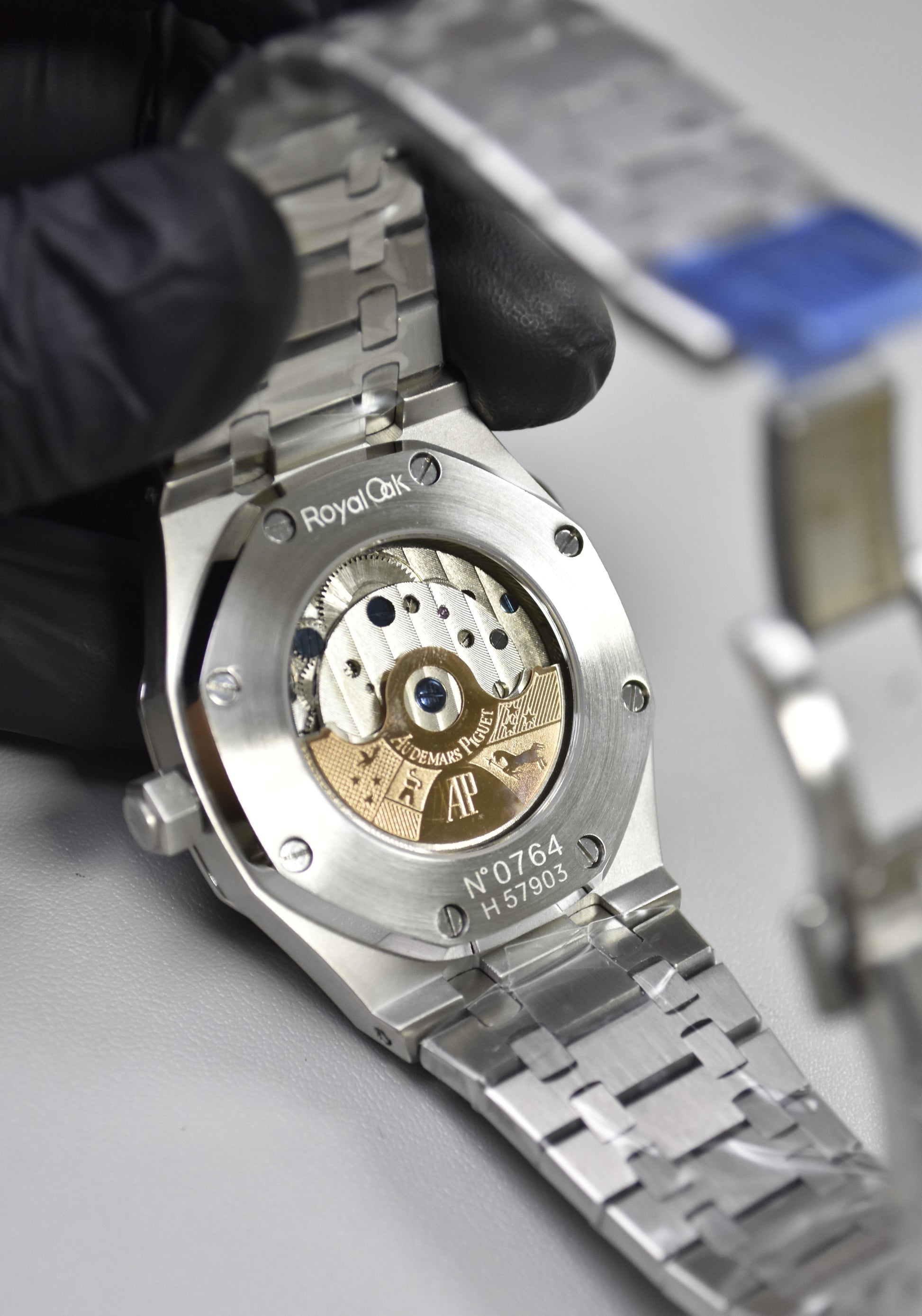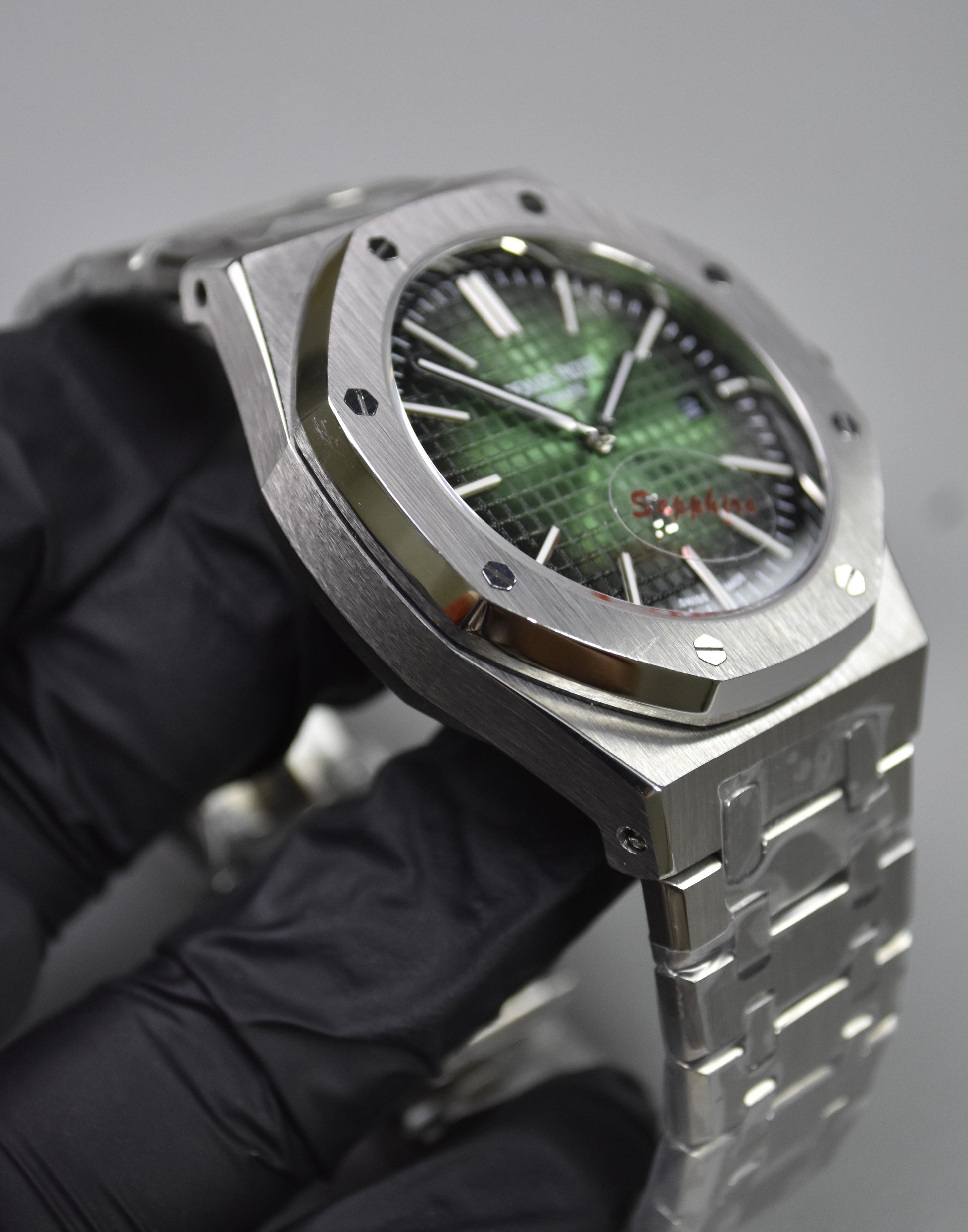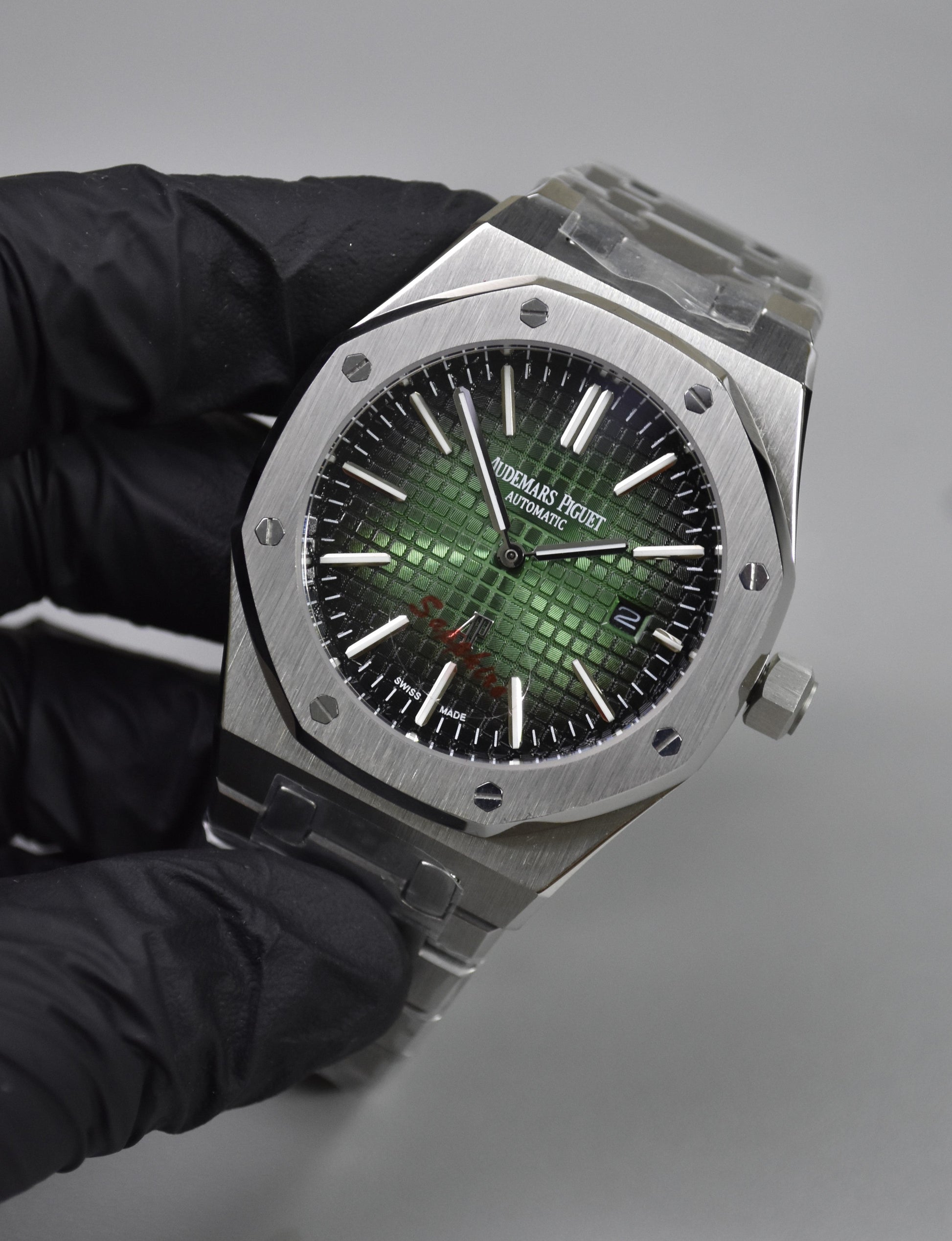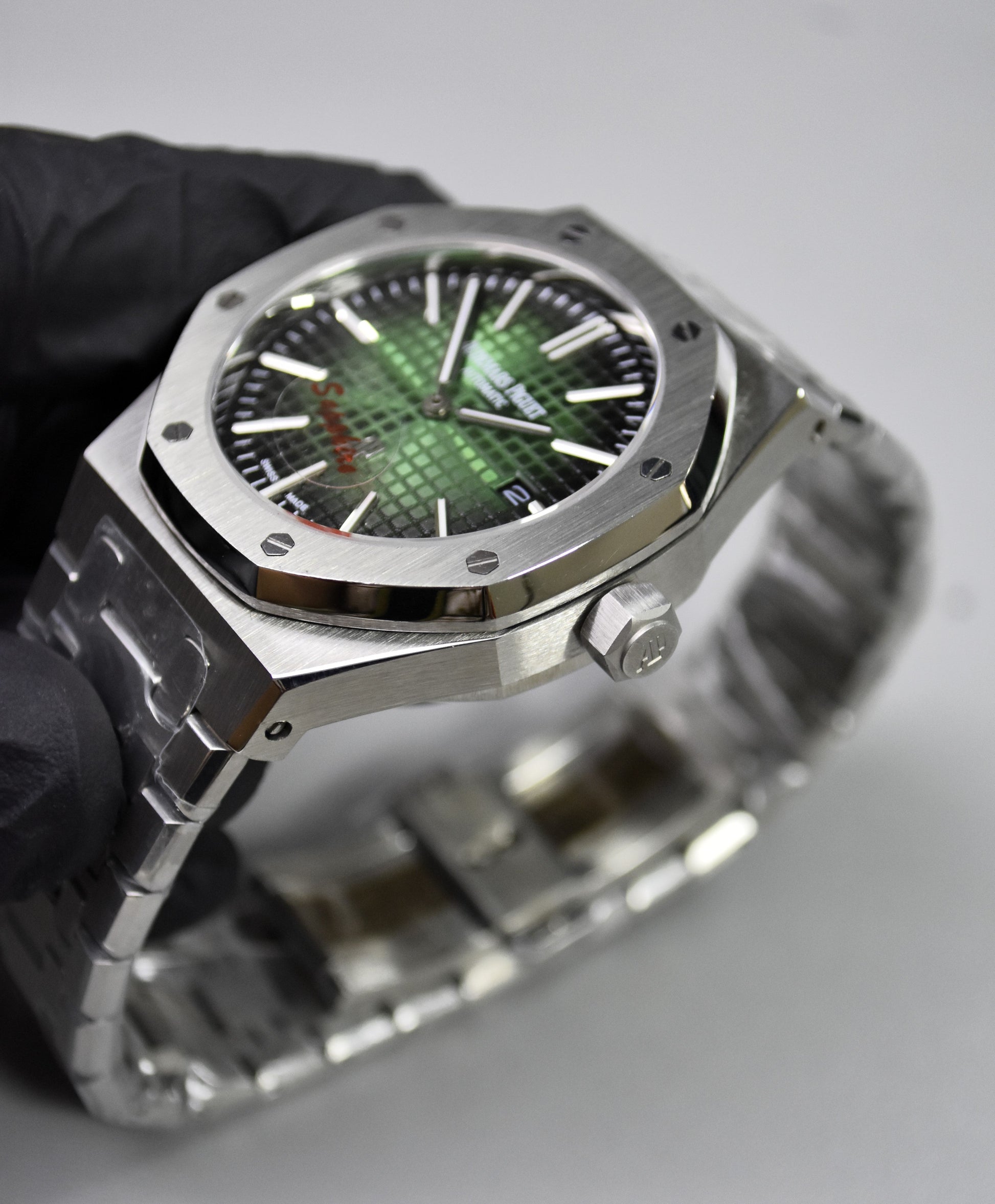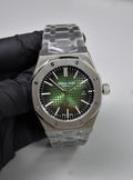 AP ROYAL OAK AUTO CHAIN SILVER GREEN BLACK BOX DAIL
