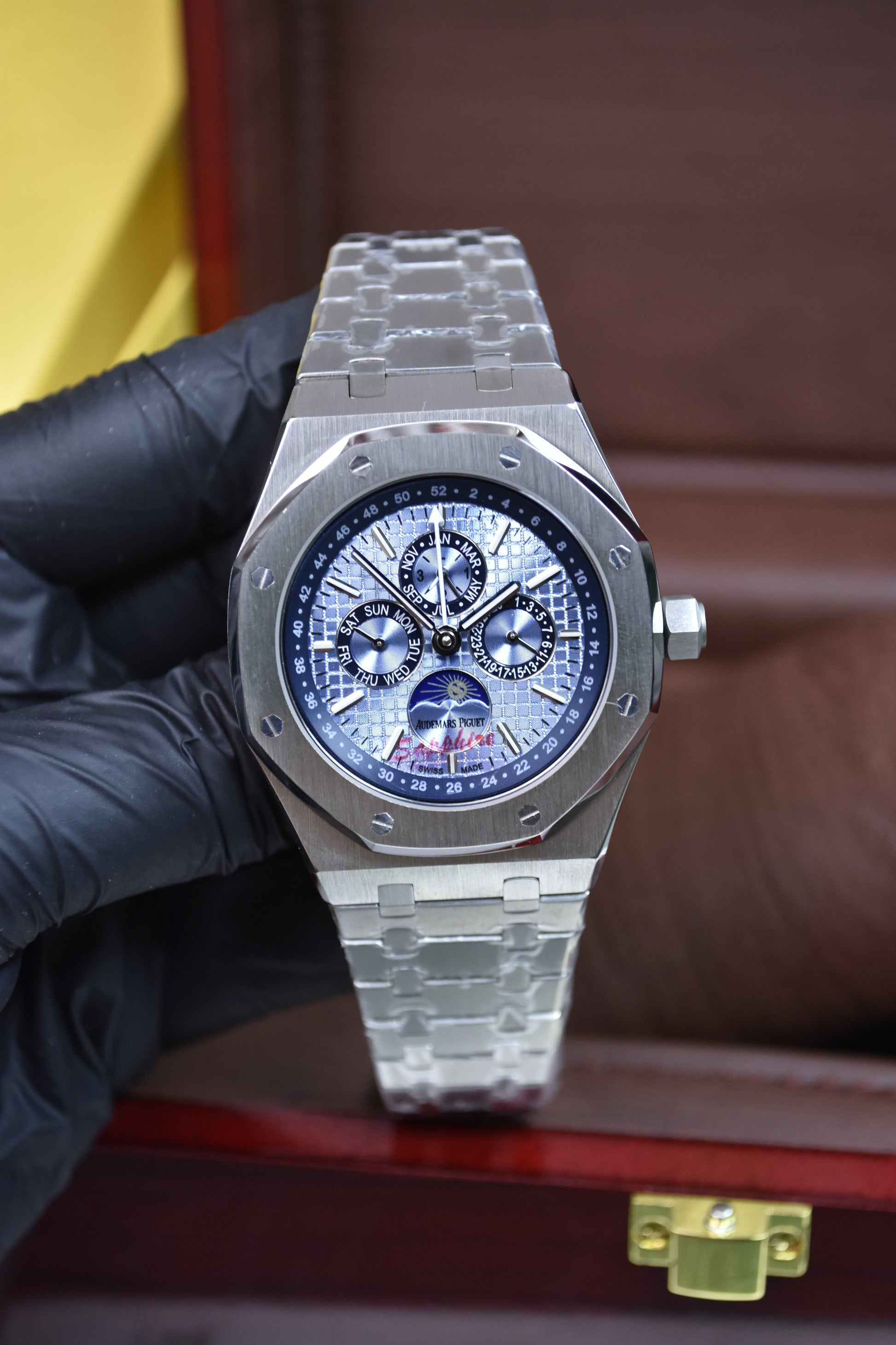 ROYAL OAK AUTO CALENDER PREPETUEL SILVER ICE BLUE