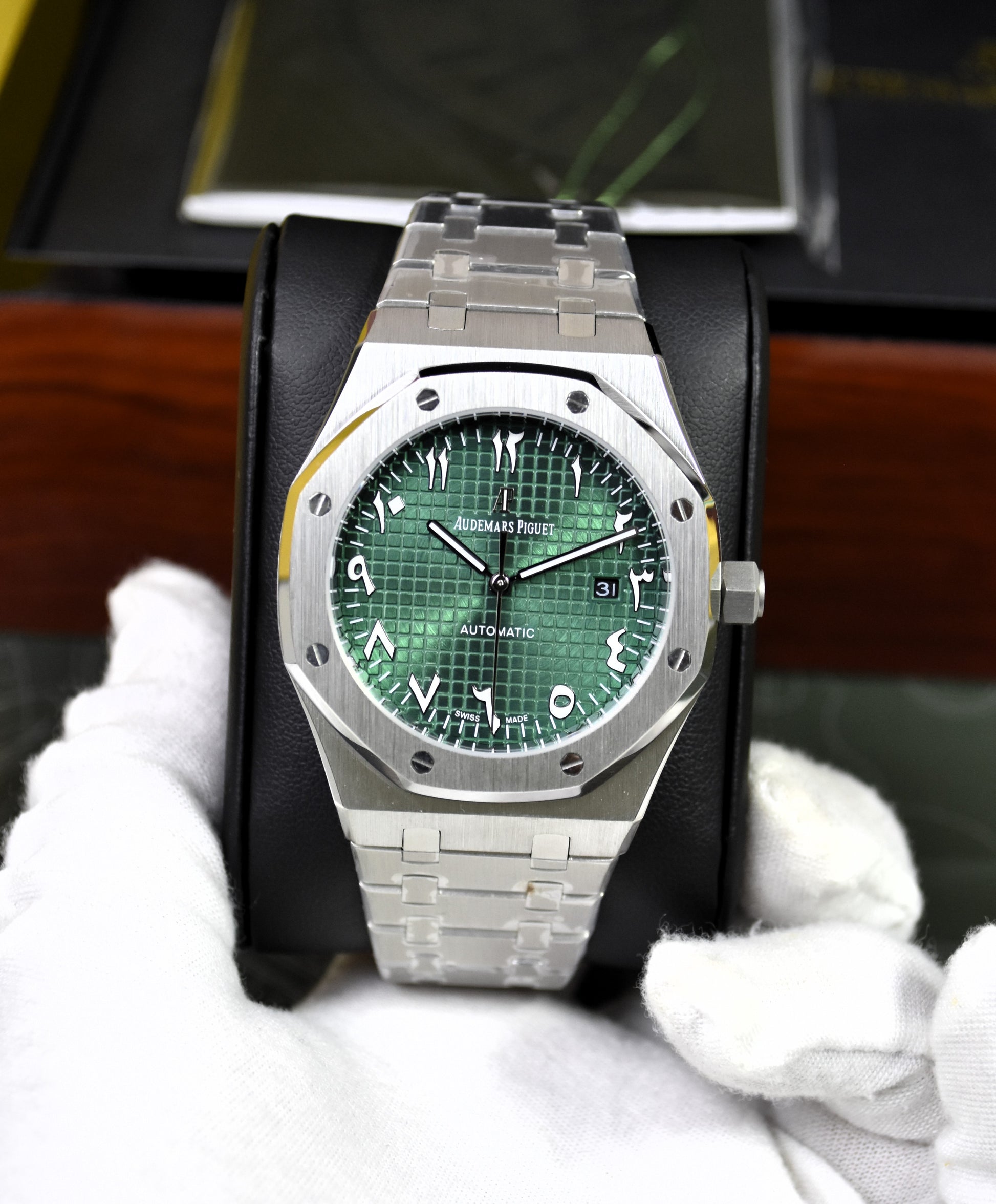 ROYAL OAK AUTO CHAIN SILVER GREEN ARABIC DAIL