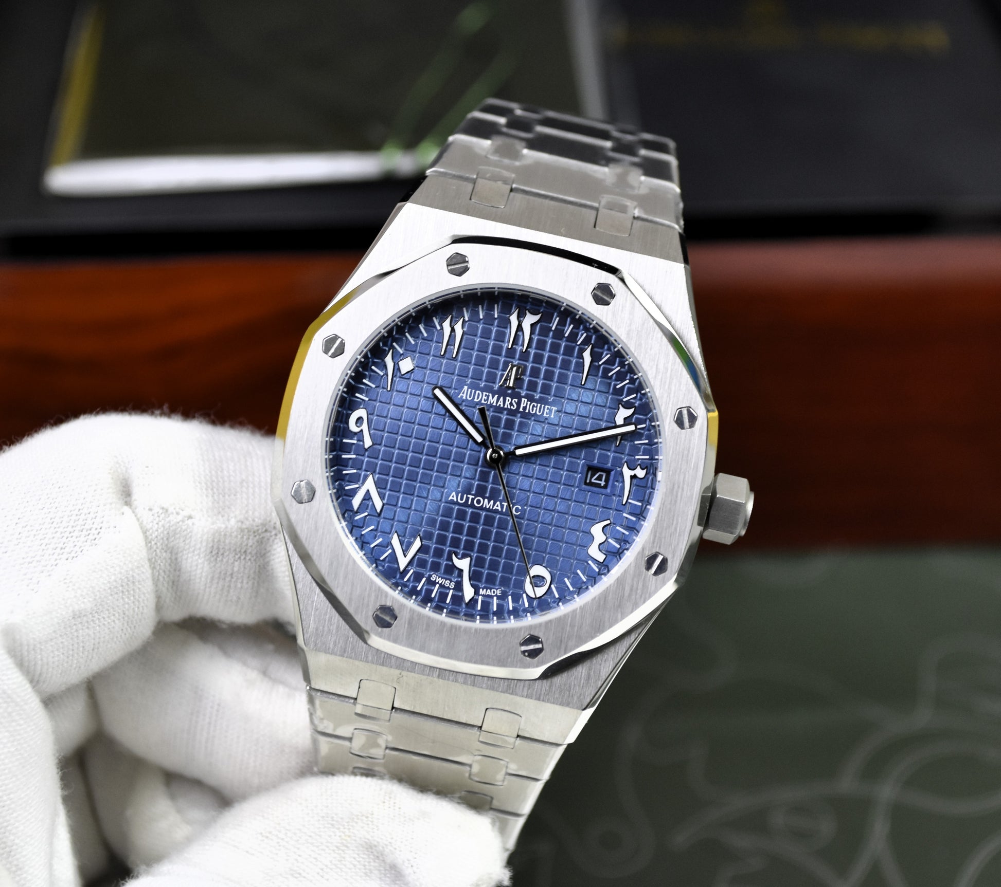 ROYAL OAK AUTO CHAIN SILVER BLUE ARABIC DAIL