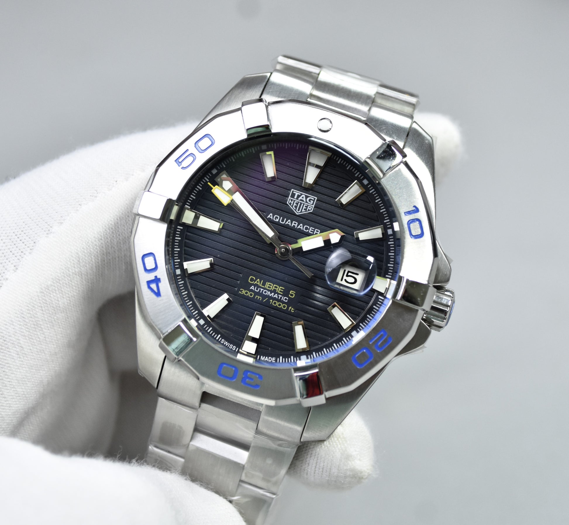 AQUARACER CALIBER 5 AUTO CHAIN SILVER BLUE GREY DAIL