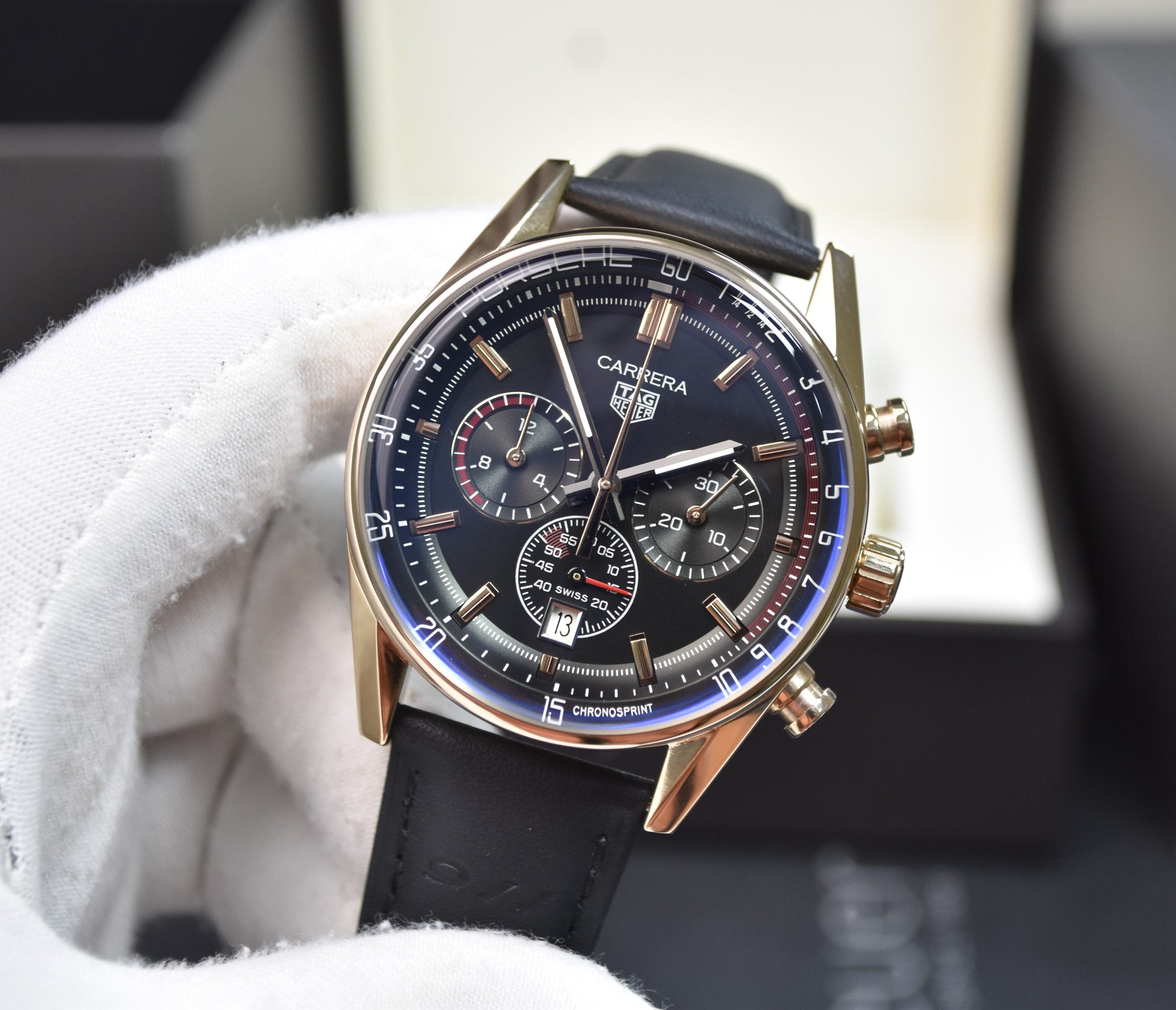 PORSCHE 911 CHRONOGRAPH QUARTZ STRAP ROSE BLACK DAIL
