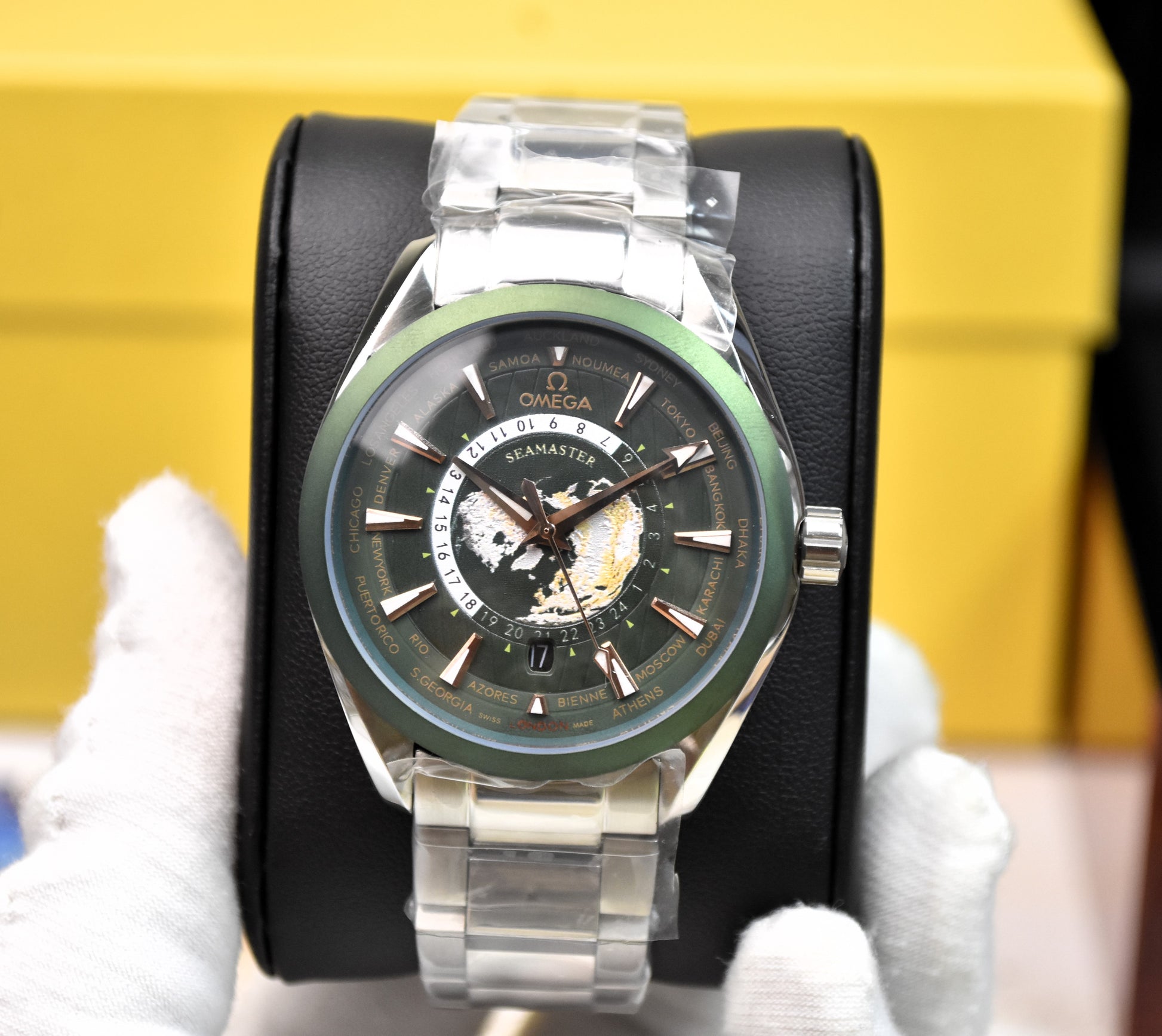 AQUATERRA WORLD MAP AUTO CHAIN SILVER GREEN DAIL