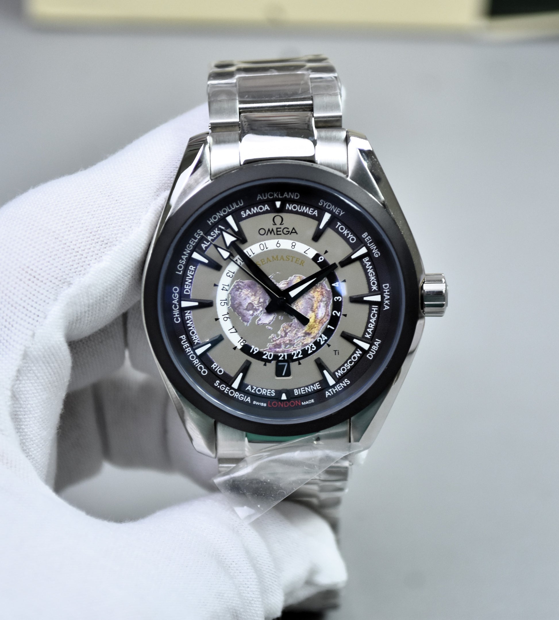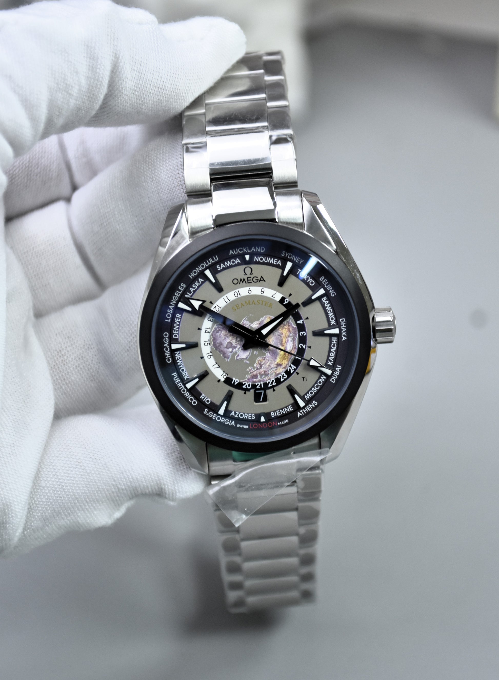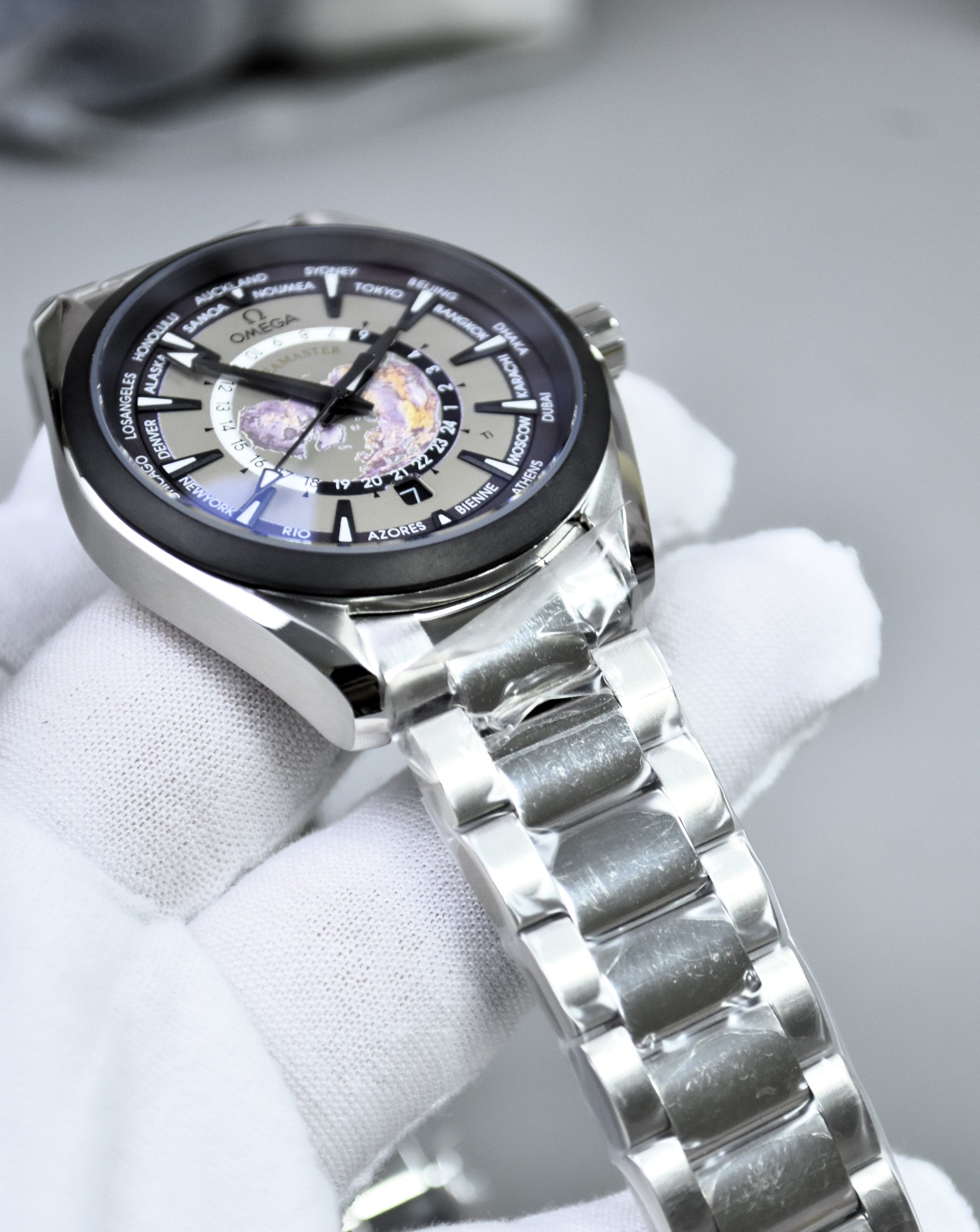 AQUATERRA WORLD MAP AUTO CHAIN SILVER BLACK GREY DAIL
