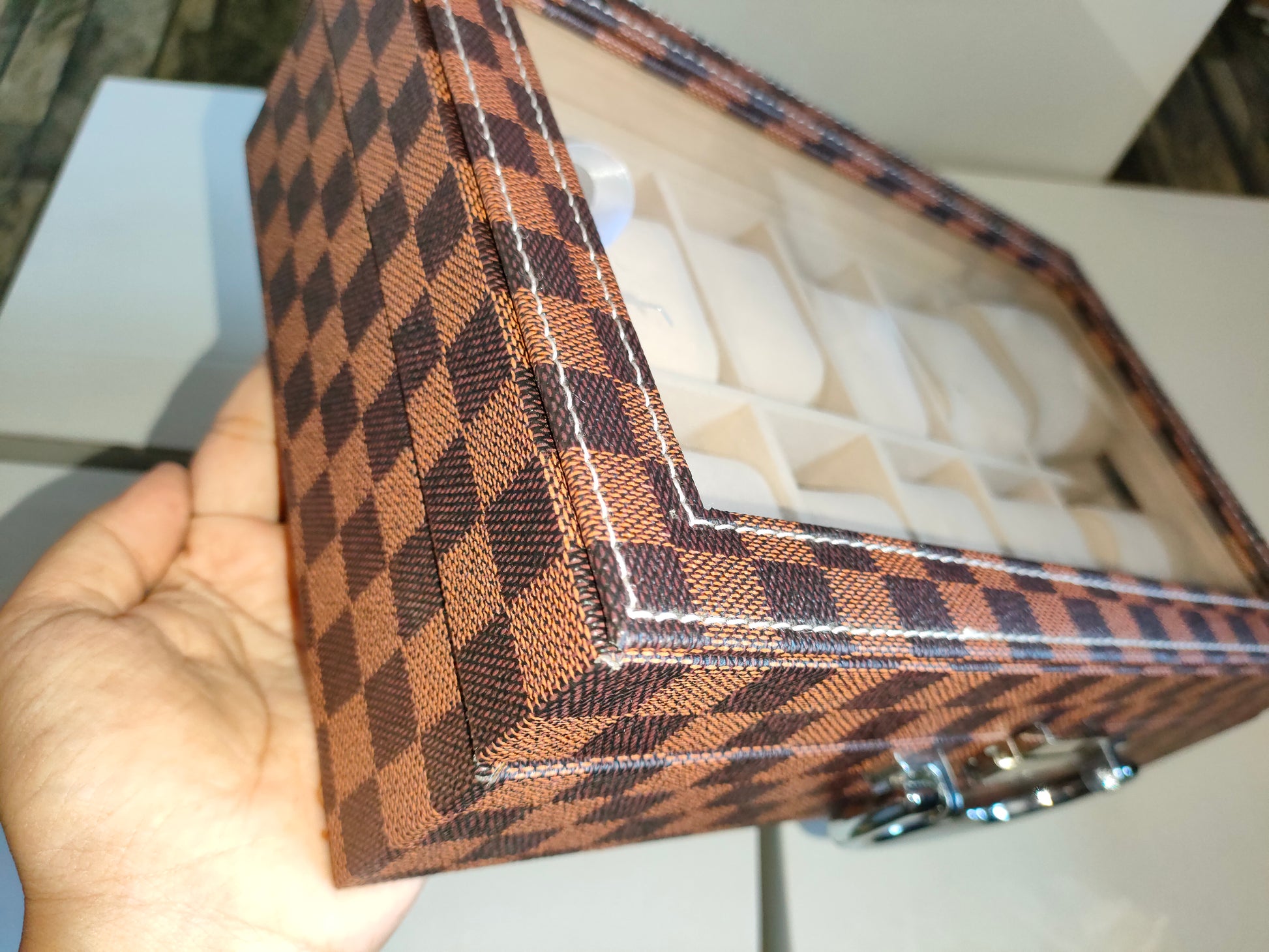 BROWN CHECKS ACRYLIC MIRROR BRIEFCASE