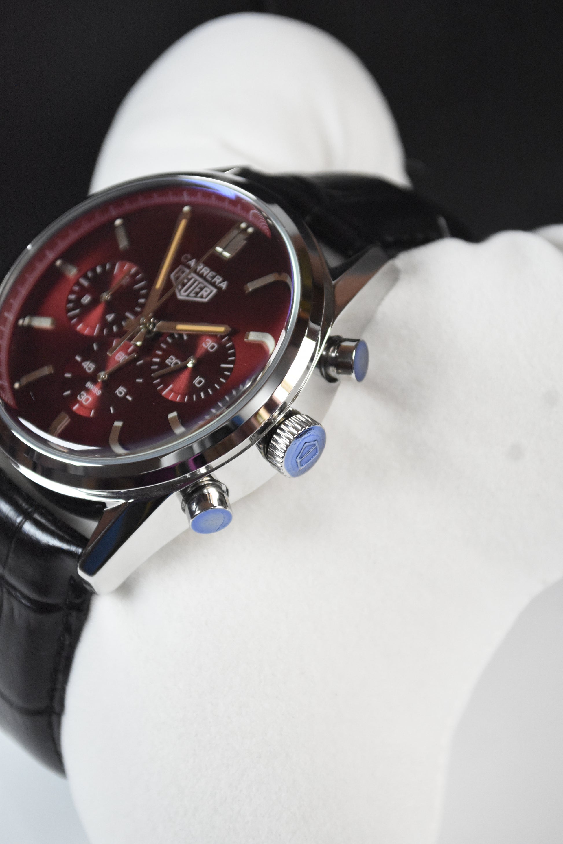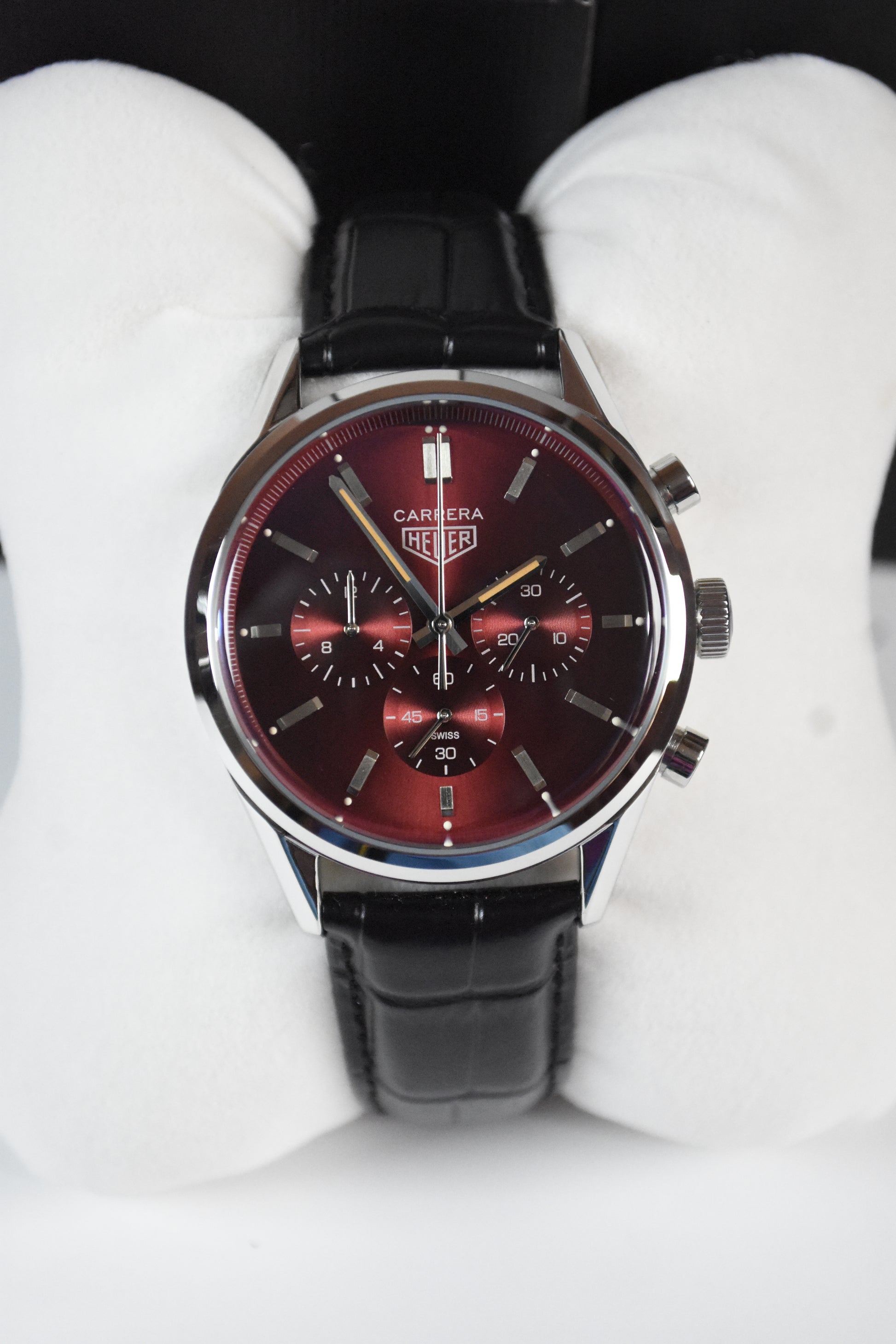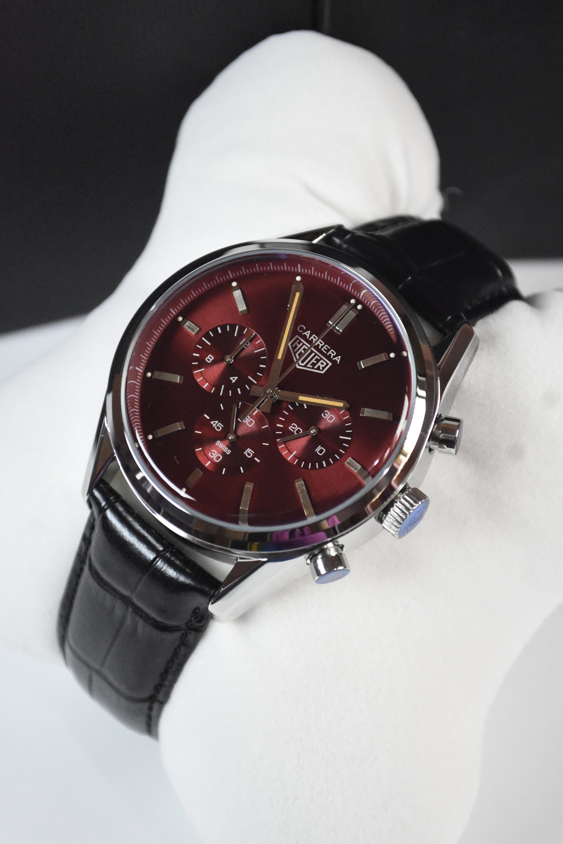CARRERA 100METERS CHRONOGRAPH STRAP SILVER RED DAIL