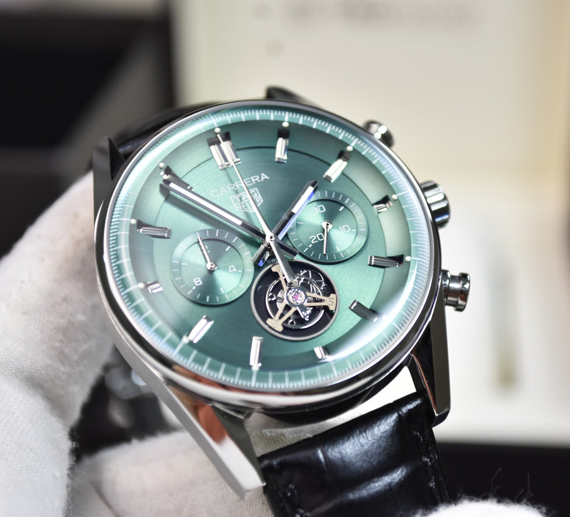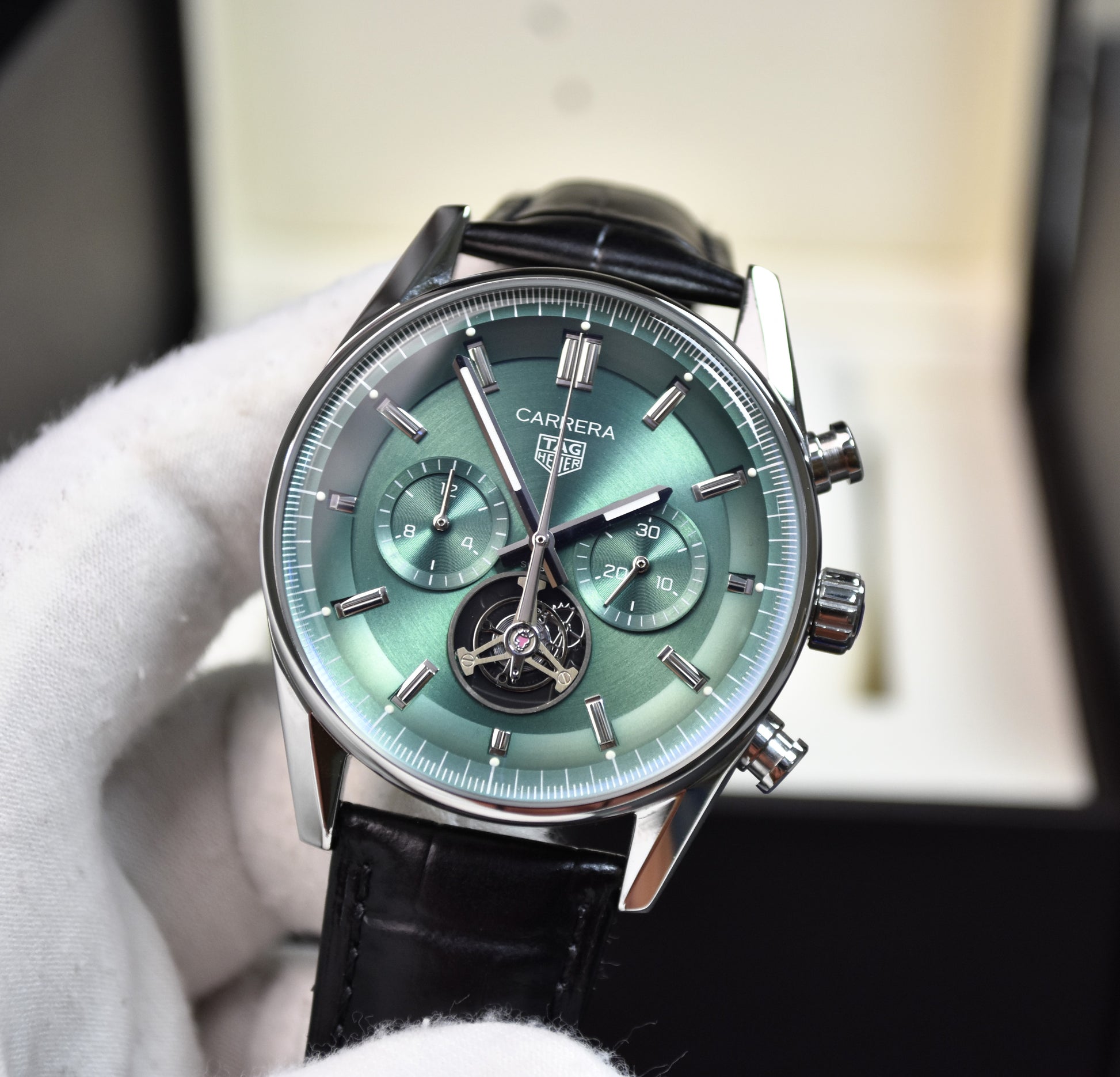 CARRERA TOURBILLON CHRONOGRAPH QUARTZ STRAP SILVER GREEN