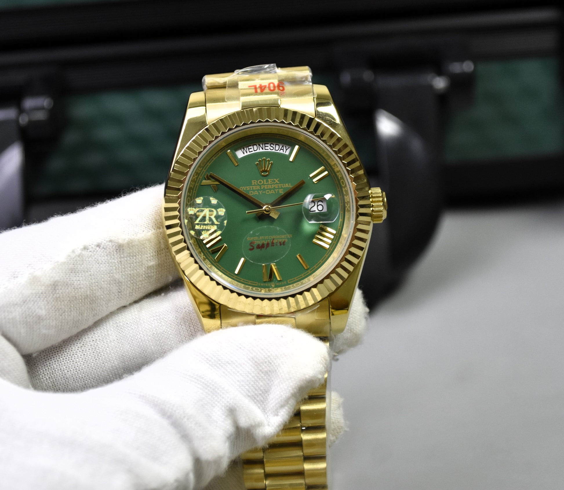 DAYDATE AUTO PRESIDENTIAL ROMAN GOLD GREEN