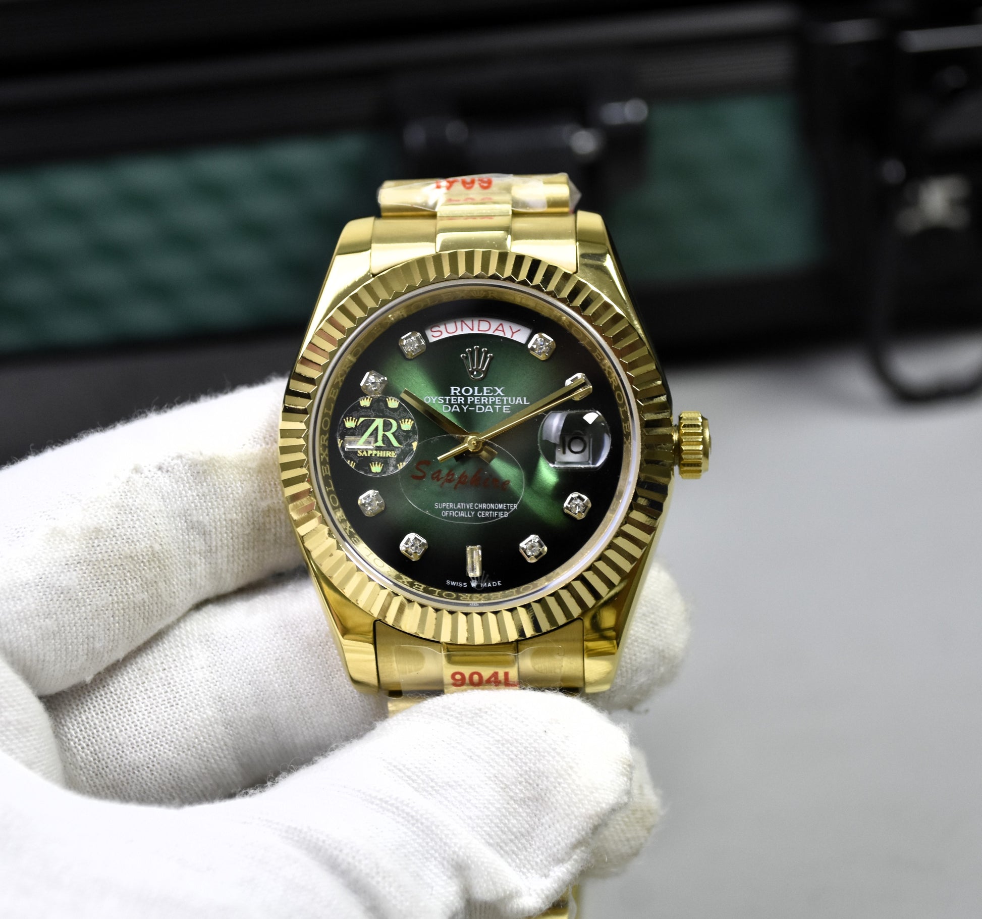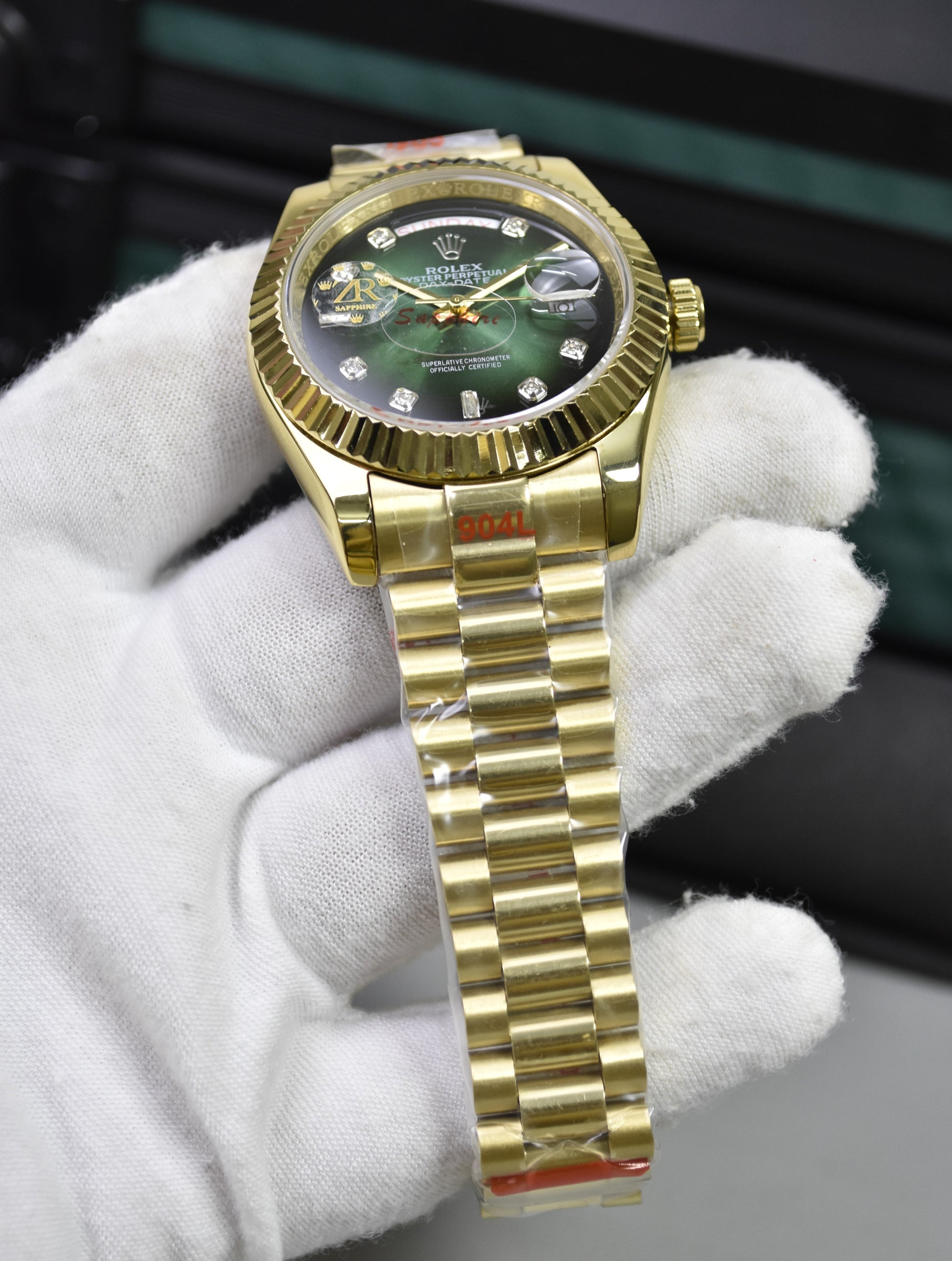 DAYDATE AUTO PRESIDENTIAL GOLD GREEN BLACK STONES