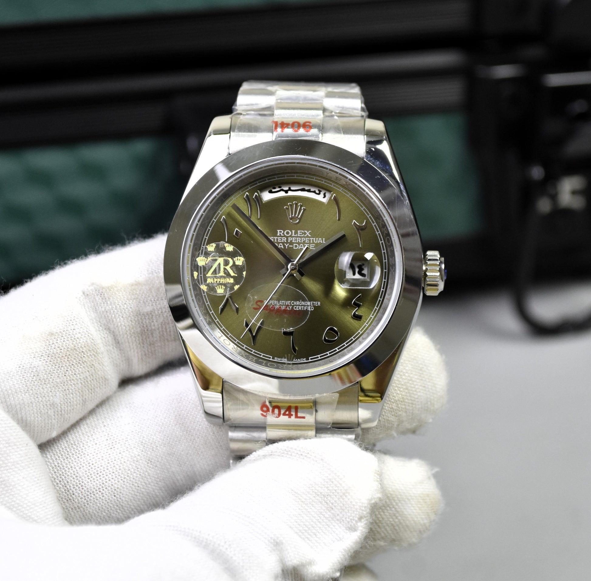 DAYDATE AUTO PRESIDENTIAL ARABIC SILVER OLIVEGREEN