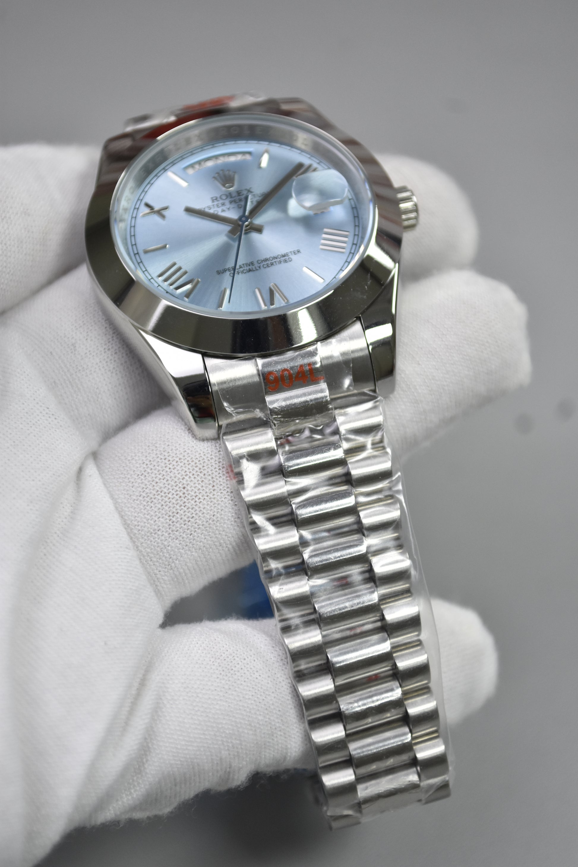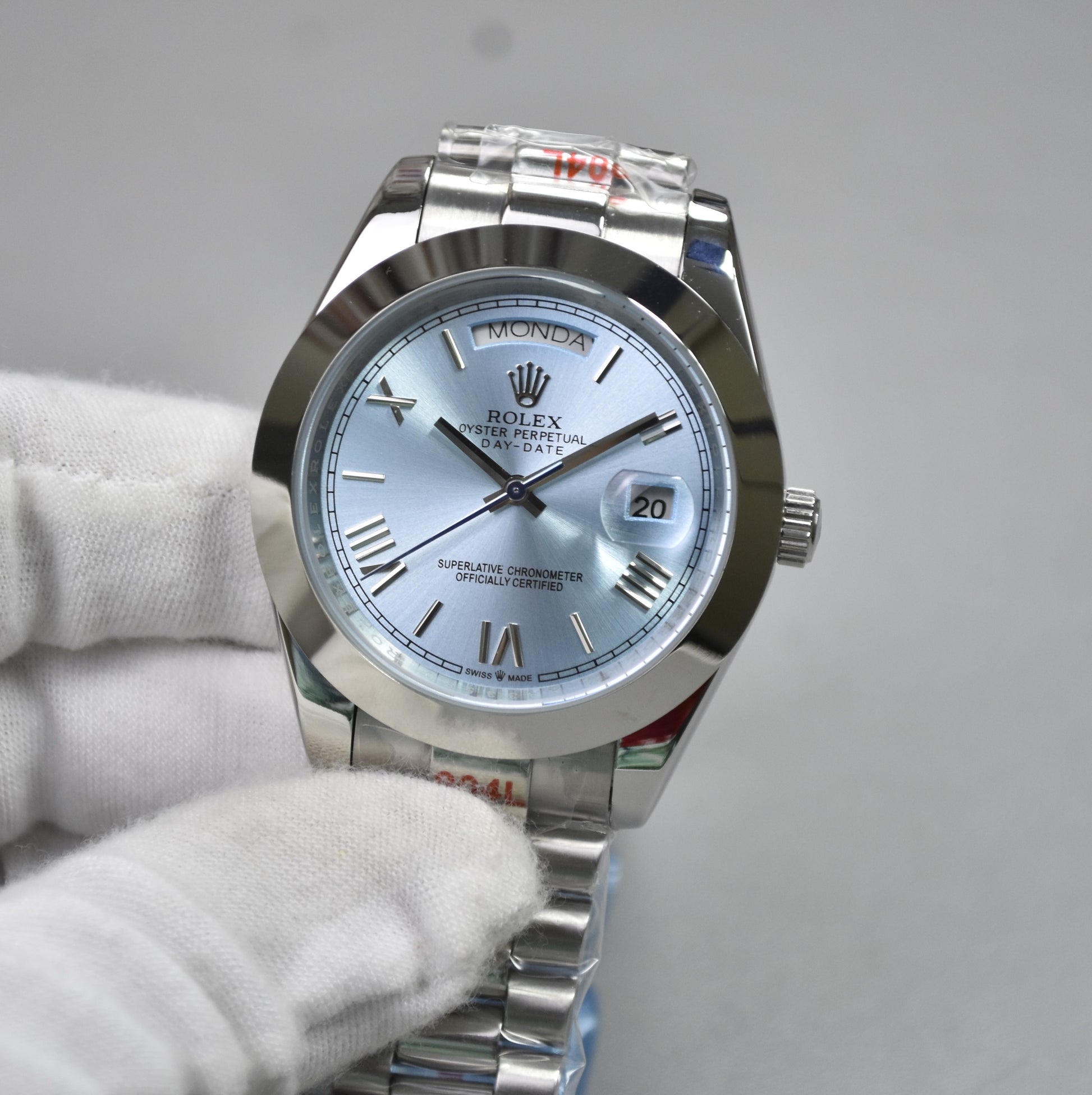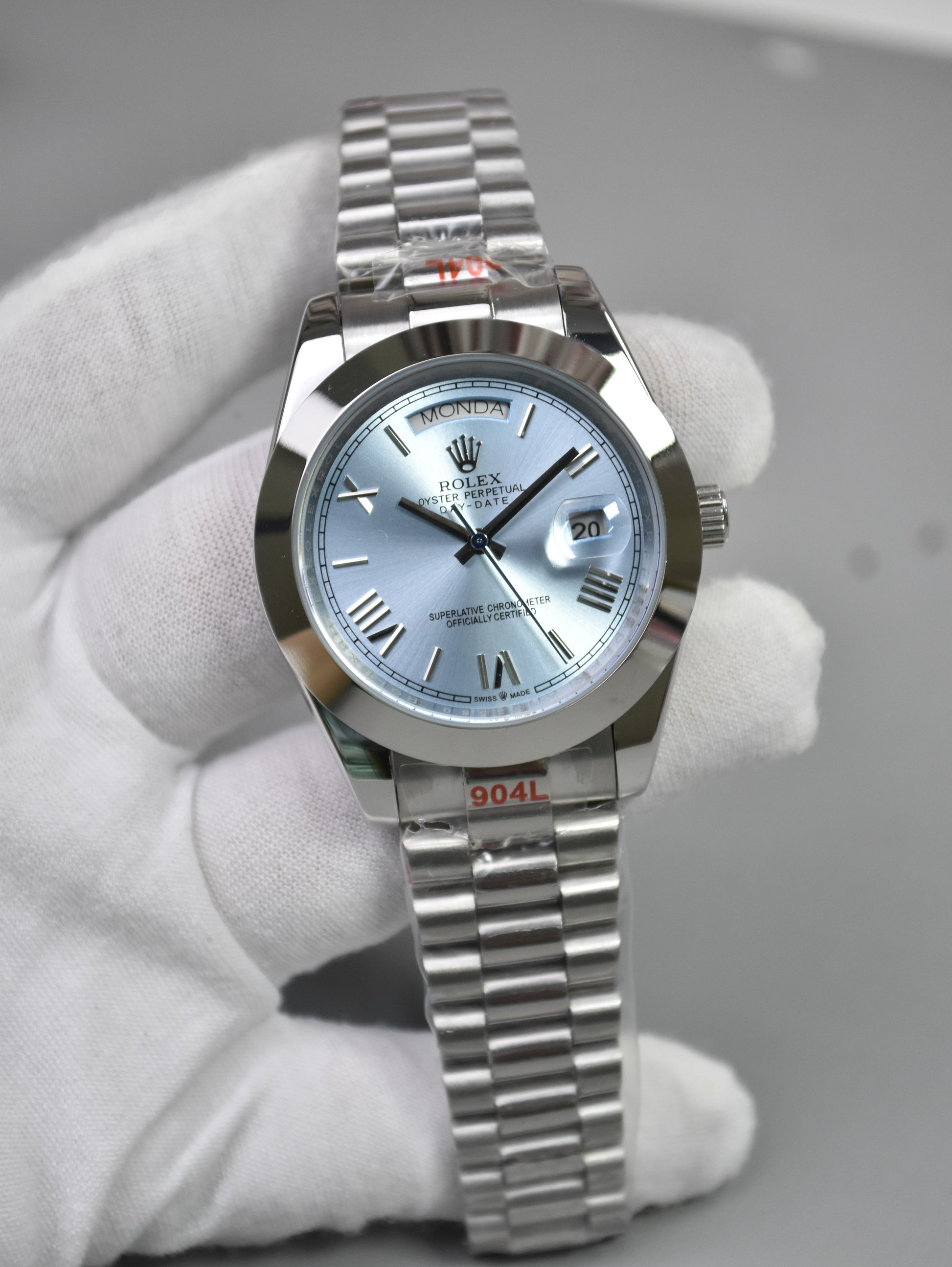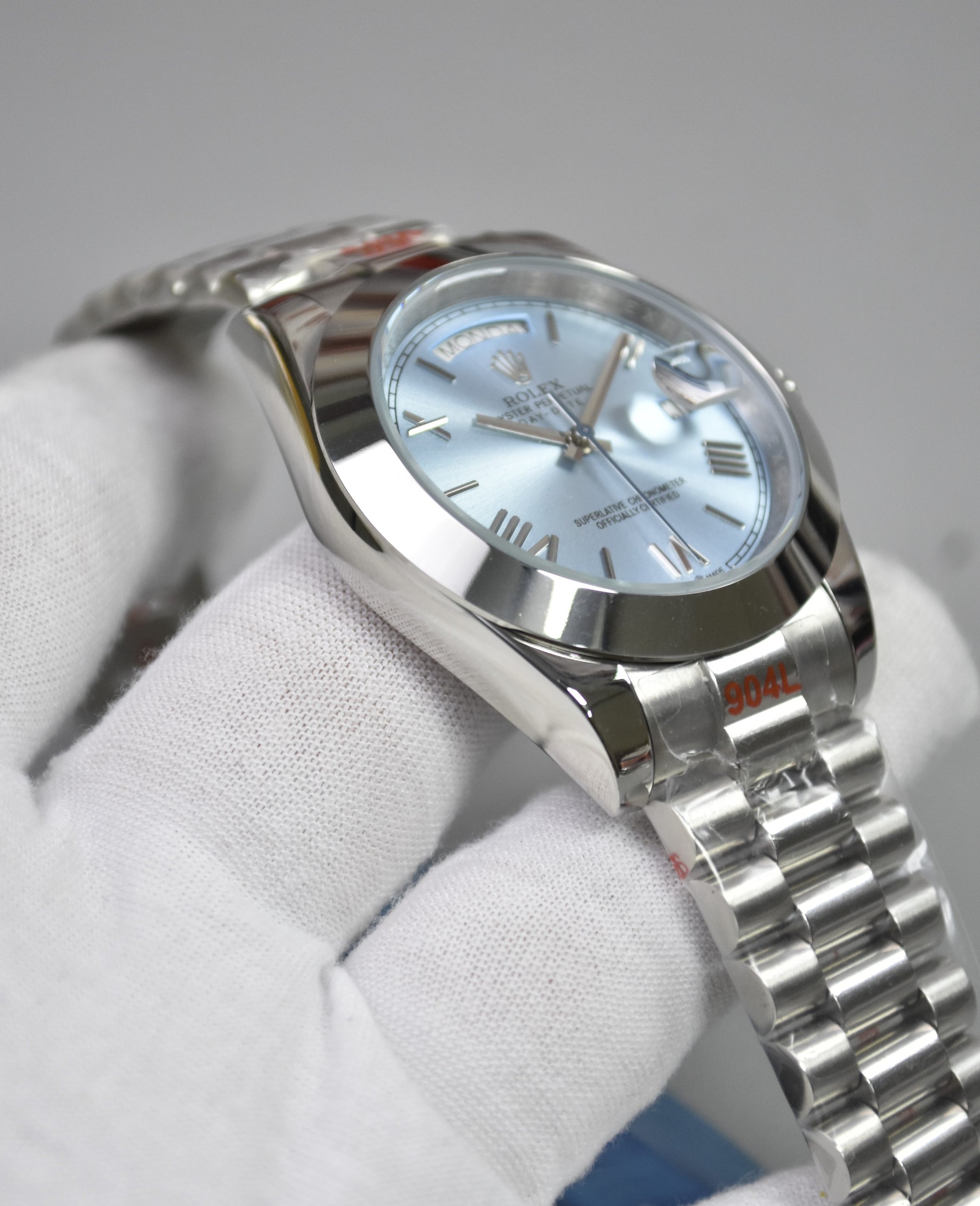 DAYDATE AUTO PRESIDENTIAL ROMAN SILVER ICE BLUE