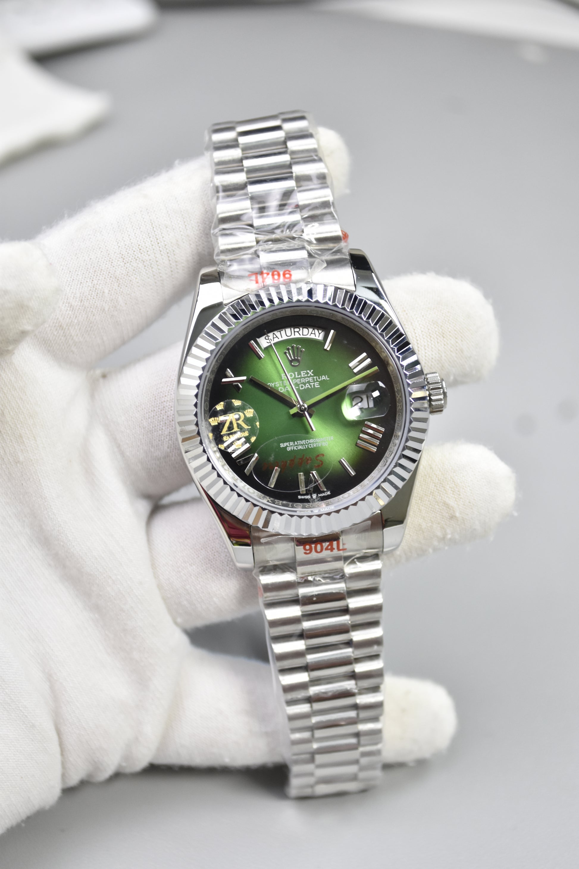 DAYDATE AUTO PRESIDENTIAL ROMAN SILVER GREEN BLACK DAIL