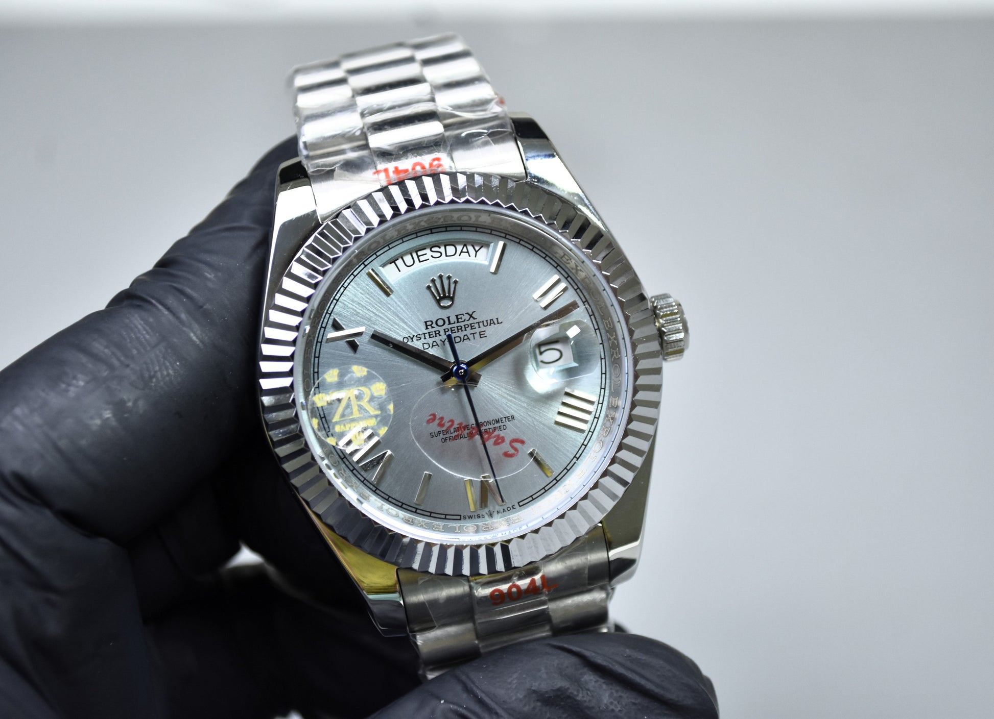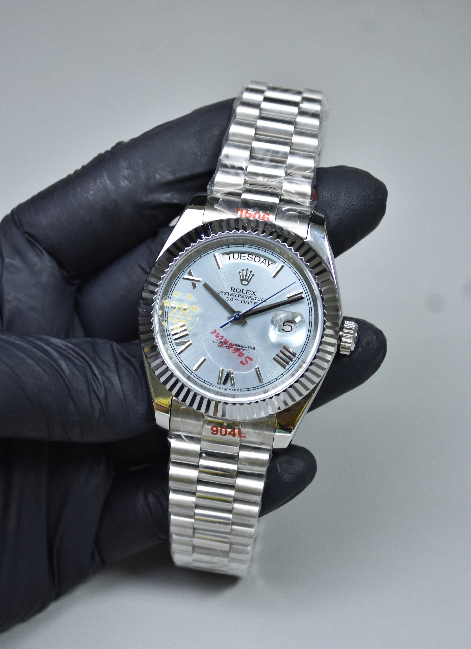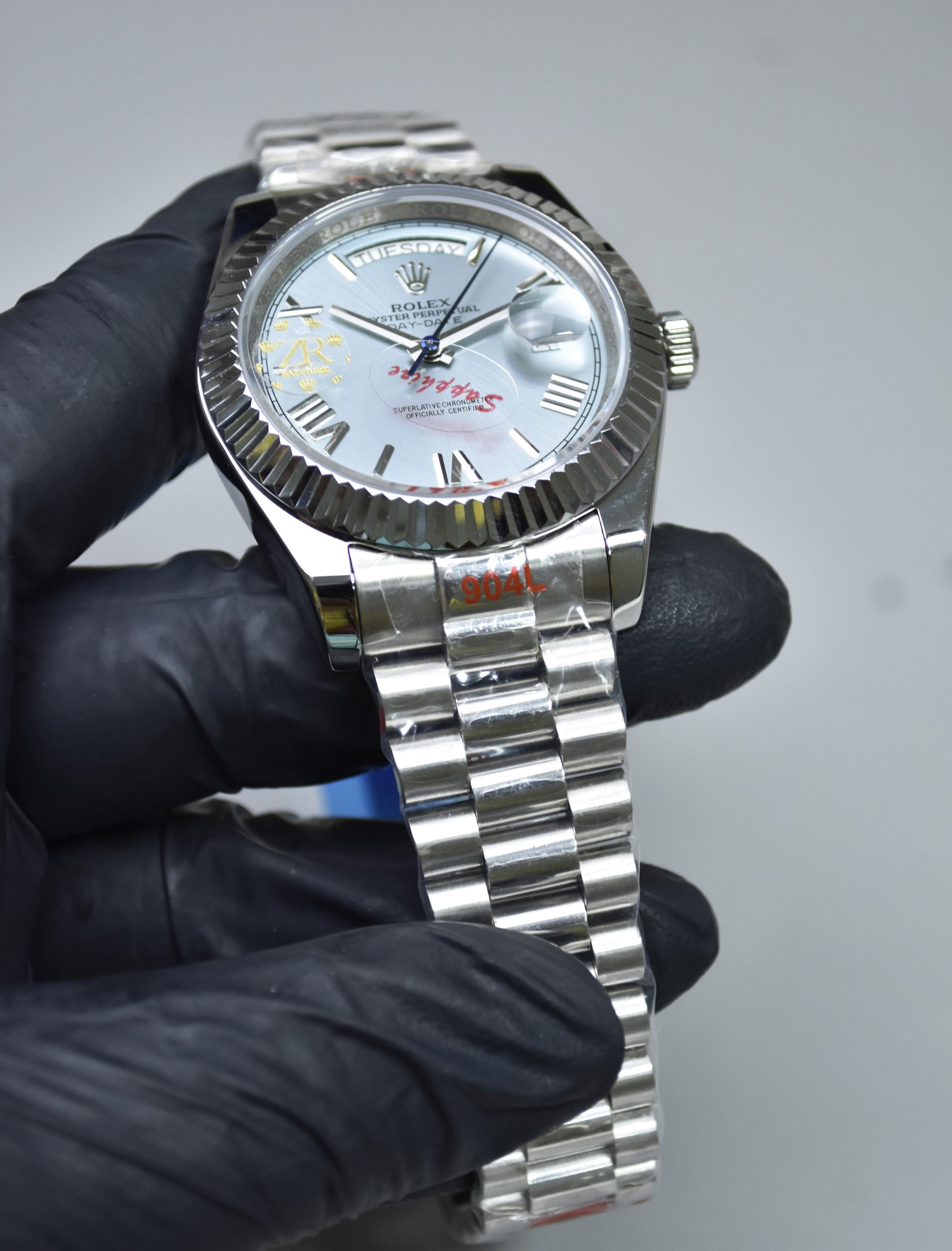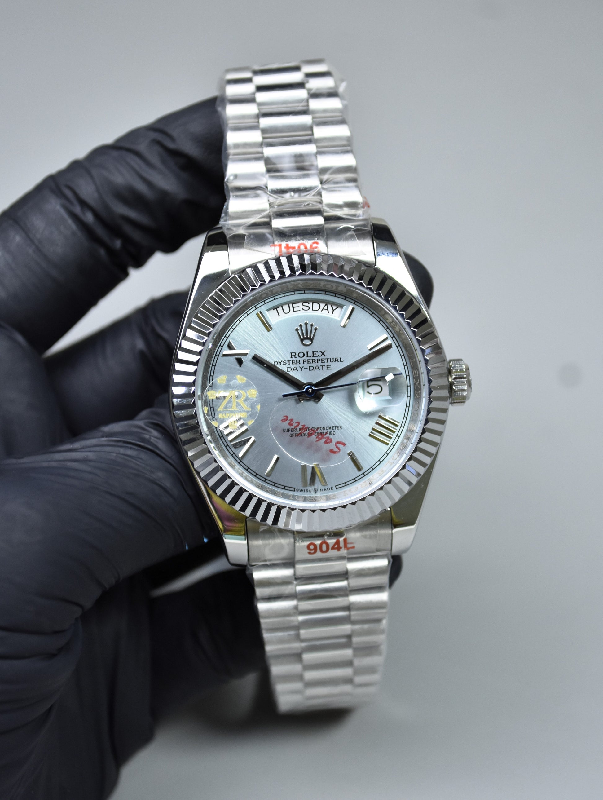 DAYDATE AUTO PRESIDENTIAL ROMAN SILVER ICE BLUE DAIL..