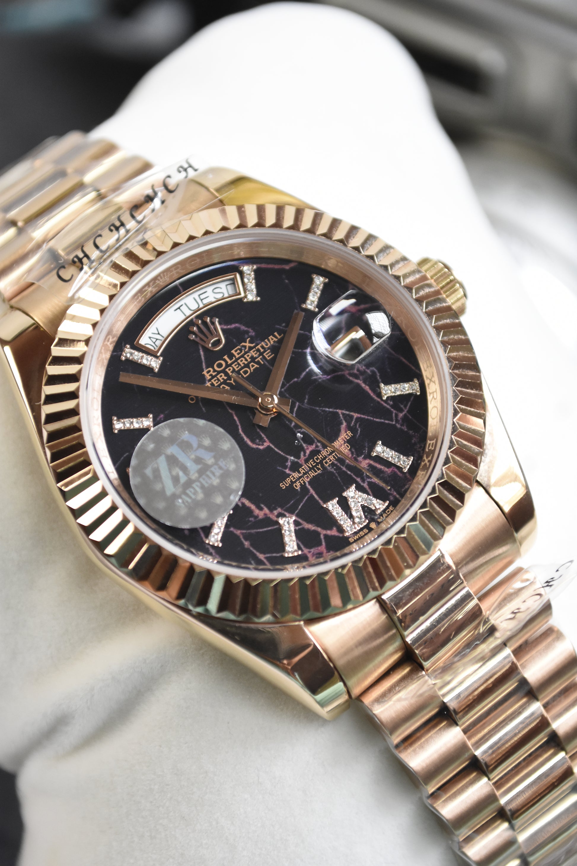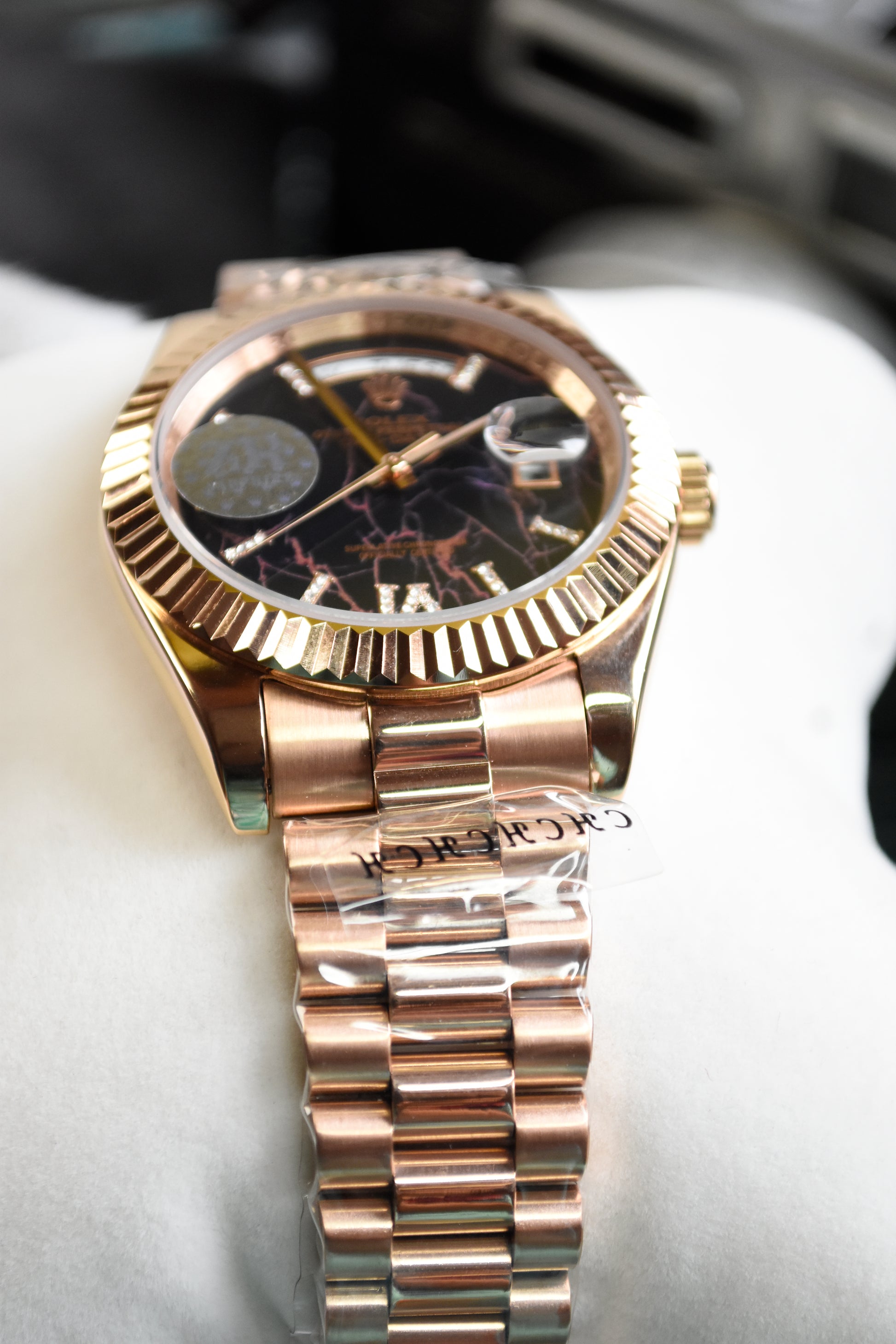 DAYDATE AUTO PRESIDENTIAL ROMAN ROSE BLACK ORANGE DAIL