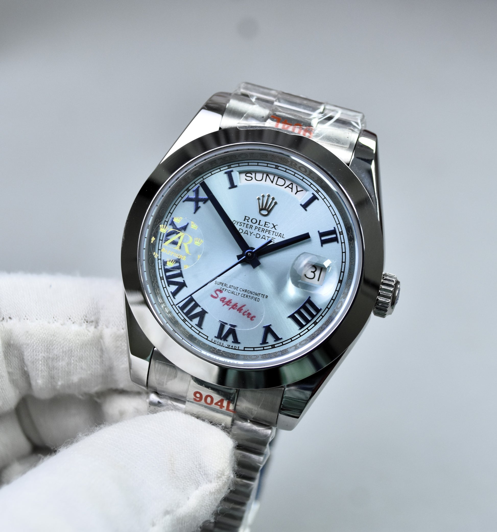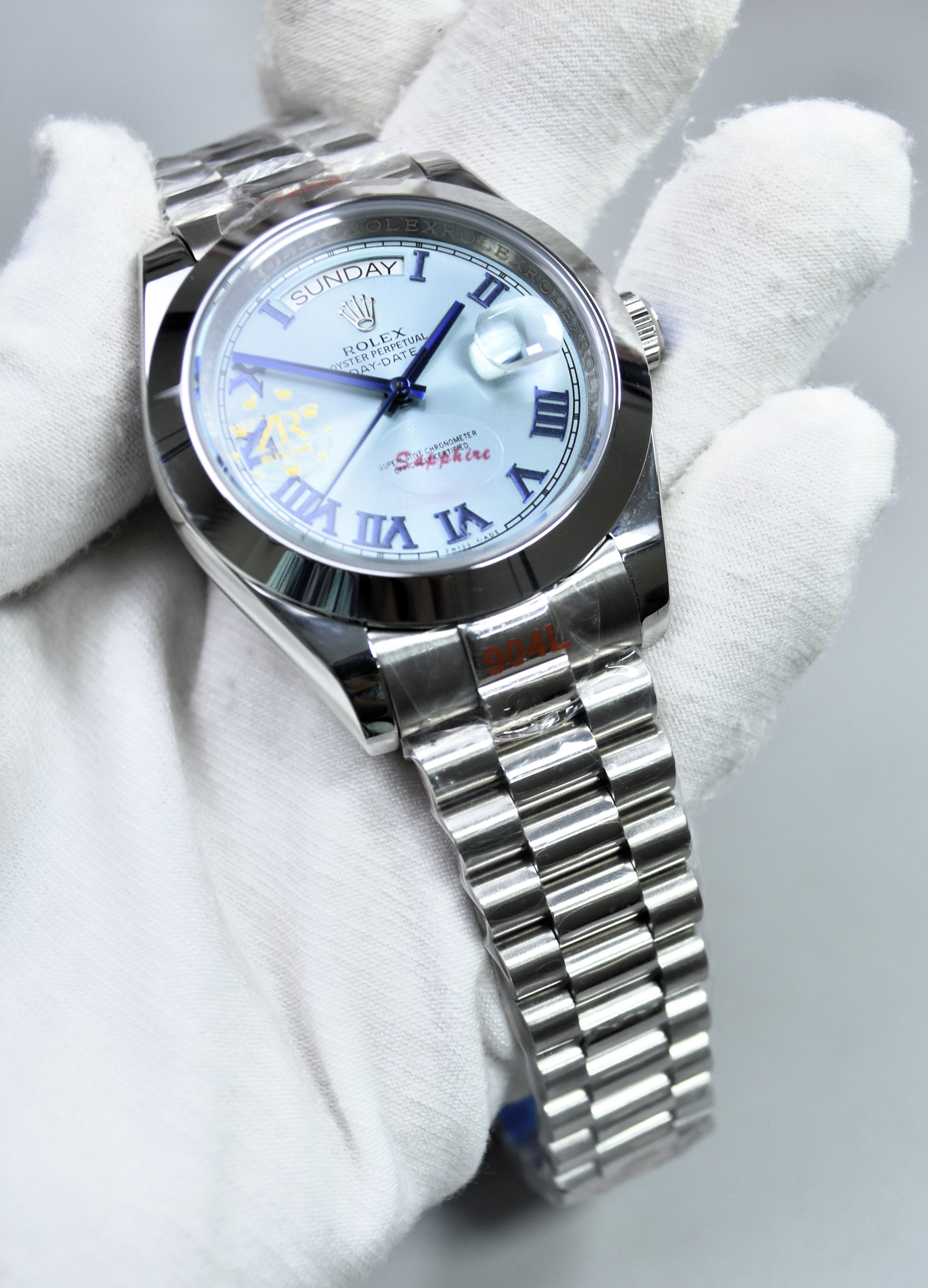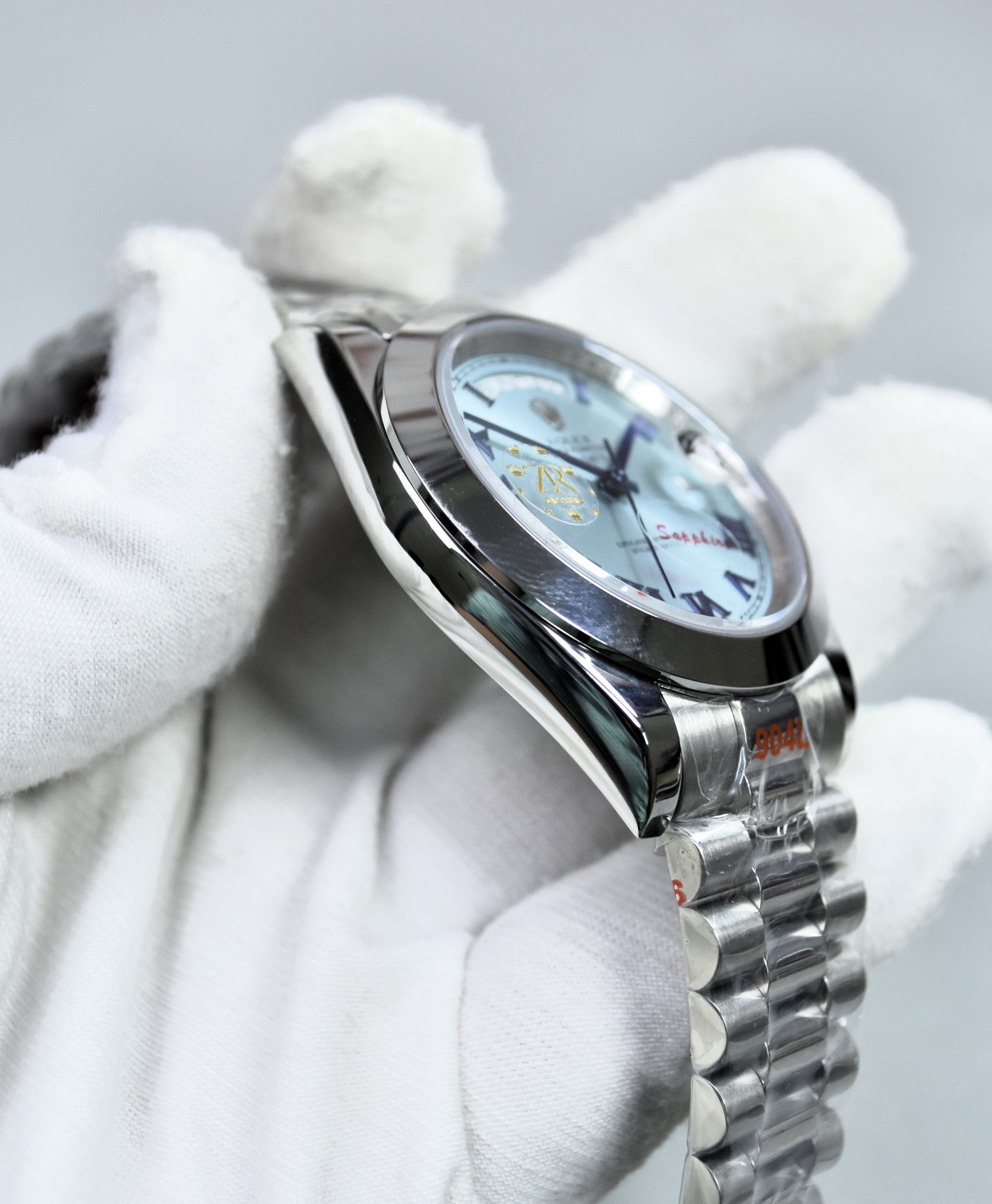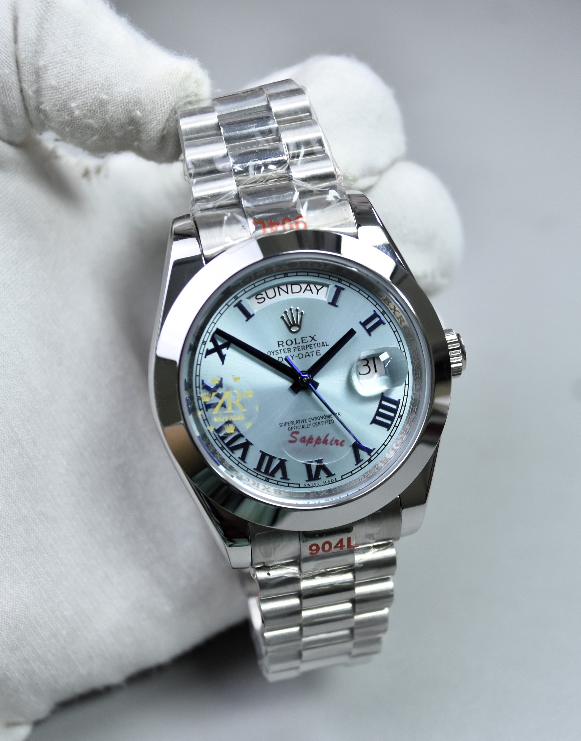 DAYDATE AUTO PRESIDENTIAL ROMAN SILVER ICE BLUE DAIL