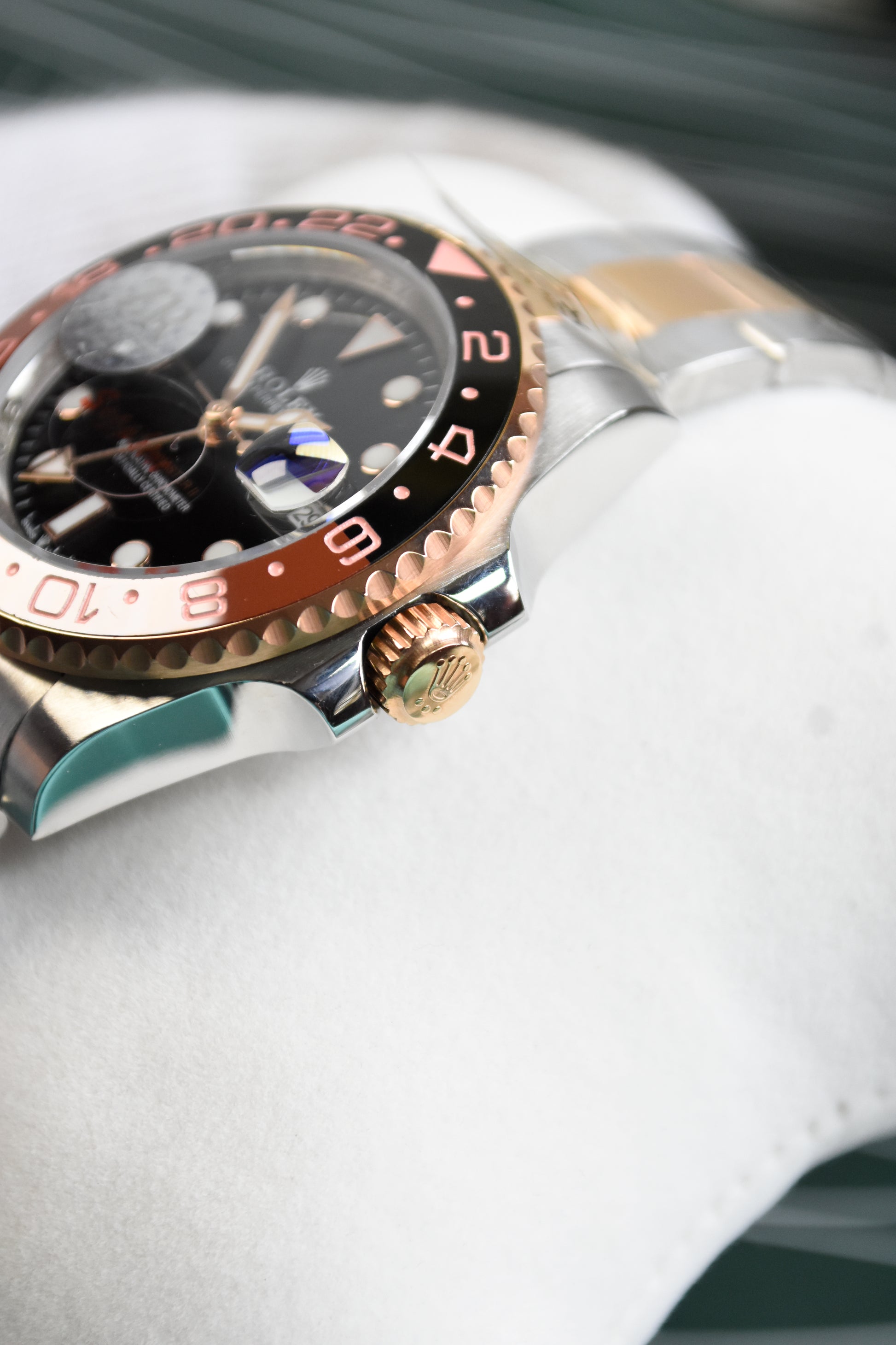 GMT 2 AUTO ROOTBEAR TWOTONE ROSE BLACK DAIL