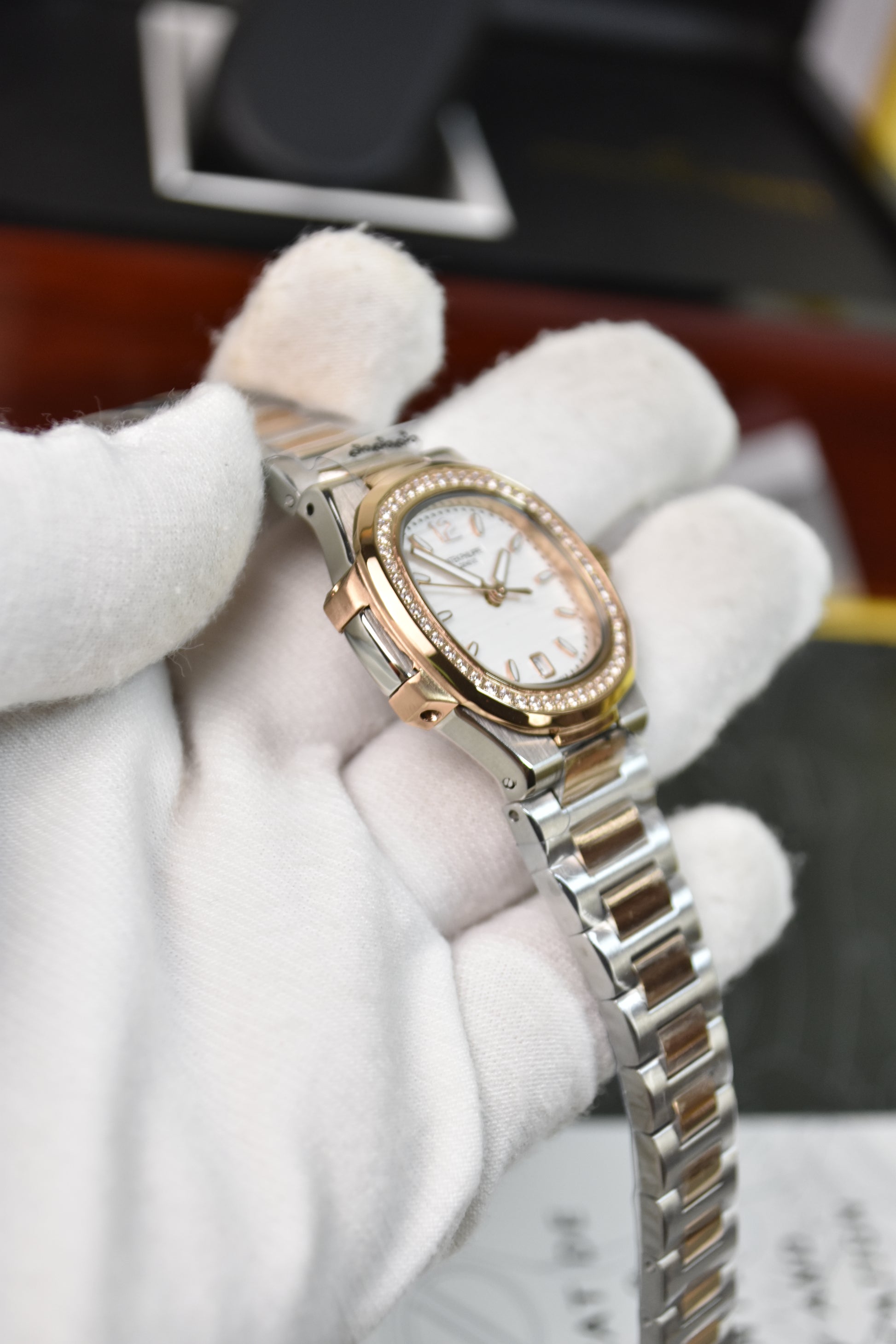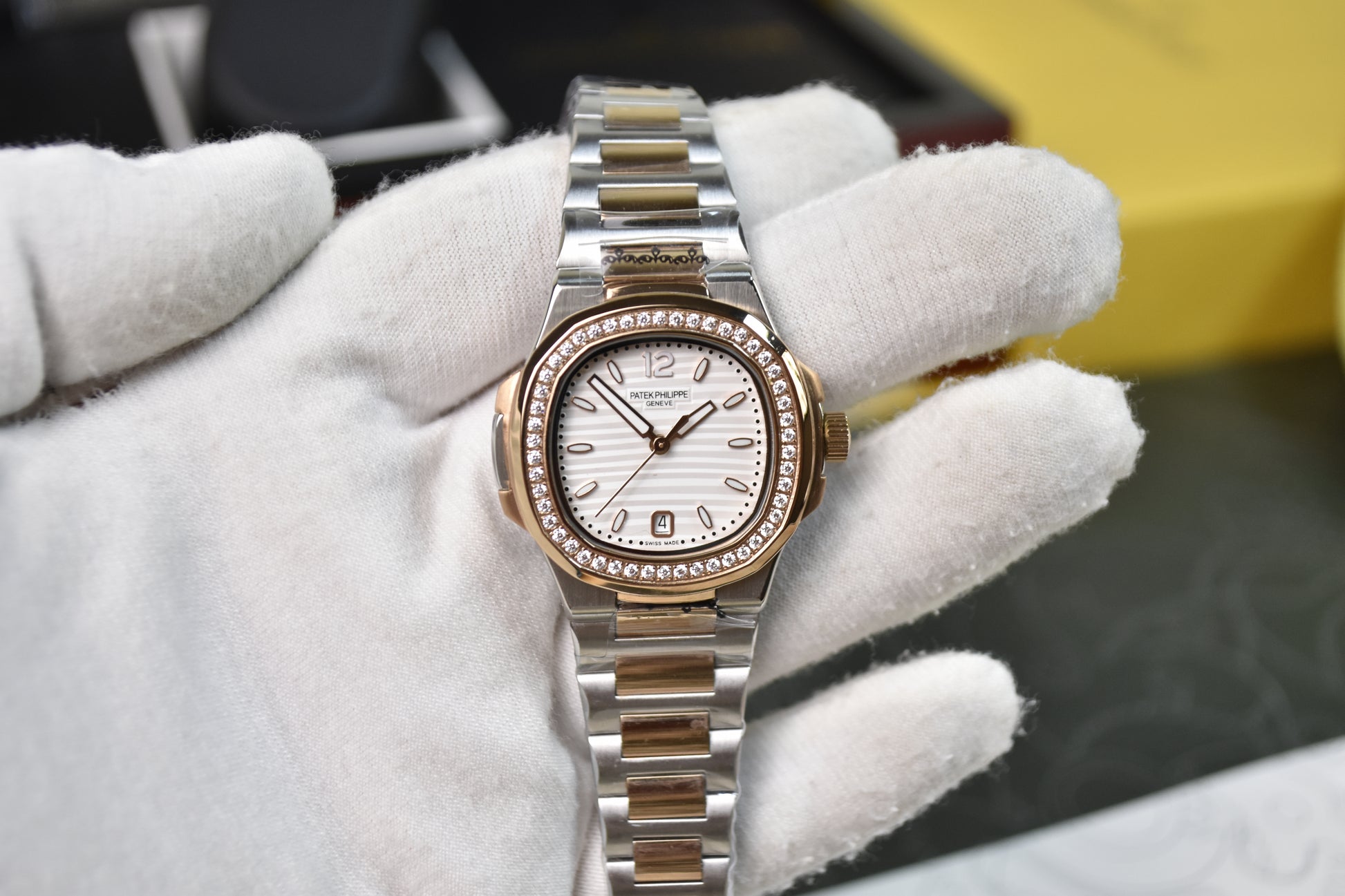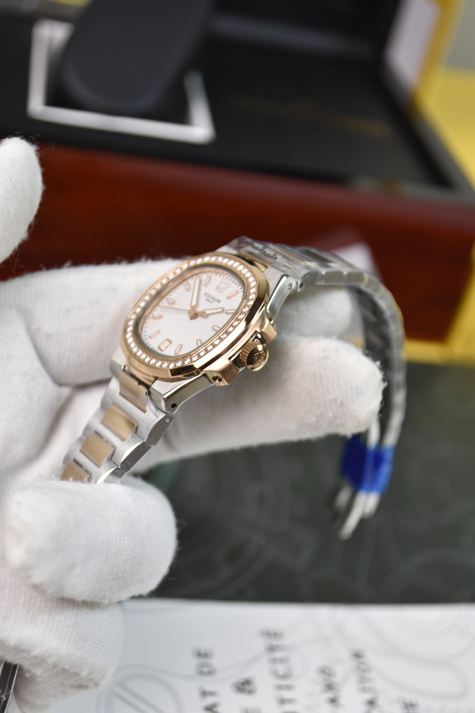 Ladies Nautilus Quartz Stones Two-Tone Rose White