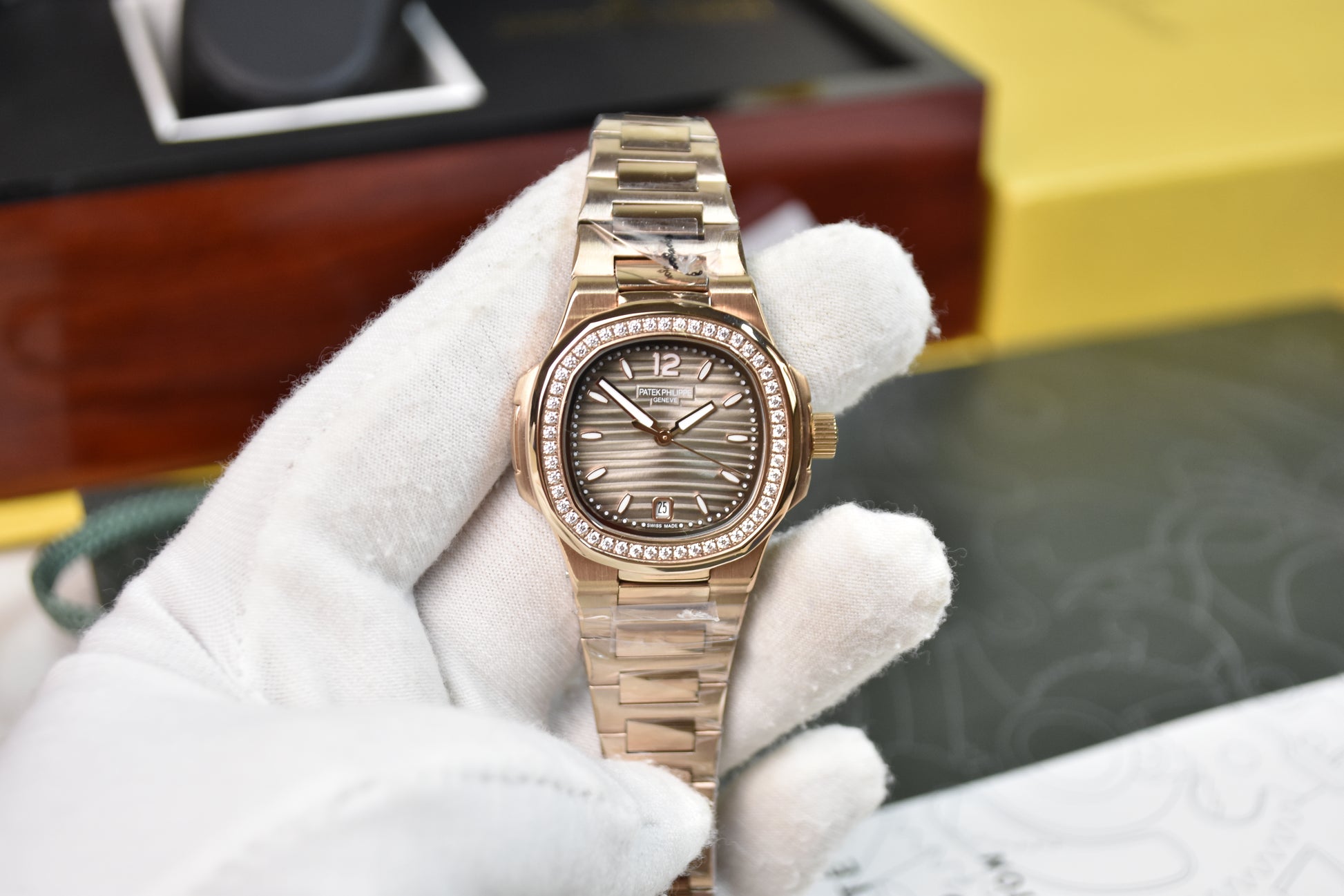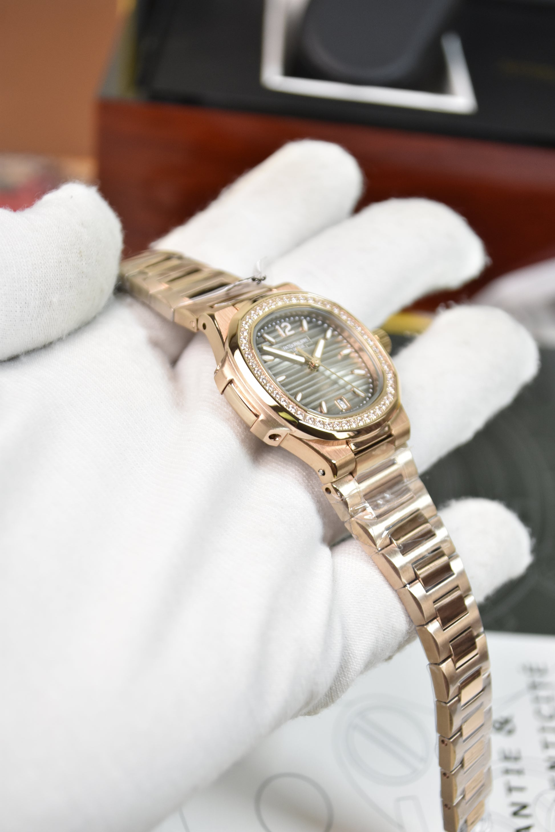 Ladies Nautilus Quartz Stones Rose Grey
