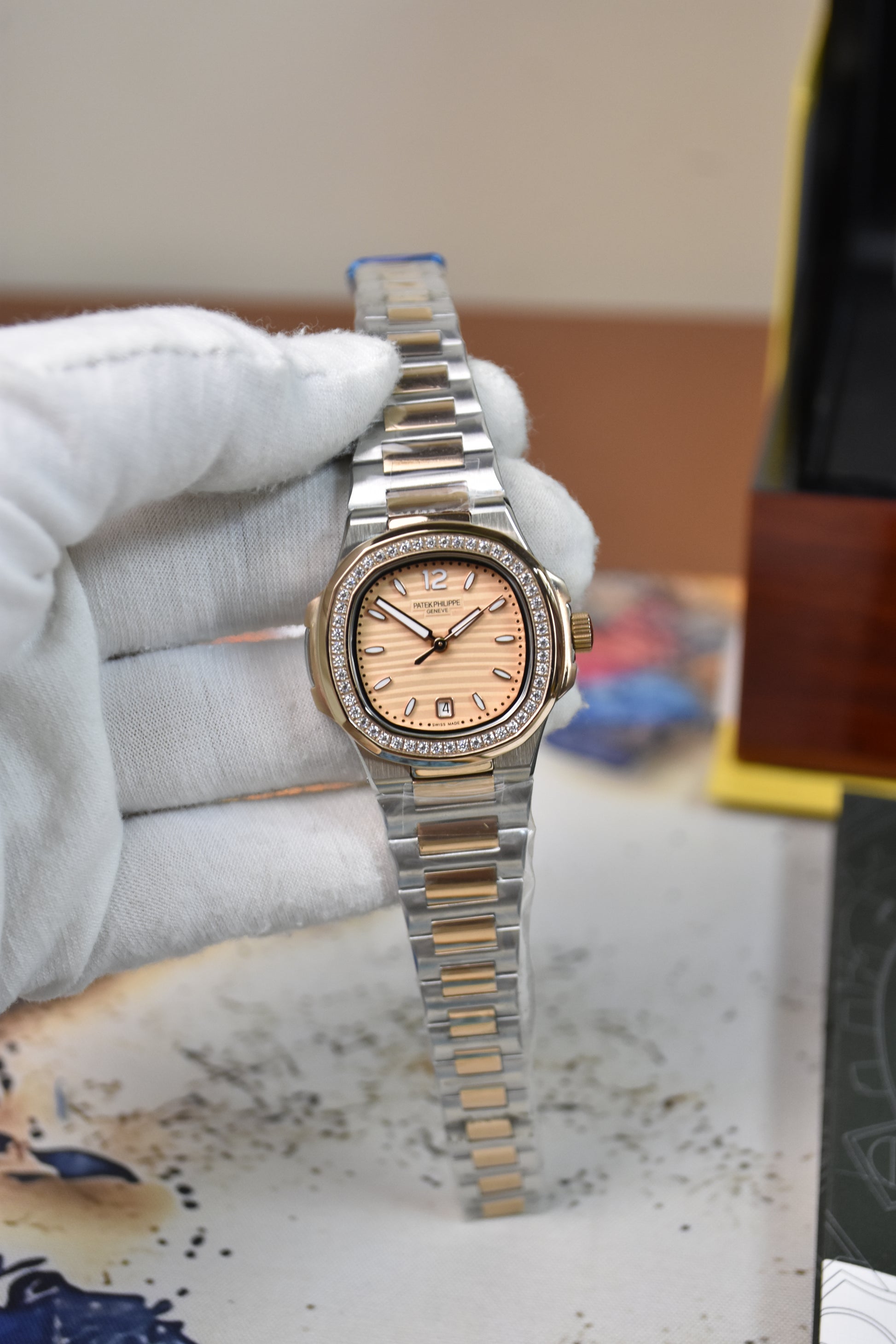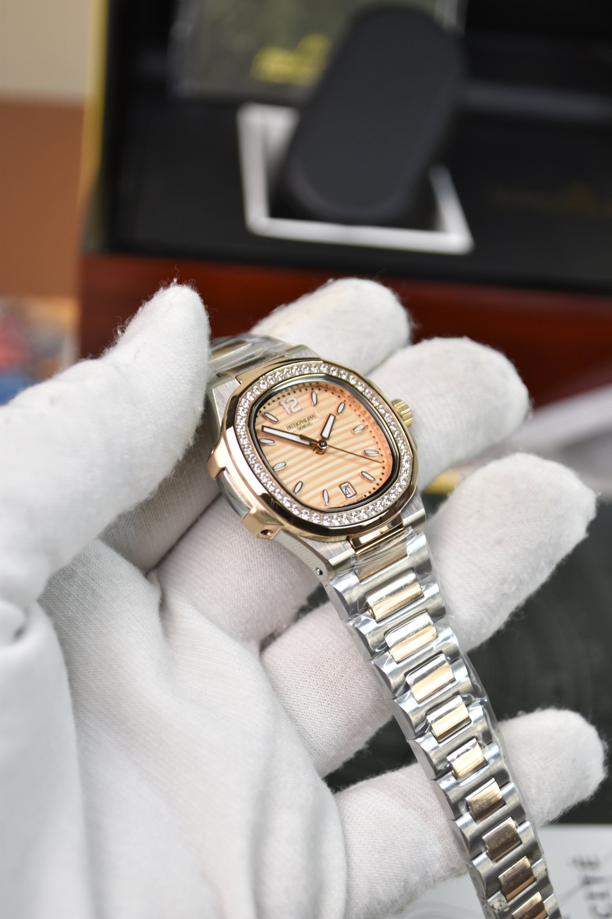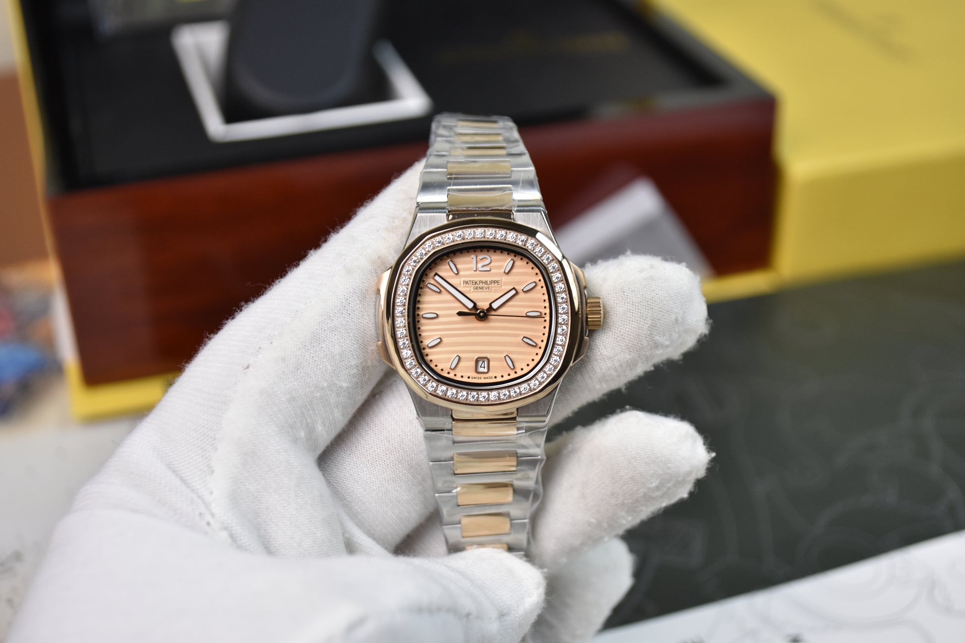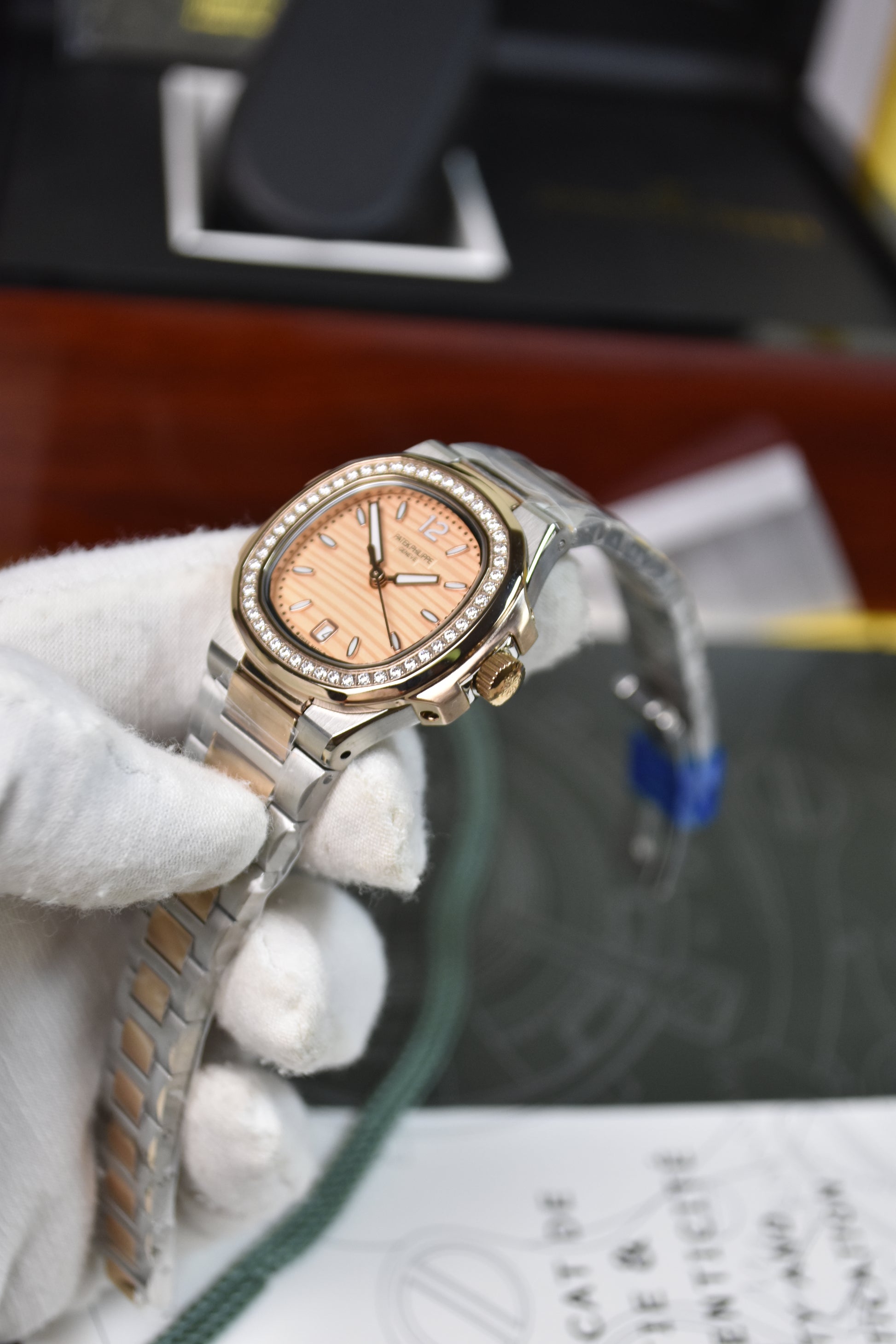 Ladies Nautilus Quartz Stones Two-Tone Rose Pink