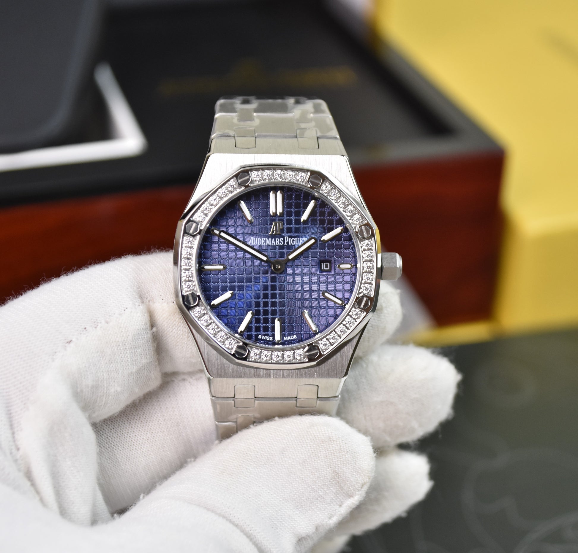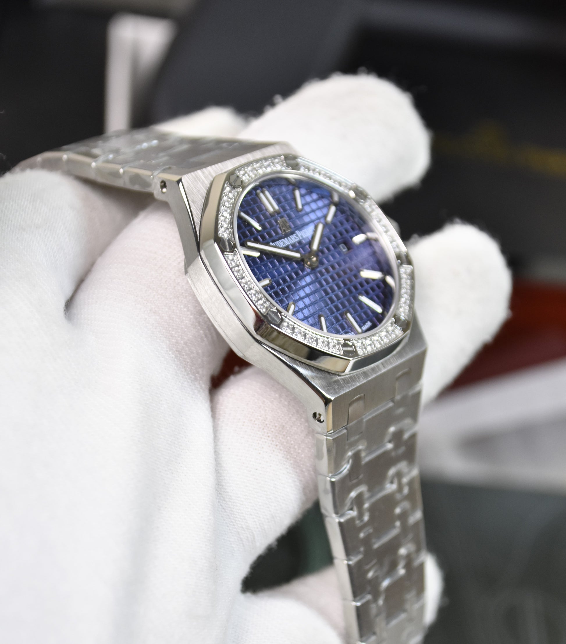 Ladies Royal oak Quartz Stones Silver Blue Dial