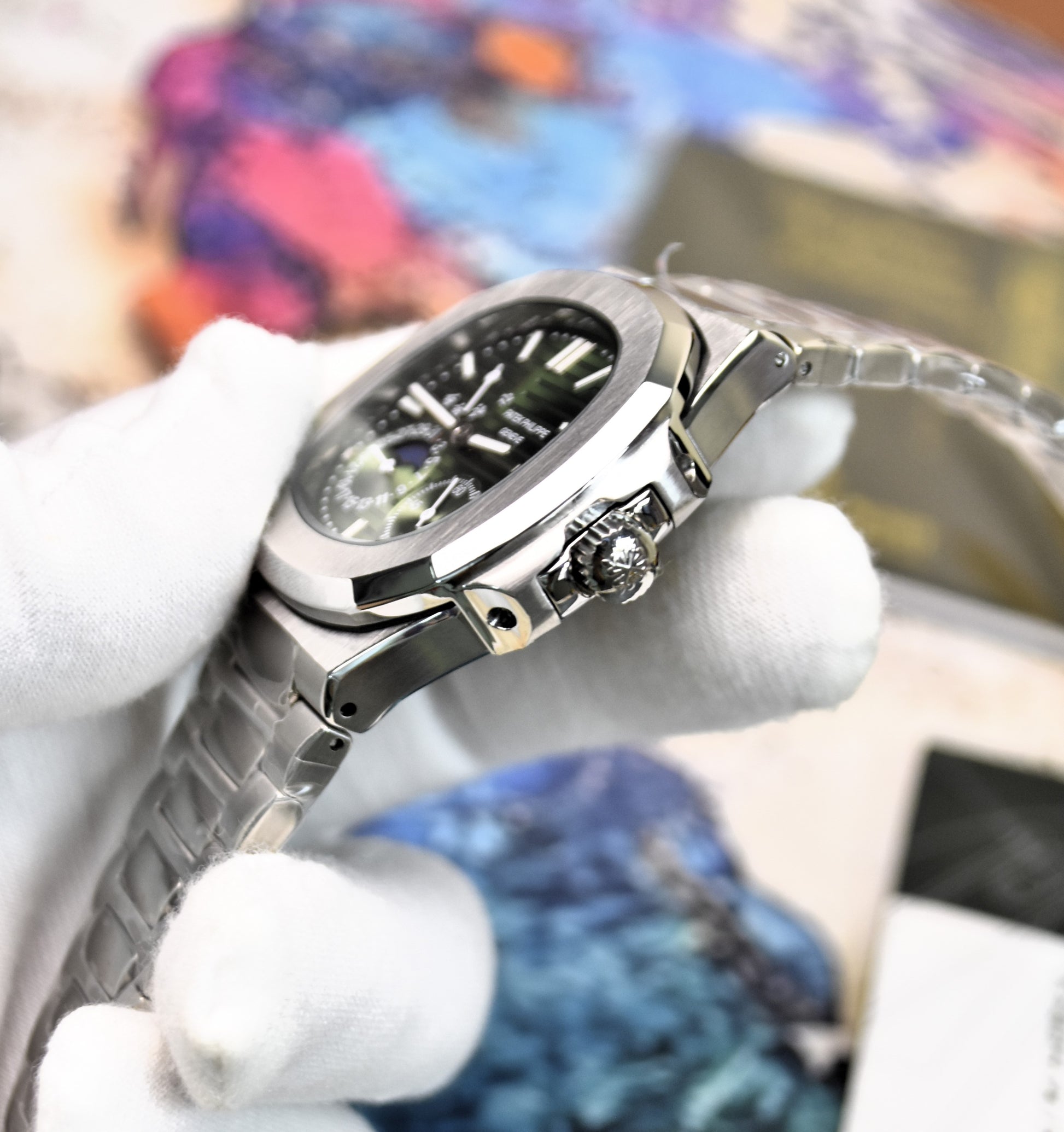 NAUTILIUS POWER RESERVE AUTO SILVER GREEN