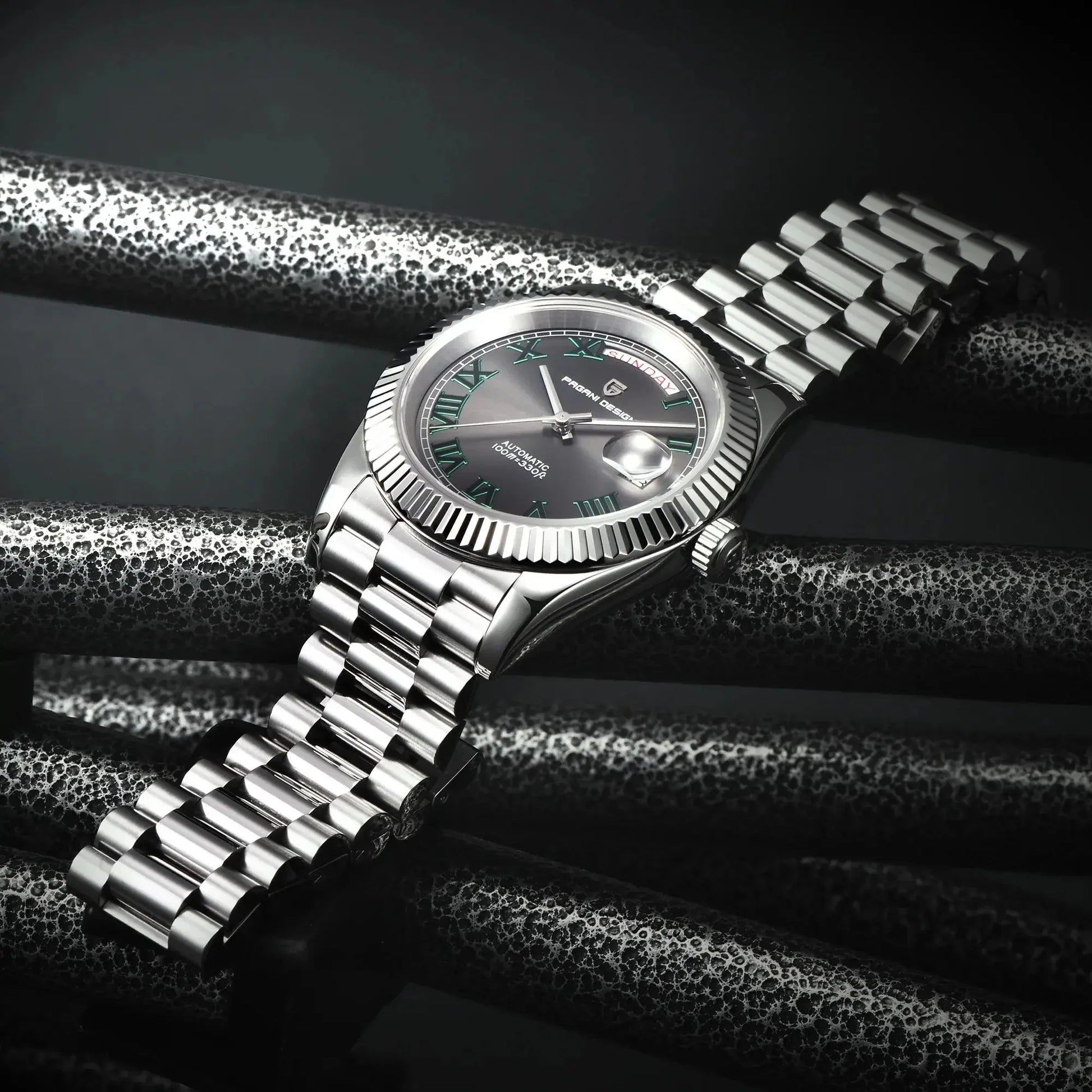 Material: stainless steel construction, Synthetic sapphire dial window(AR Coating), and top Japanese TMI NH36A automatic movement