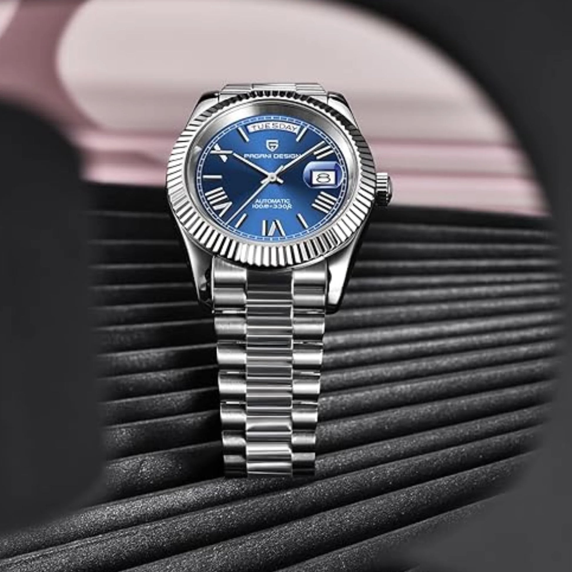Material: stainless steel construction, Synthetic sapphire dial window(AR Coating), and top Japanese TMI NH36A automatic movement