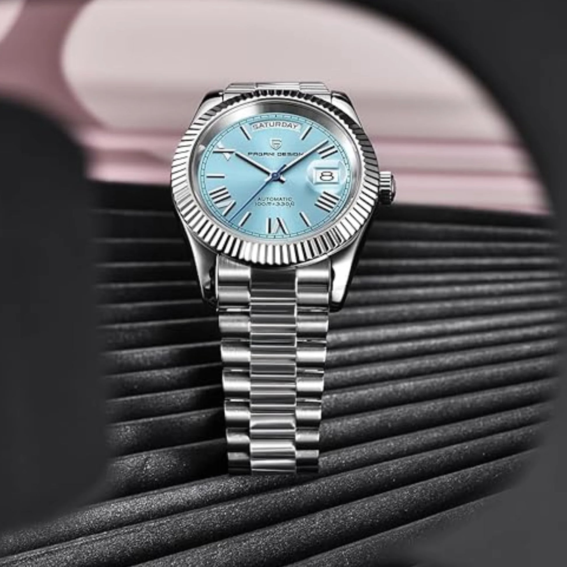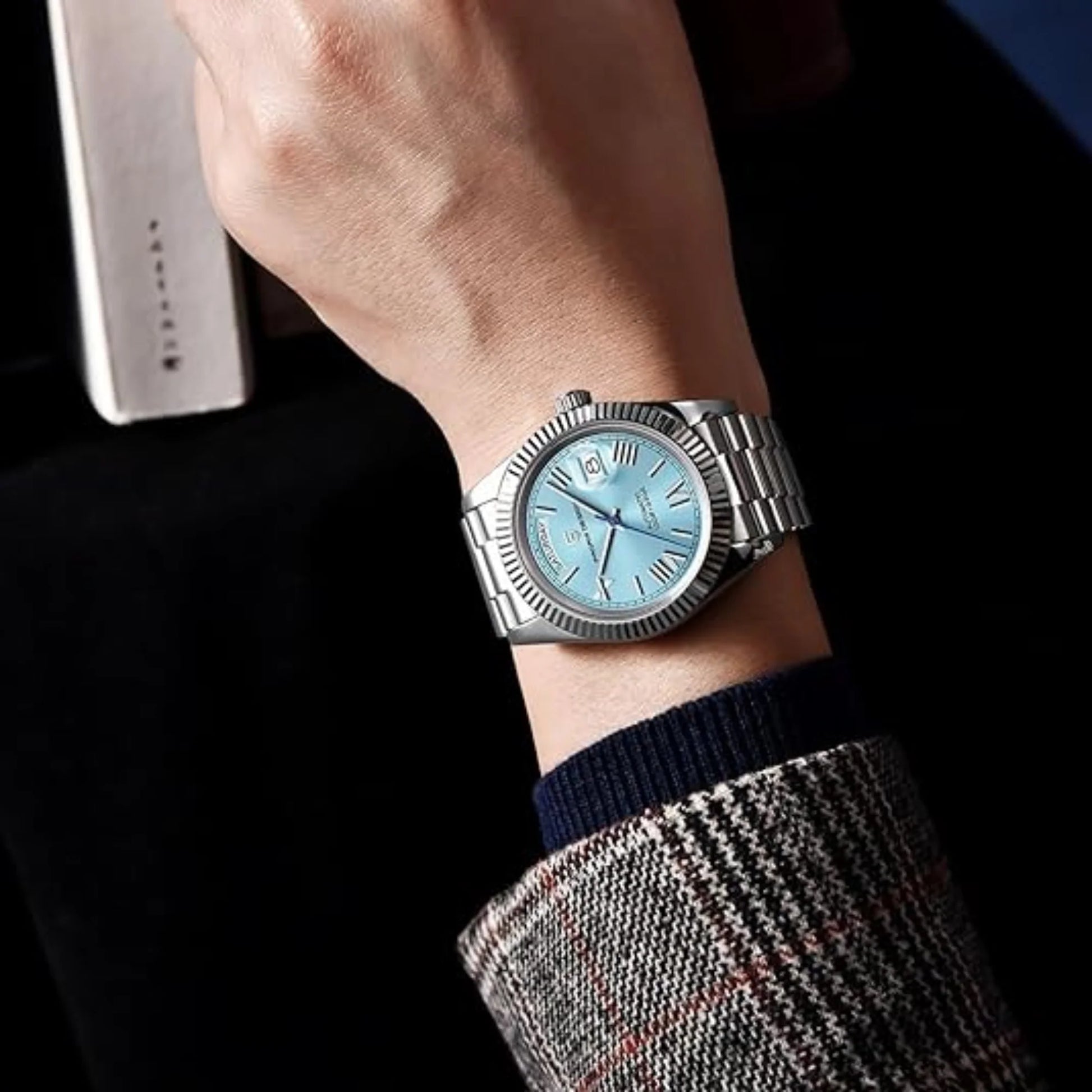 Material: stainless steel construction, Synthetic sapphire dial window(AR Coating), and top Japanese TMI NH36A automatic movement