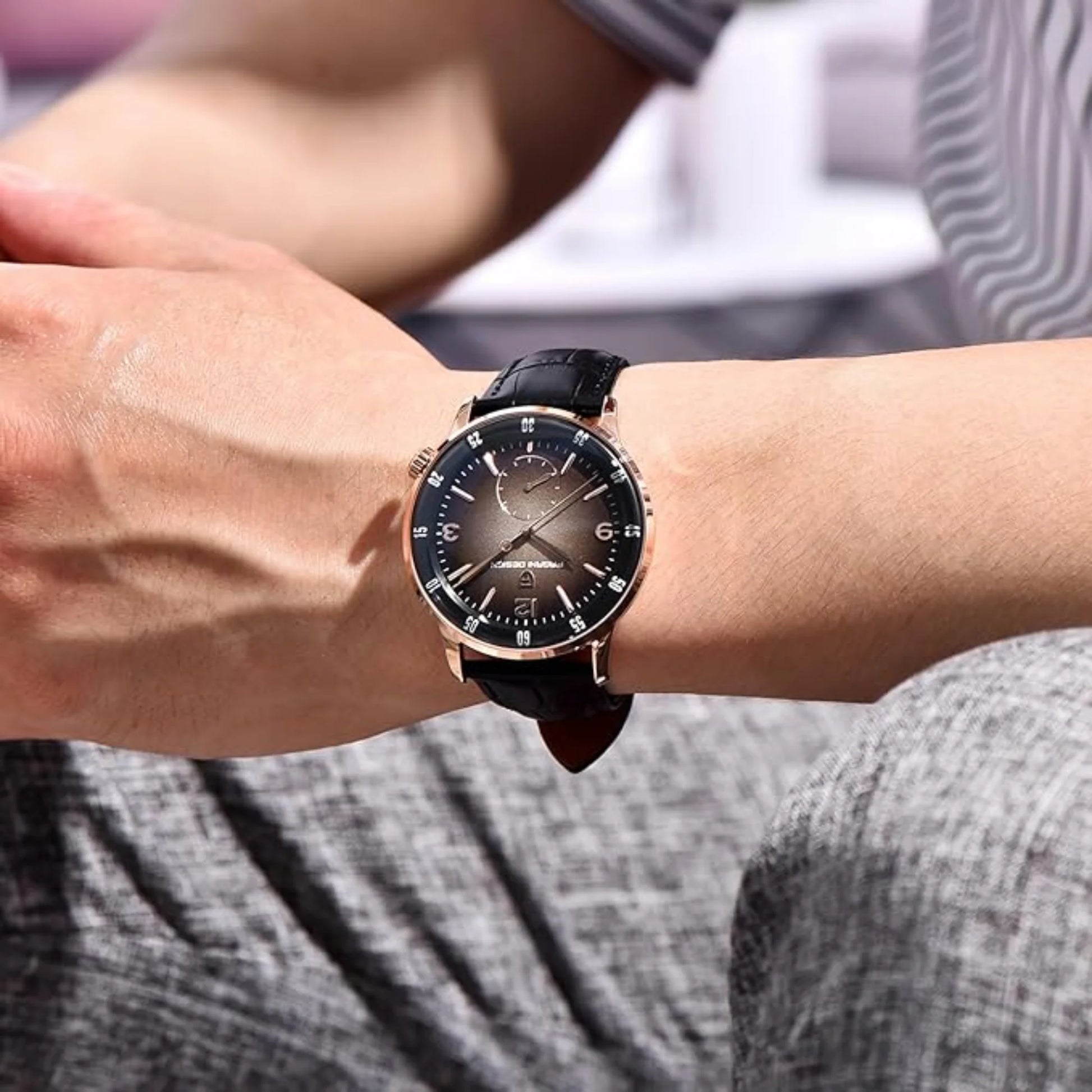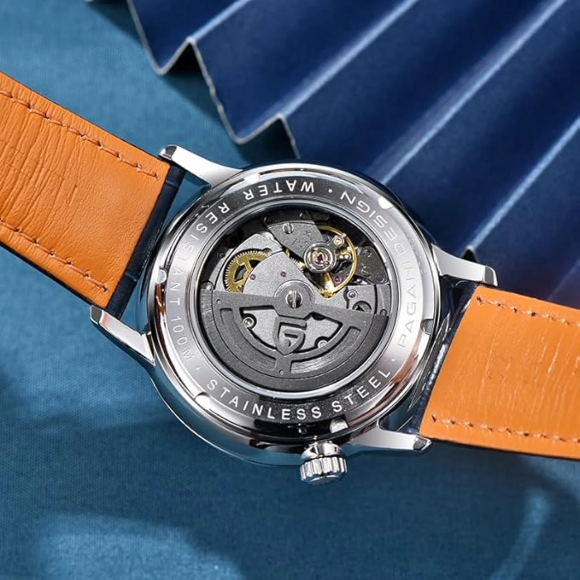 Material: stainless steel construction, Synthetic sapphire dial window, and top BY-9020 Automatic Mechanical Movement