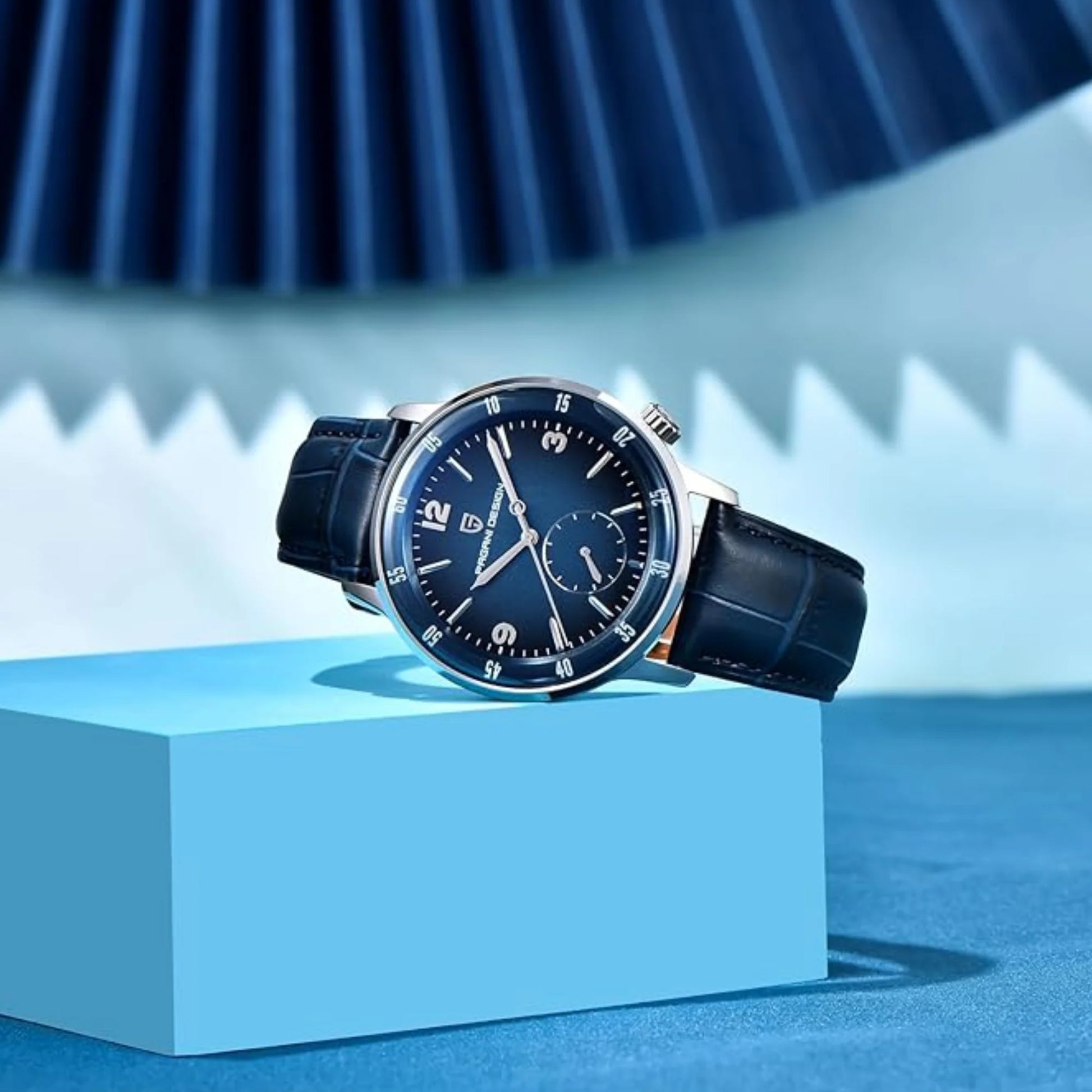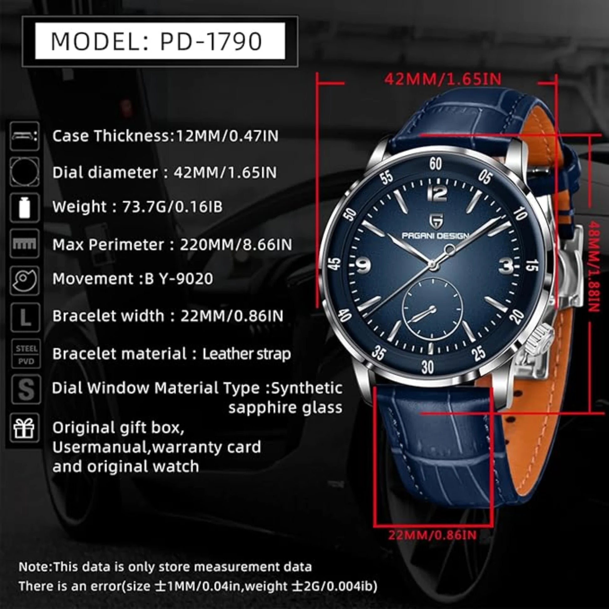 Material: stainless steel construction, Synthetic sapphire dial window, and top BY-9020 Automatic Mechanical Movement
