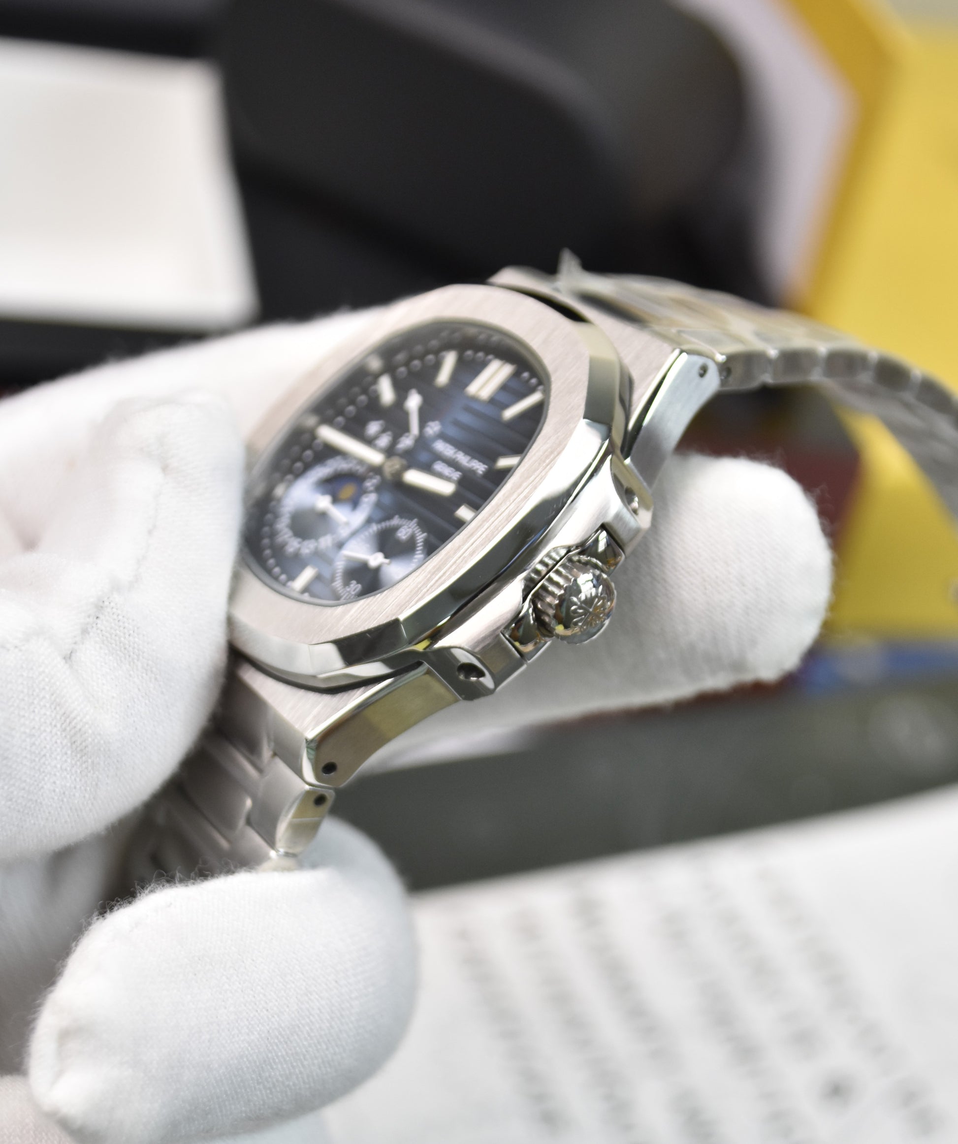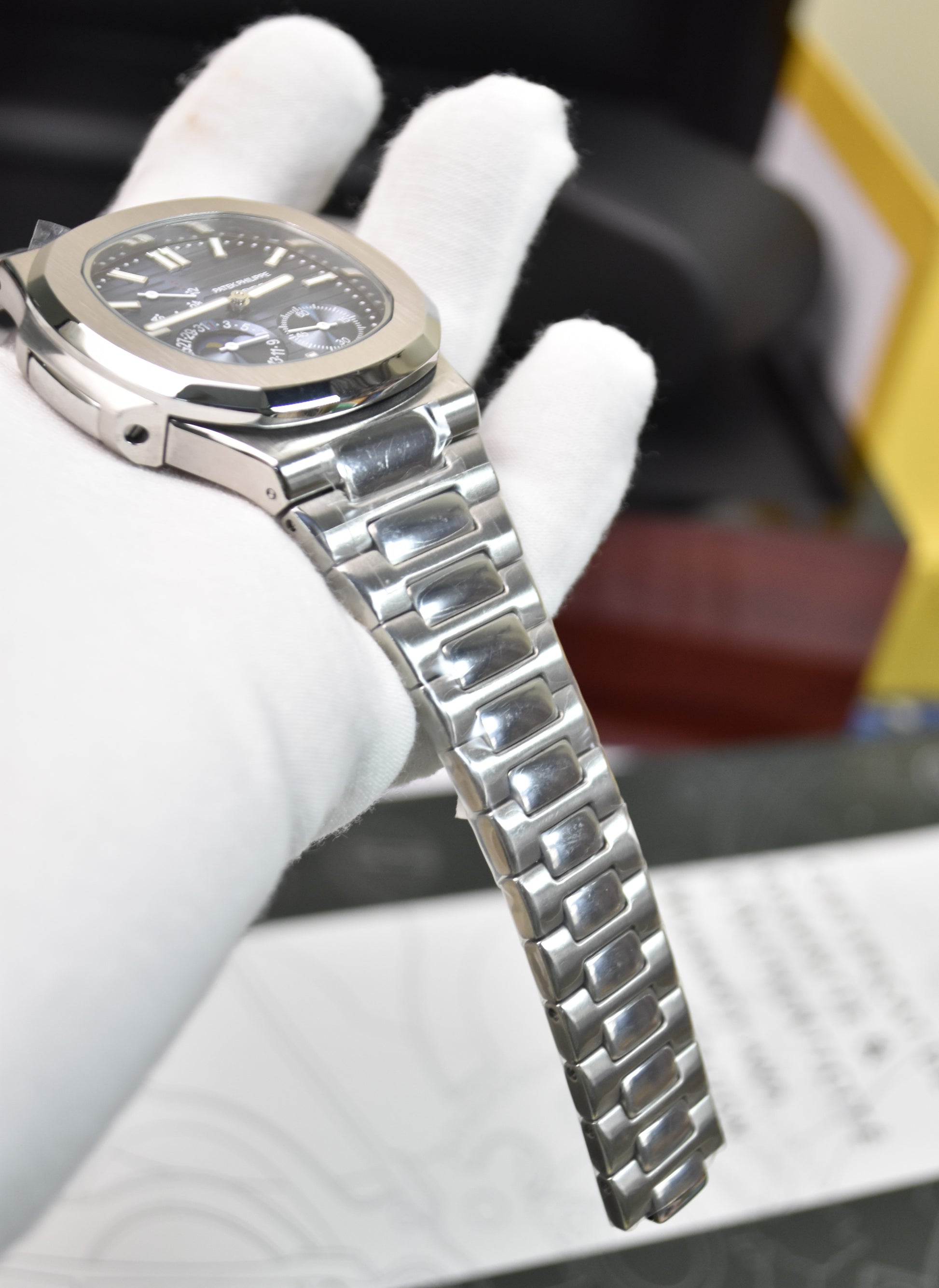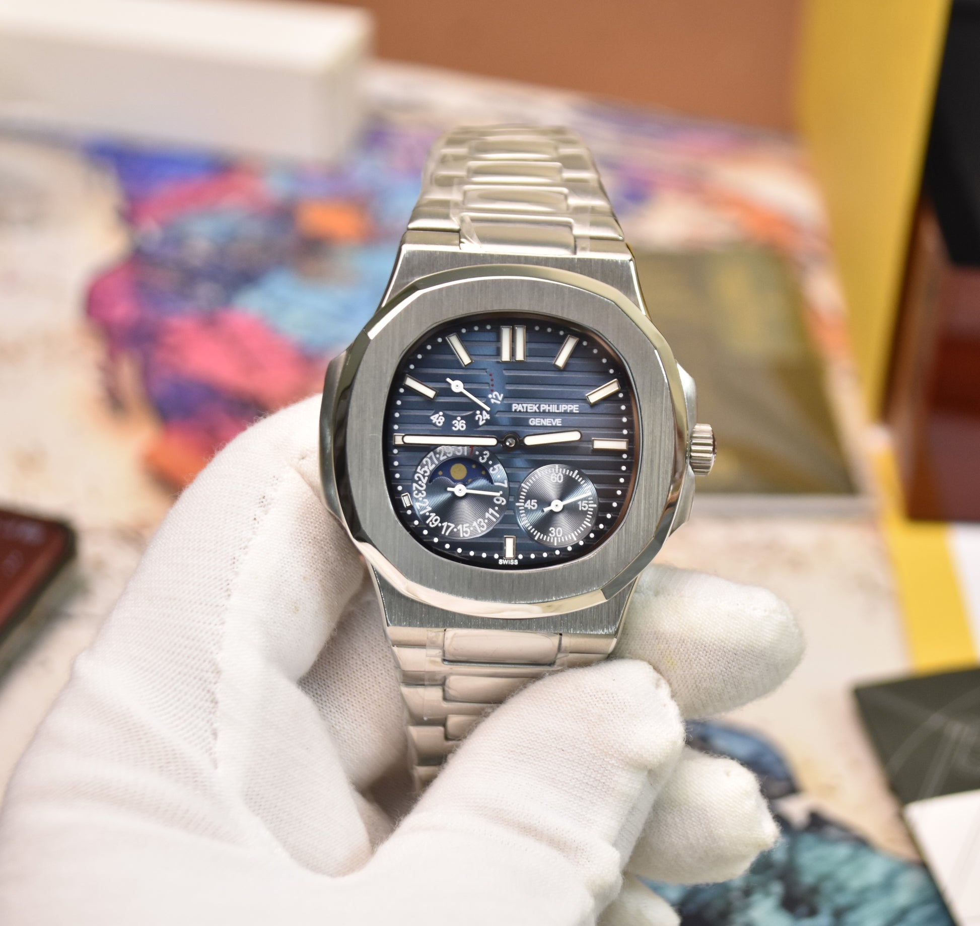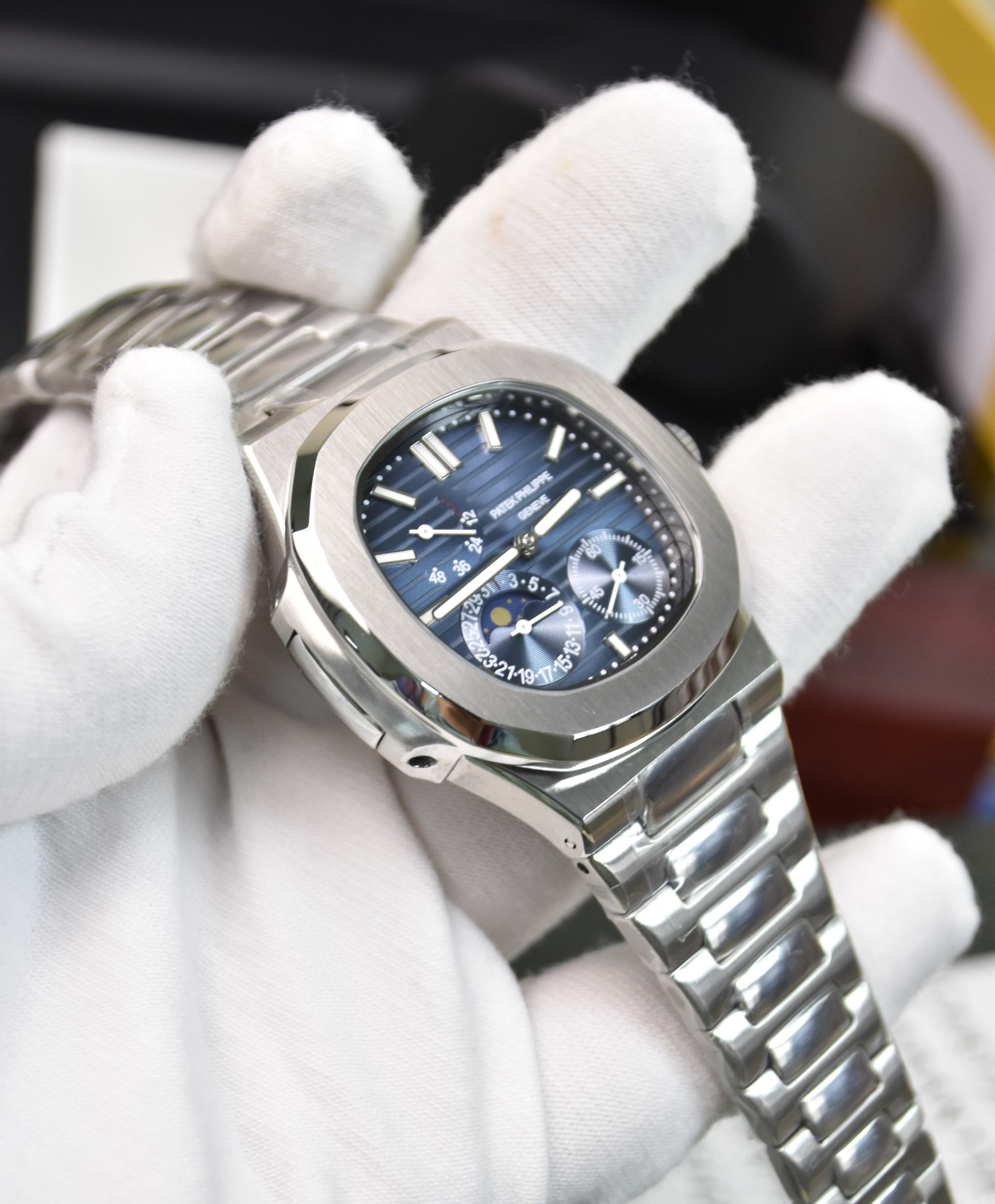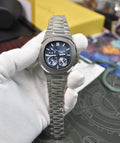 NAUTILIUS POWER RESERVE AUTO SILVER BLUE