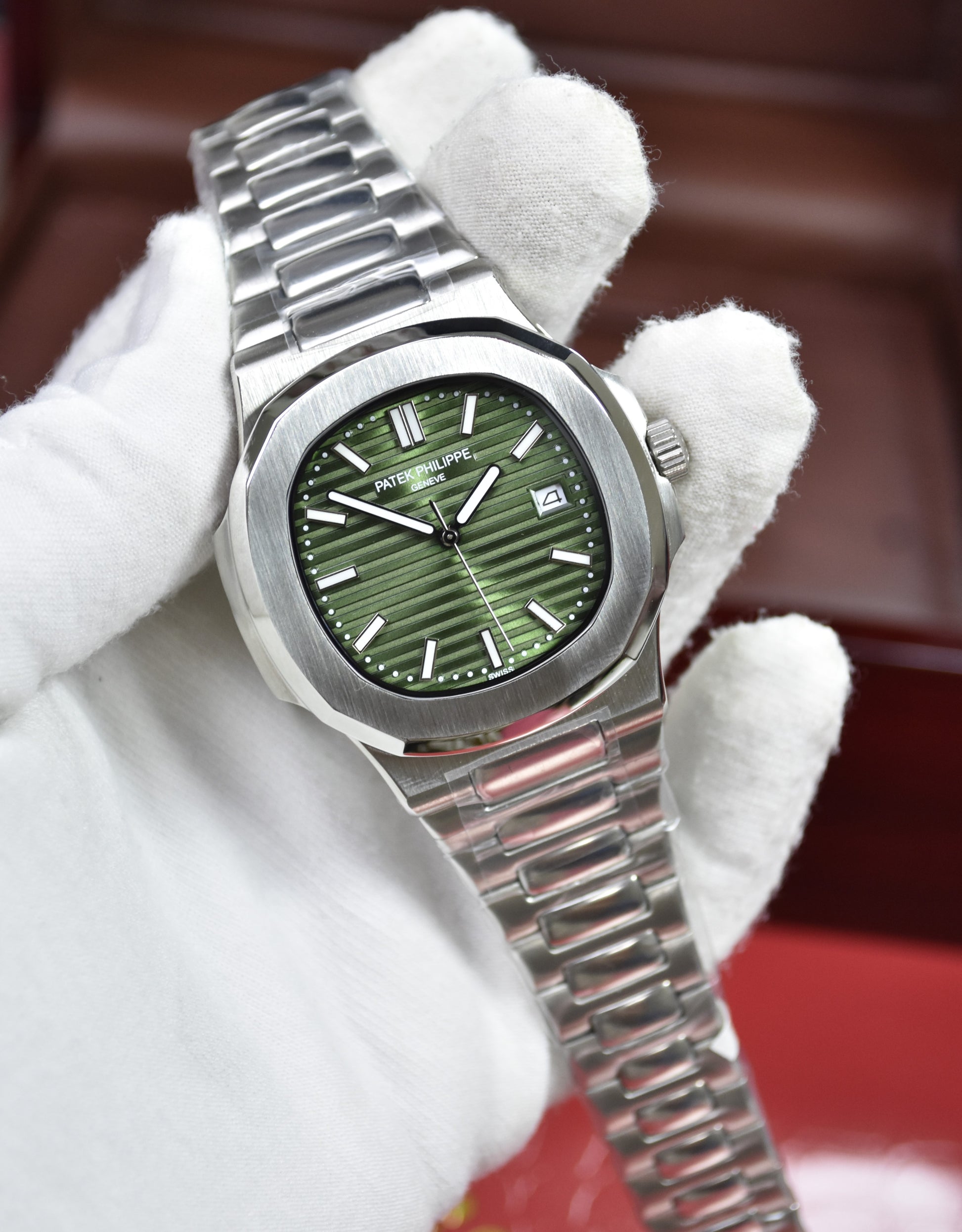 PP NAUTILUS AUTO CHAIN SILVER OLIVE GREEN (ZP)
