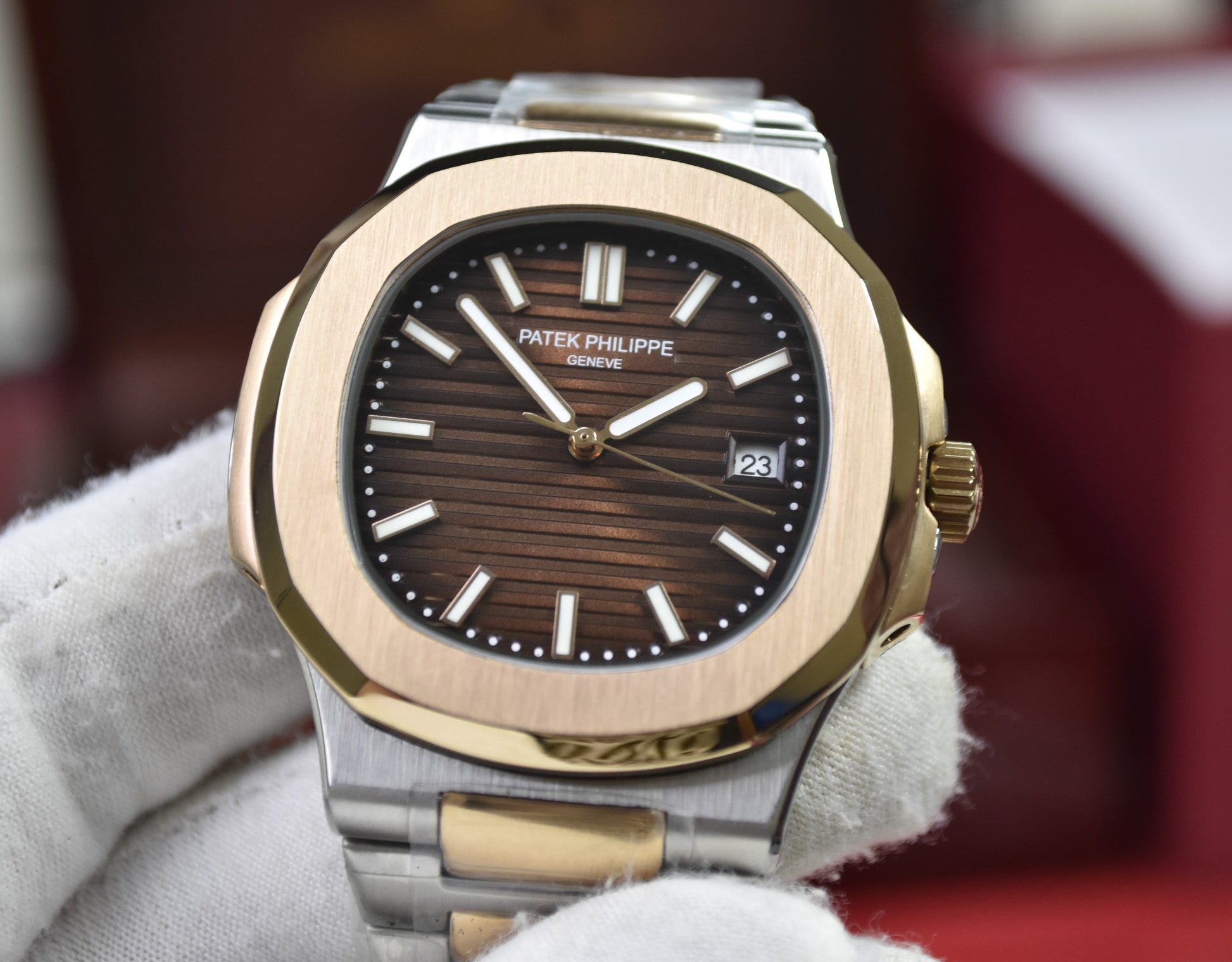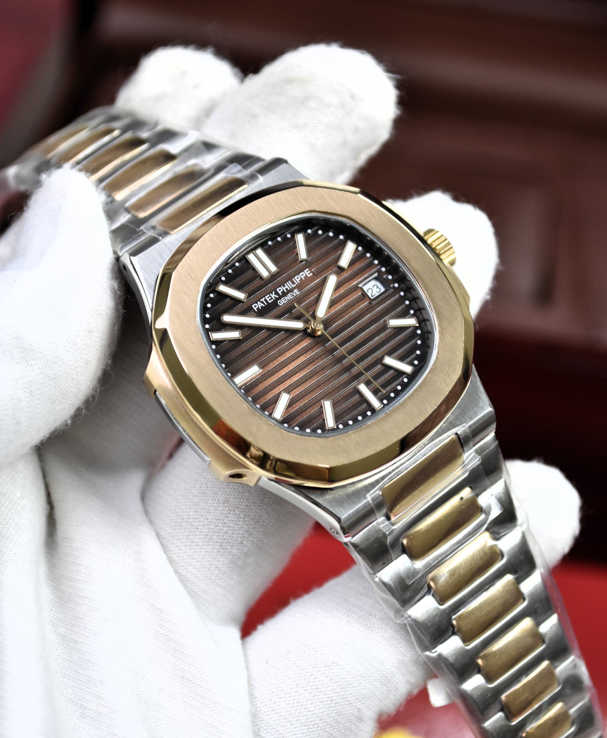 PP NAUTILUS AUTO CHAIN TWOTONE ROSE BROWN (ZP)