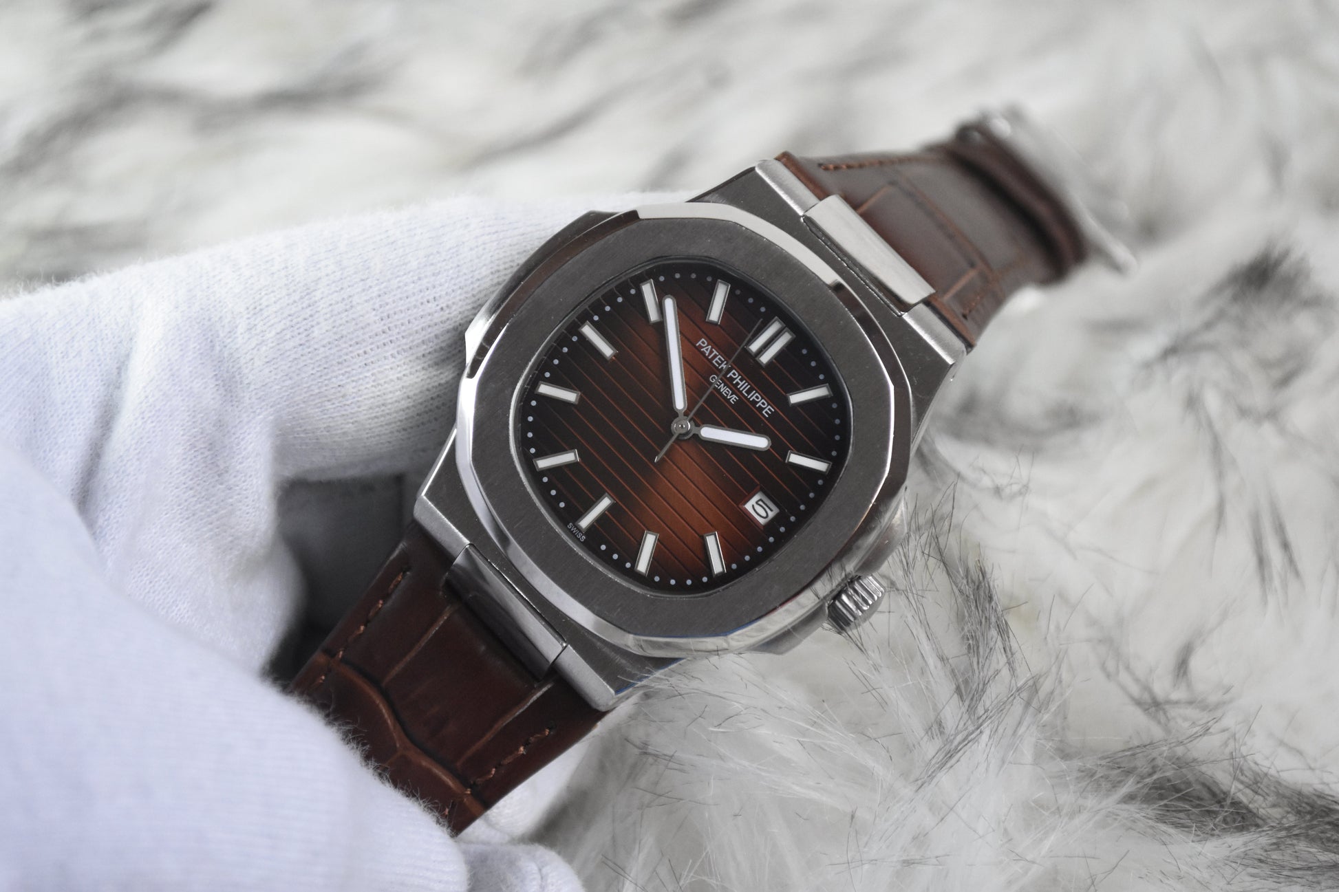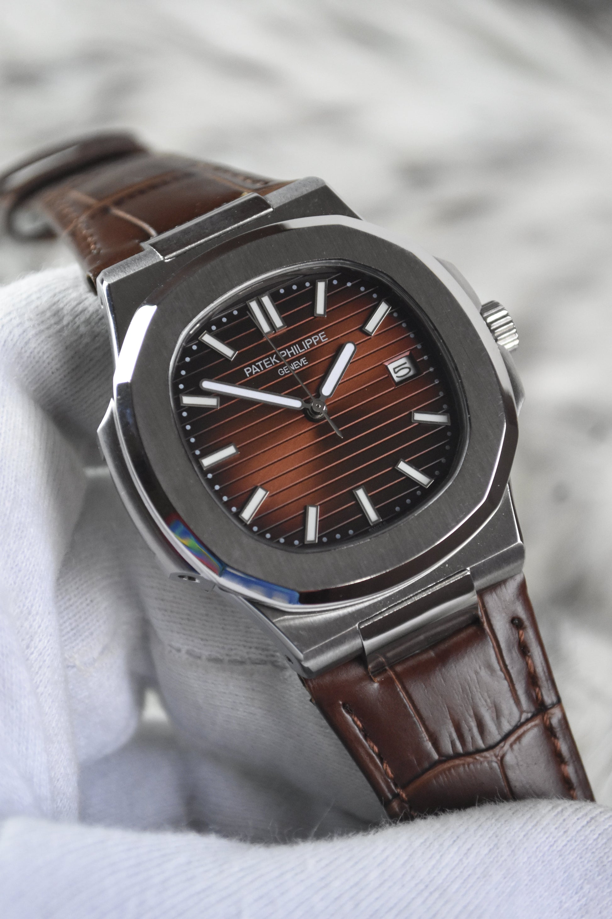 PP NAUTILUS AUTO STRAP SILVER BROWN (ZP)