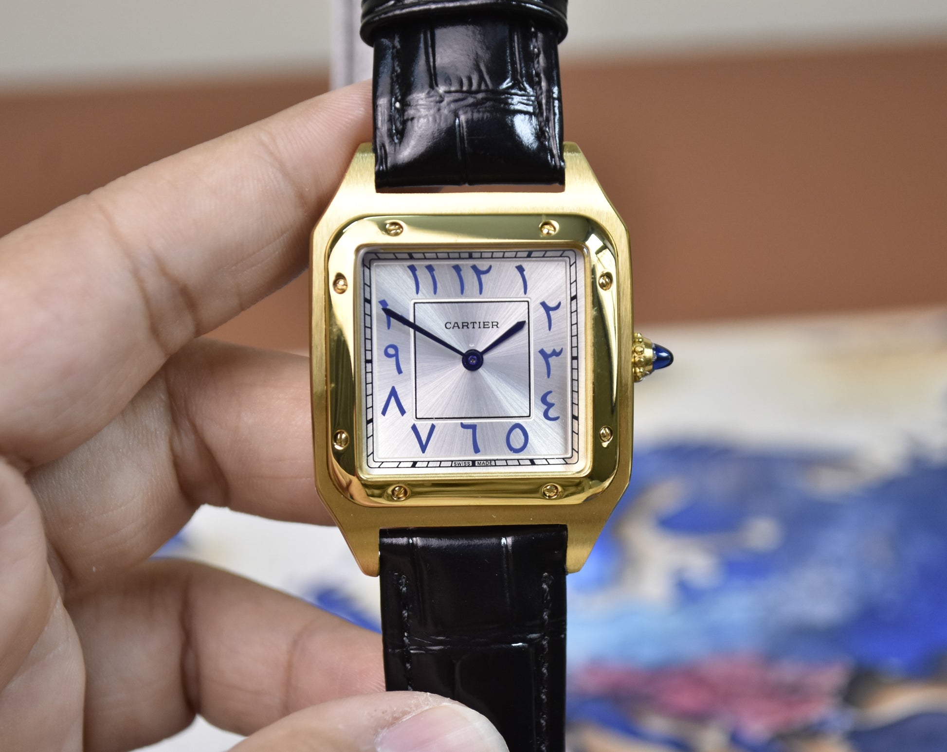 Santos Dumont XL Quartz Arabic Black Gold White Dial