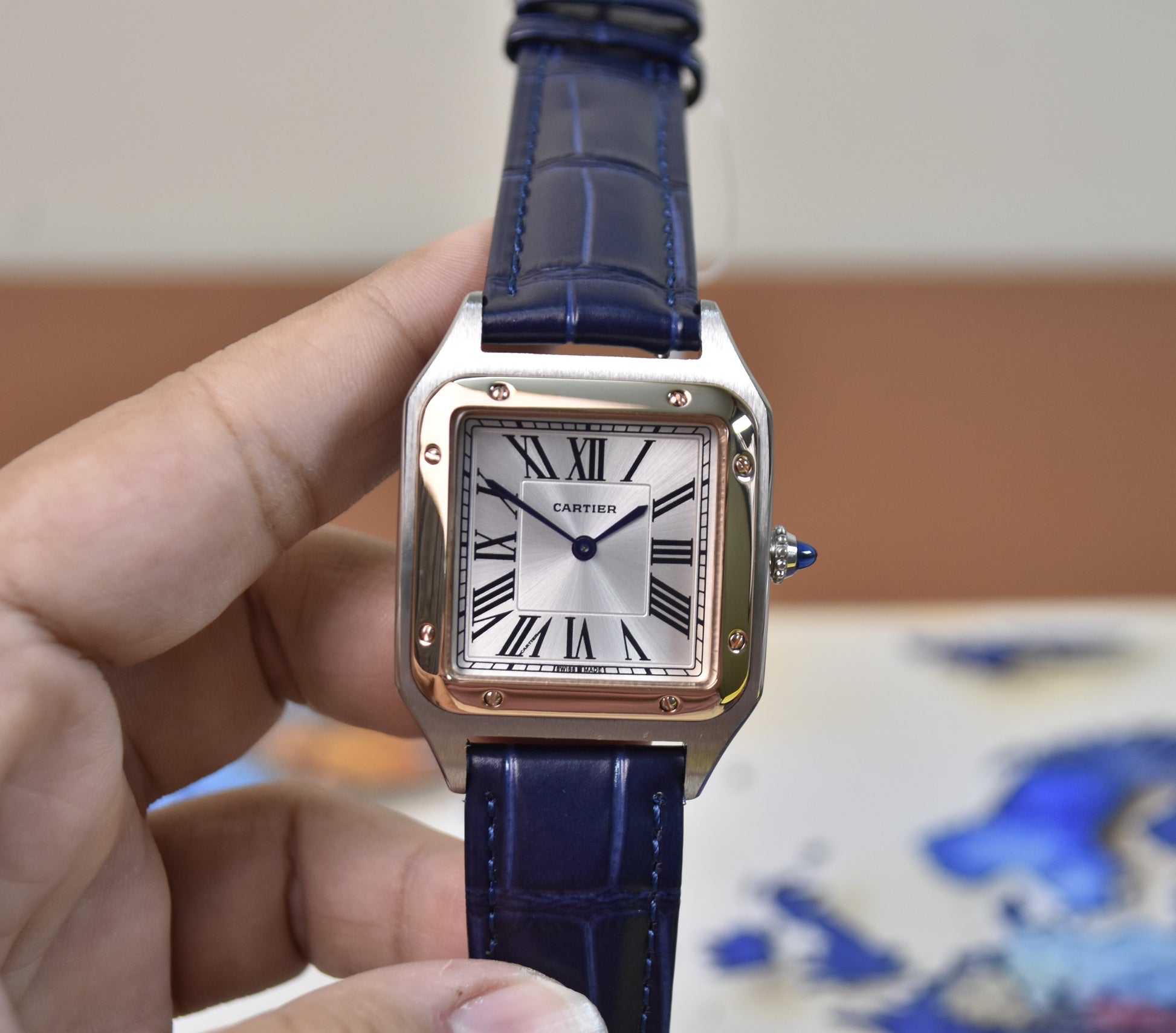 Santos Dumont XL Quartz Silver Rose White Dial