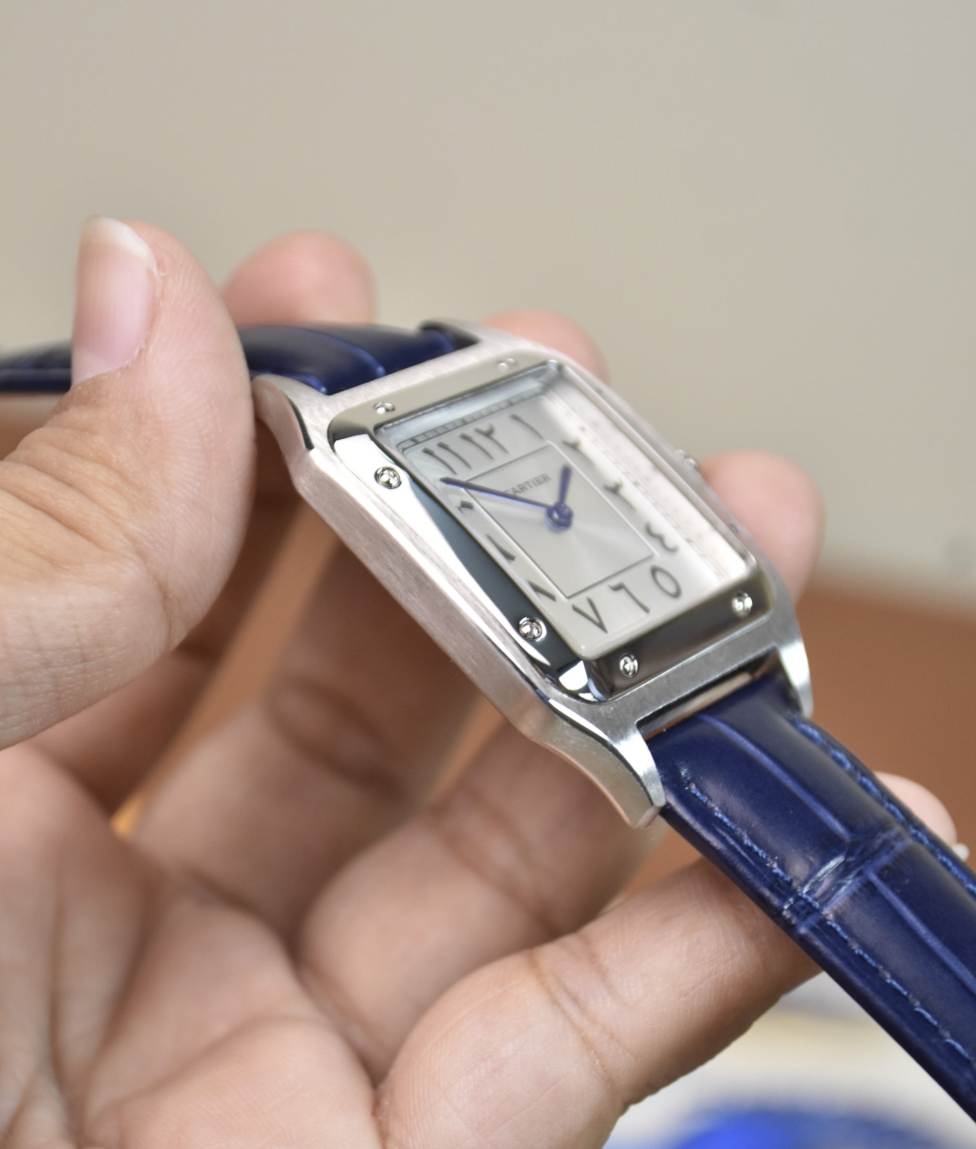 Santos Dumont XL Quartz Arabic Blue Silver White Dial