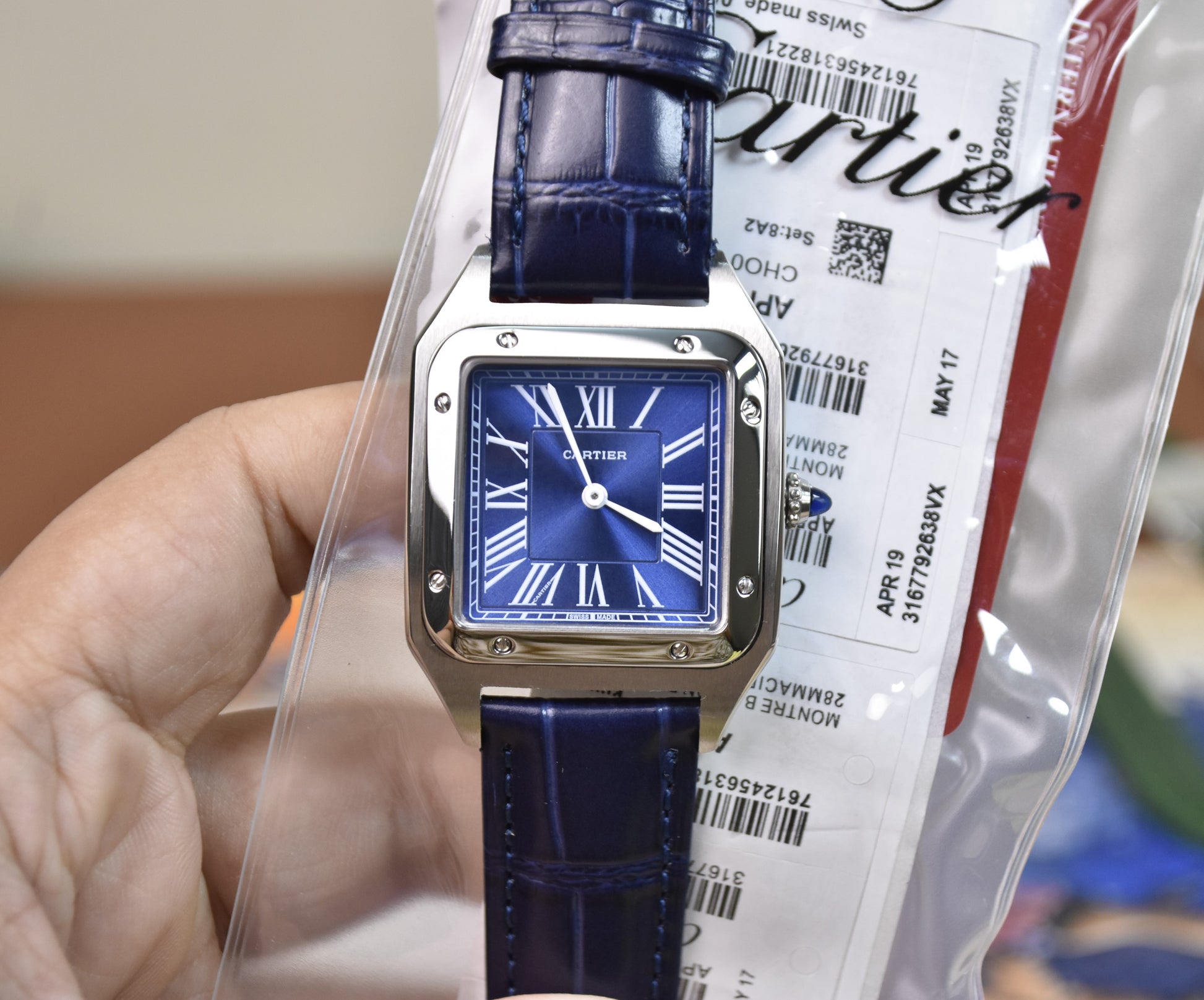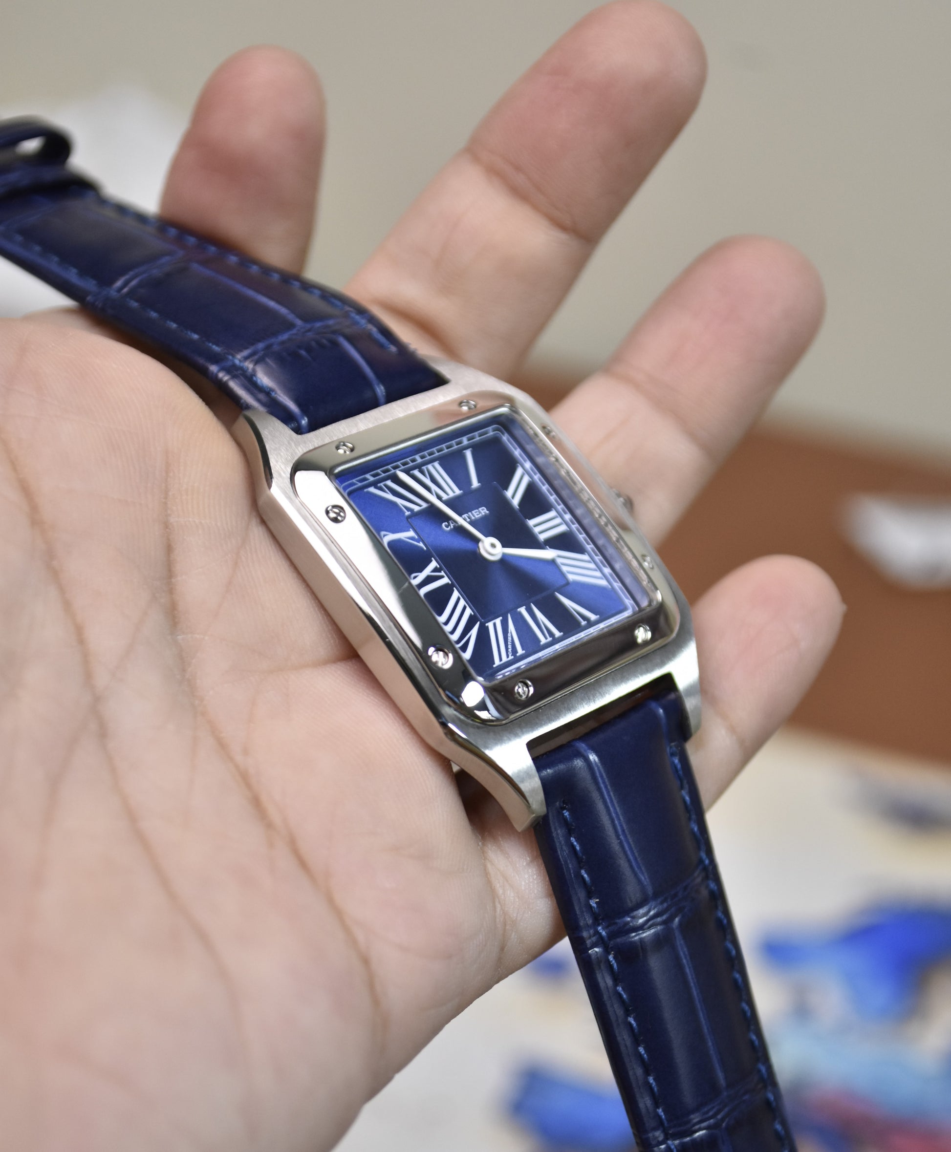 Santos Dumont XL Quartz Blue Silver Blue Dial