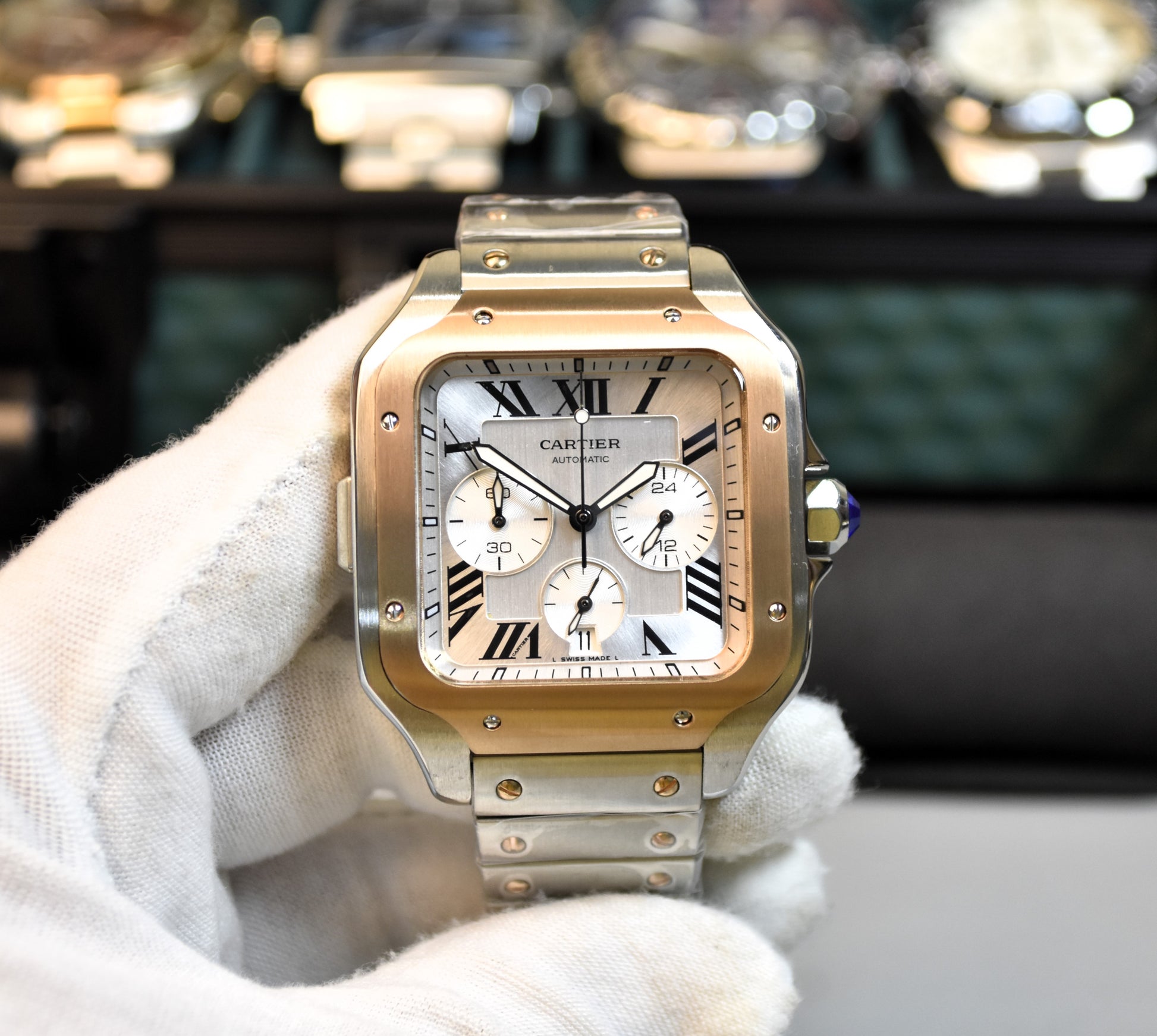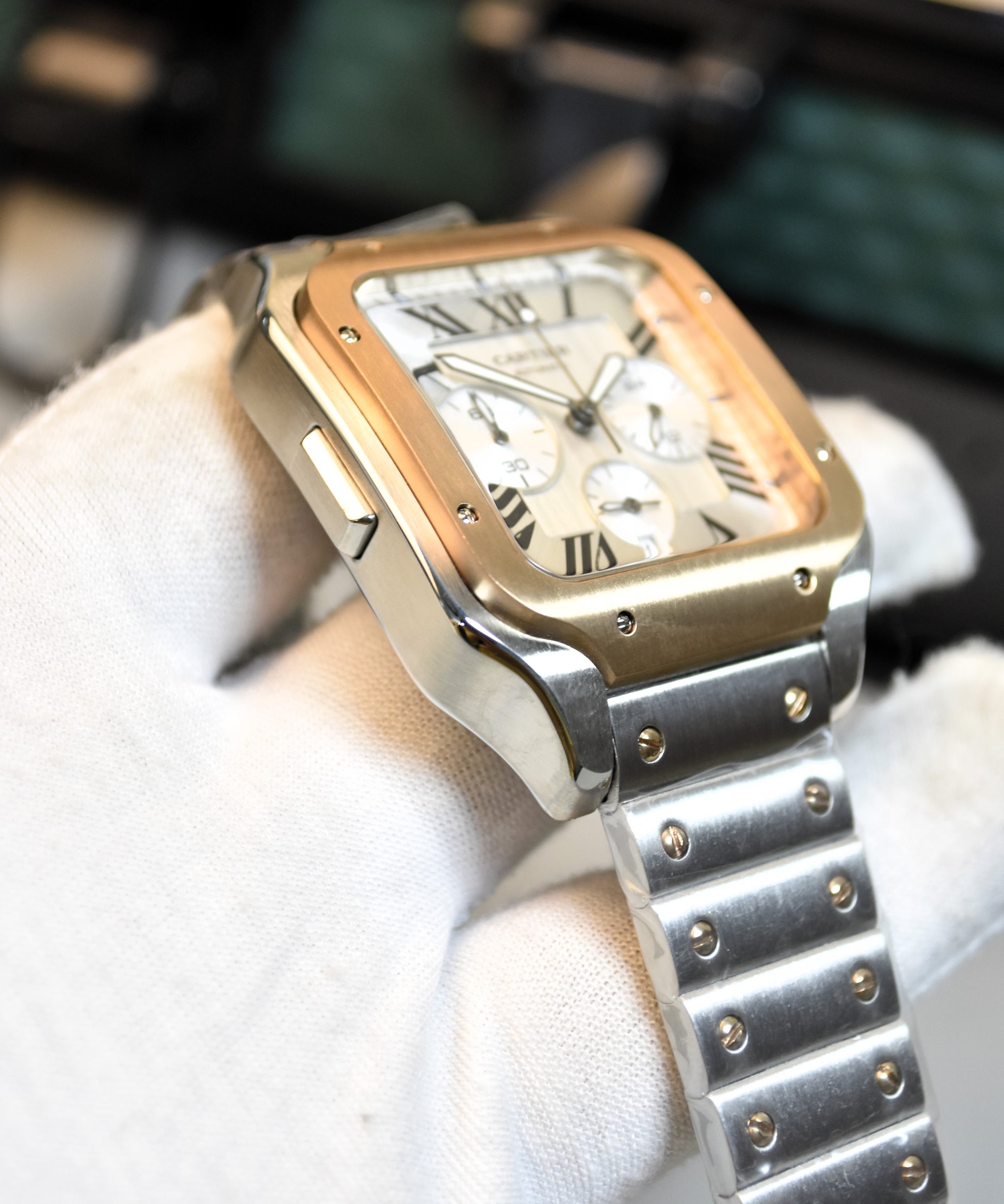 Santos Quartz Chronograph Two-tone Rose White Dail