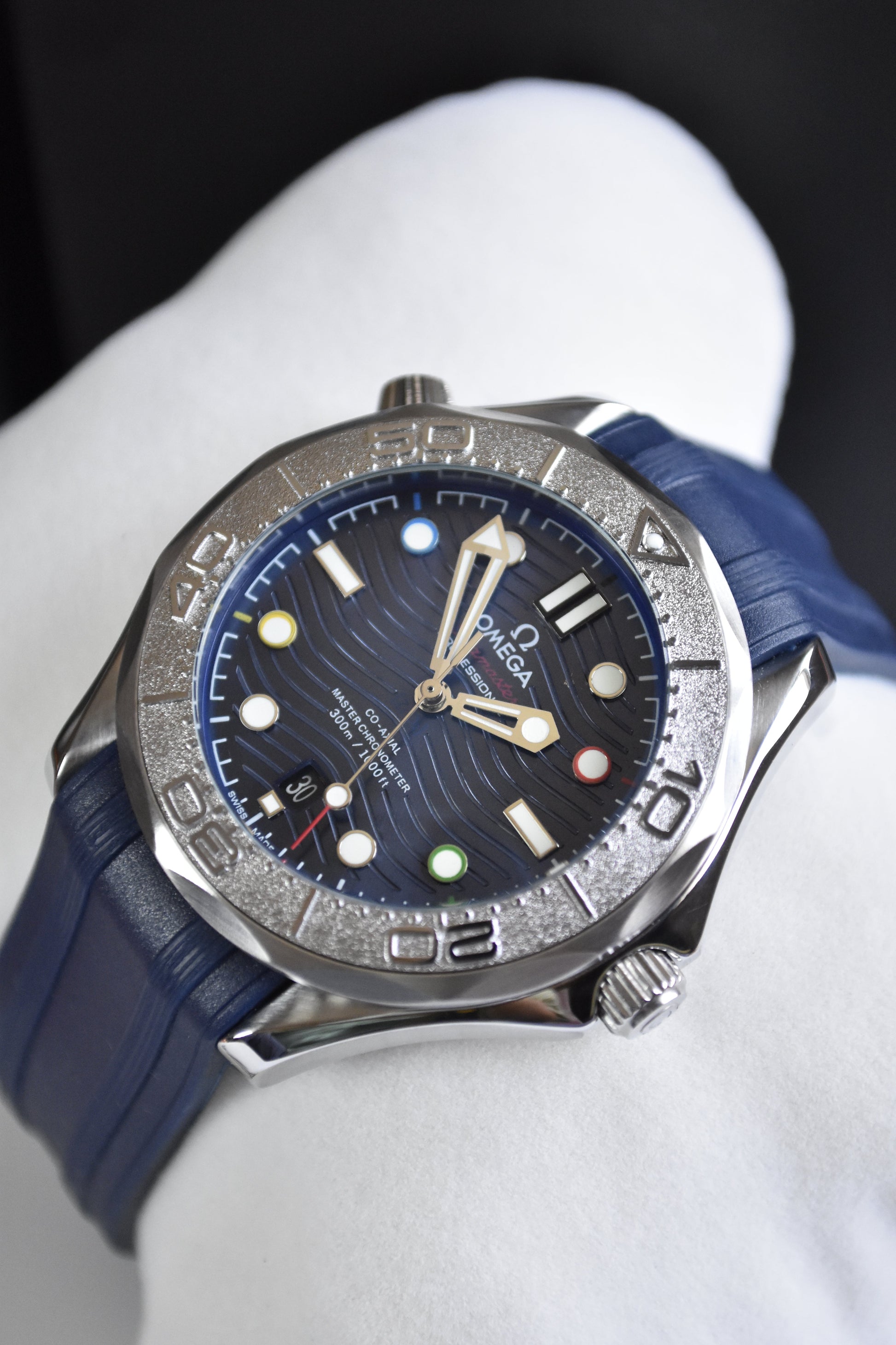 SEAMASTER AUTO STRAP SILVER BLUE DAIL