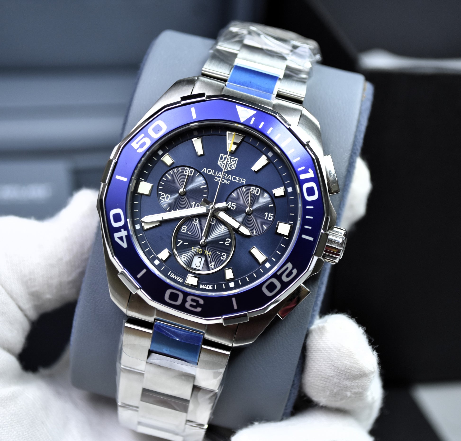 Tag Heuer Aquaracer Men’s Quart Silver Stainless Steel Blue Dial 43mm Watch