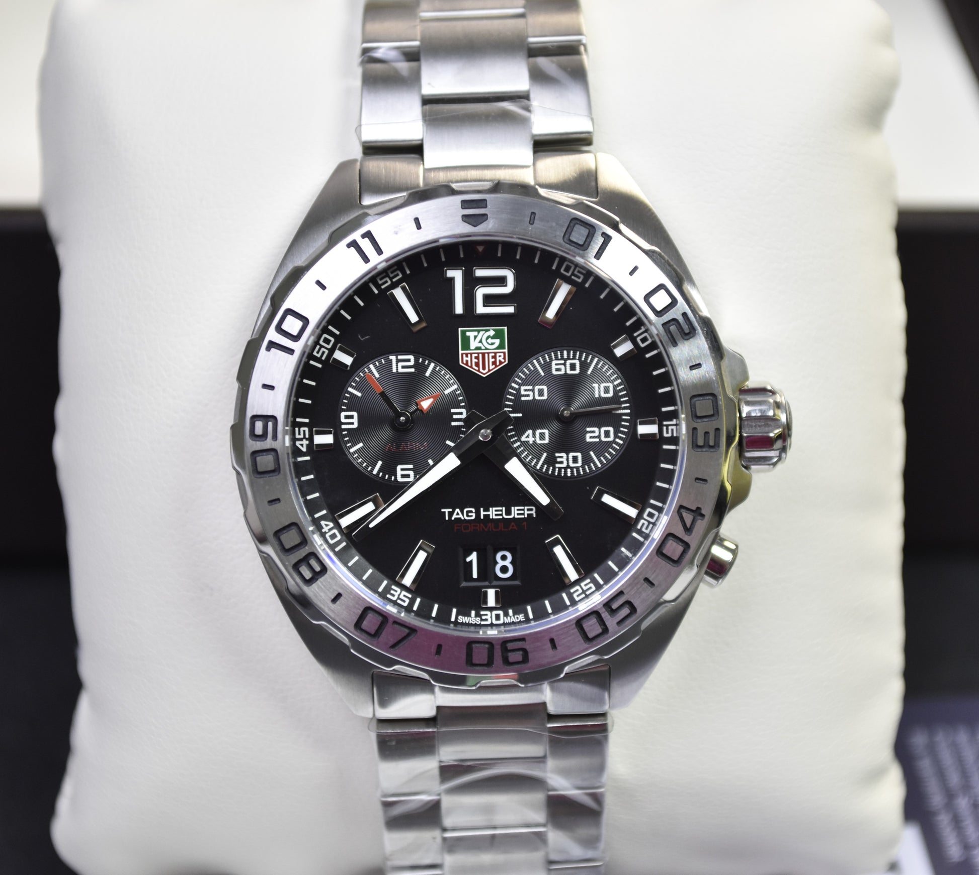 Tag Heuer Formula 1 Men’s Quartz Silver Stainless Steel Black Dial 41mm Sports Alarm Watch