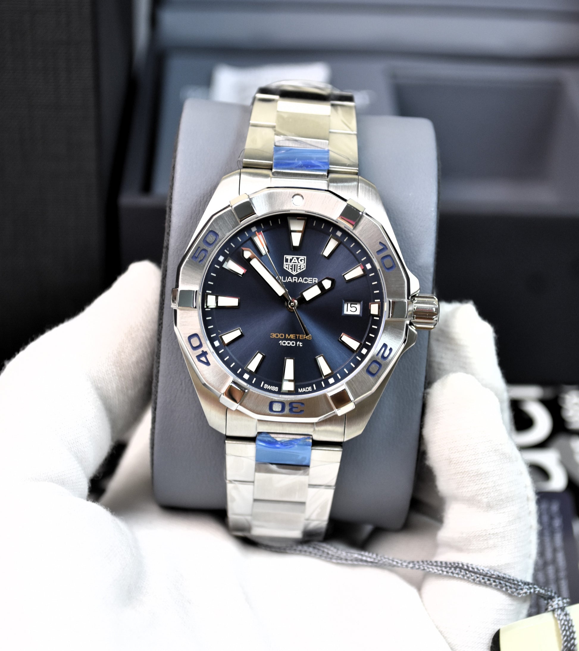 Tag Heuer Aquaracer Men’s Quartz Silver Stainless Steel Blue Dial 41mm Watch